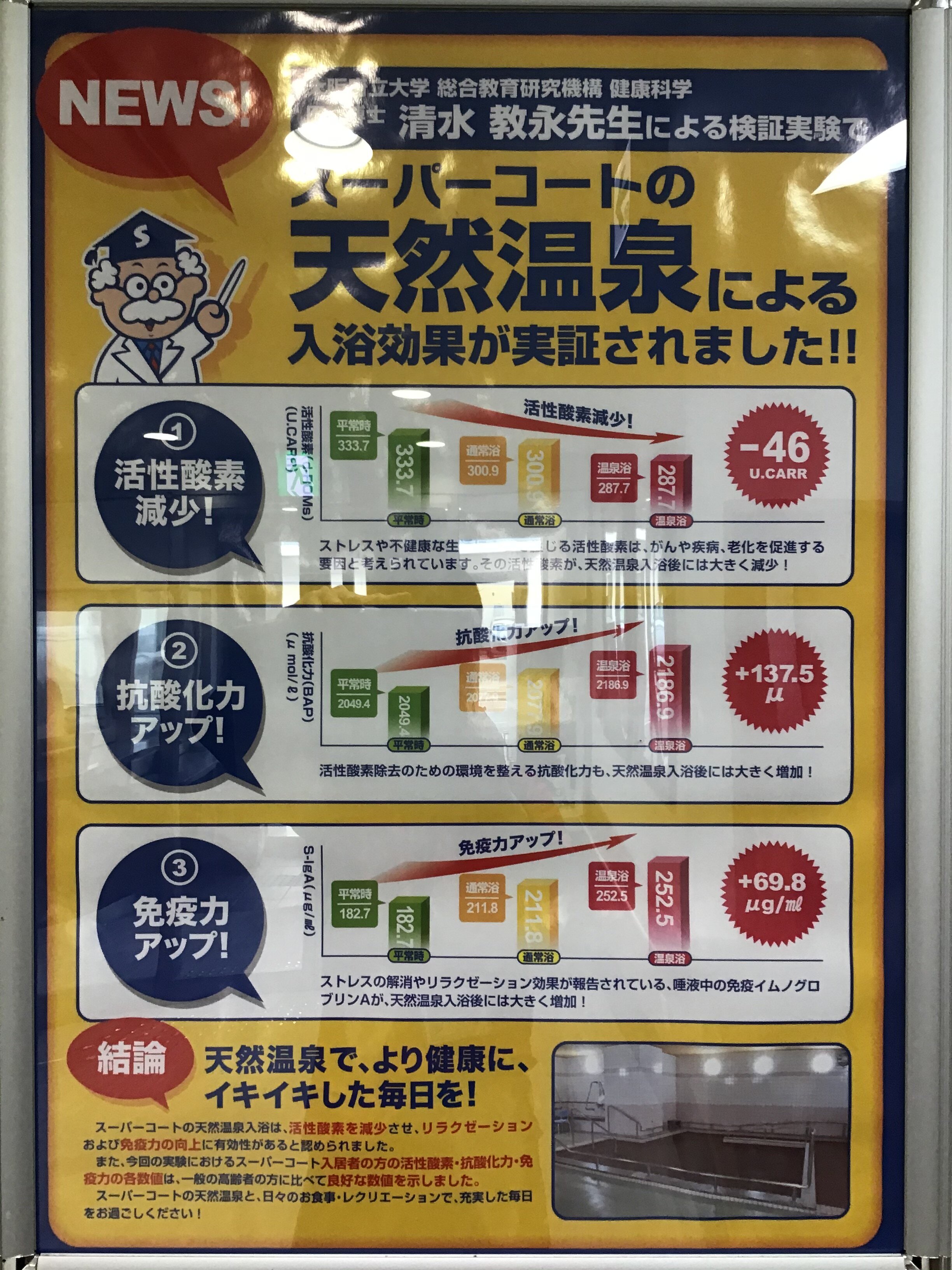 スーパーコートの天然温泉には3つの入浴効果があります。