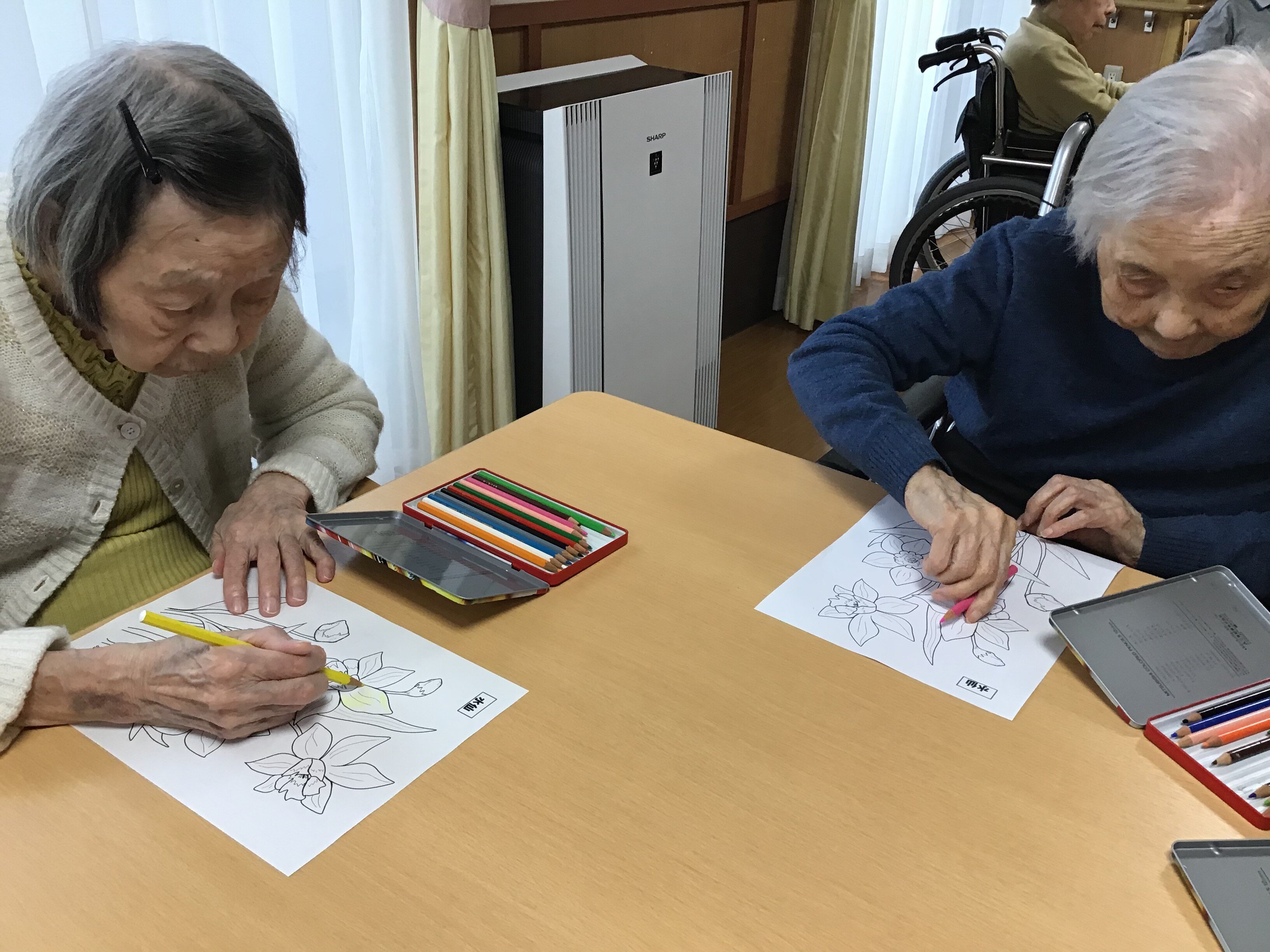 脳の活性化が期待でき、手指のリハビリにつながる効果があるだけではなく、リフレッシュ効果・ストレス解消に繋がります。これらの効果によって緊張がほぐれ自律神経も整いやすくなり、ストレスの緩和につながる大切なレクリェーションです☆