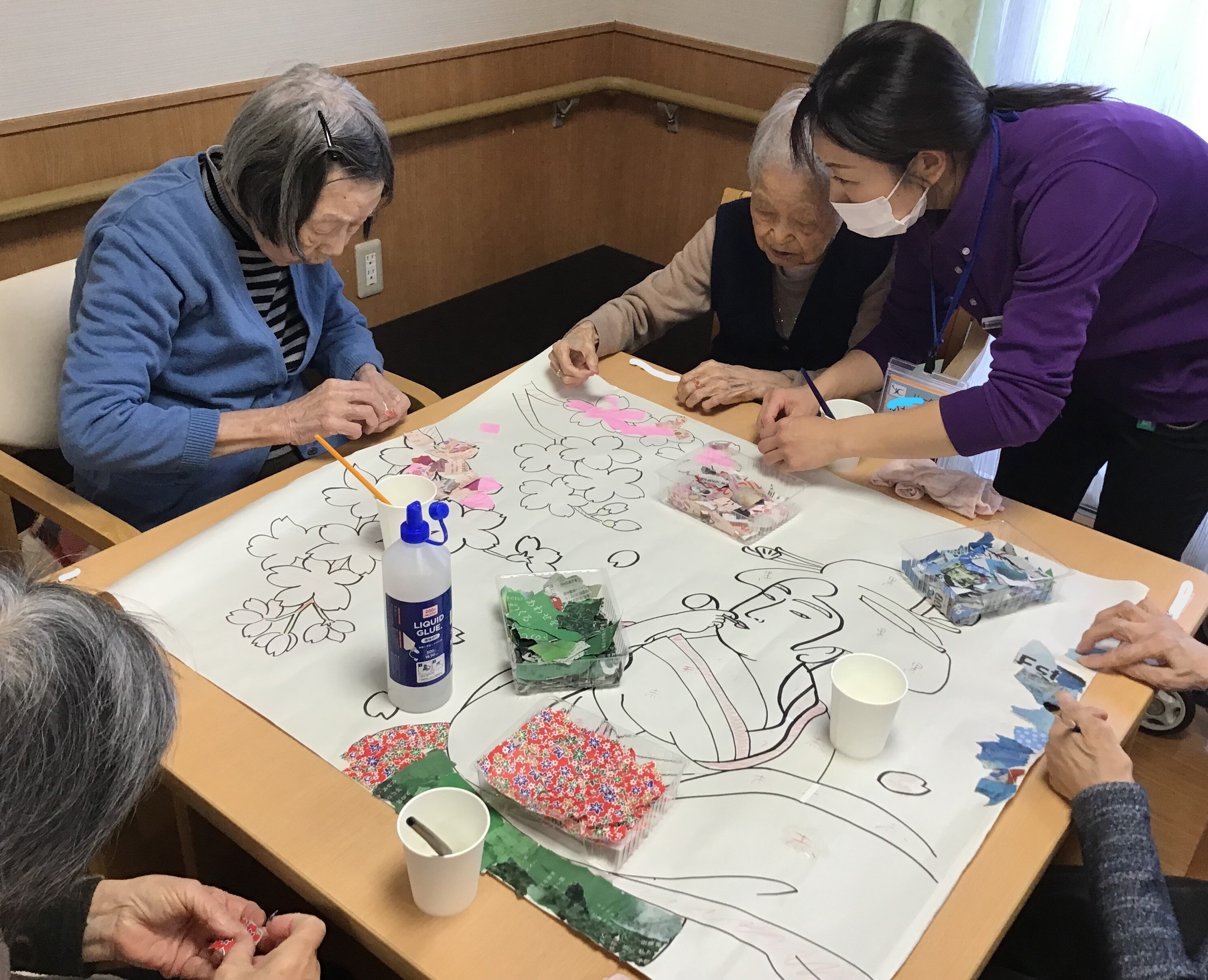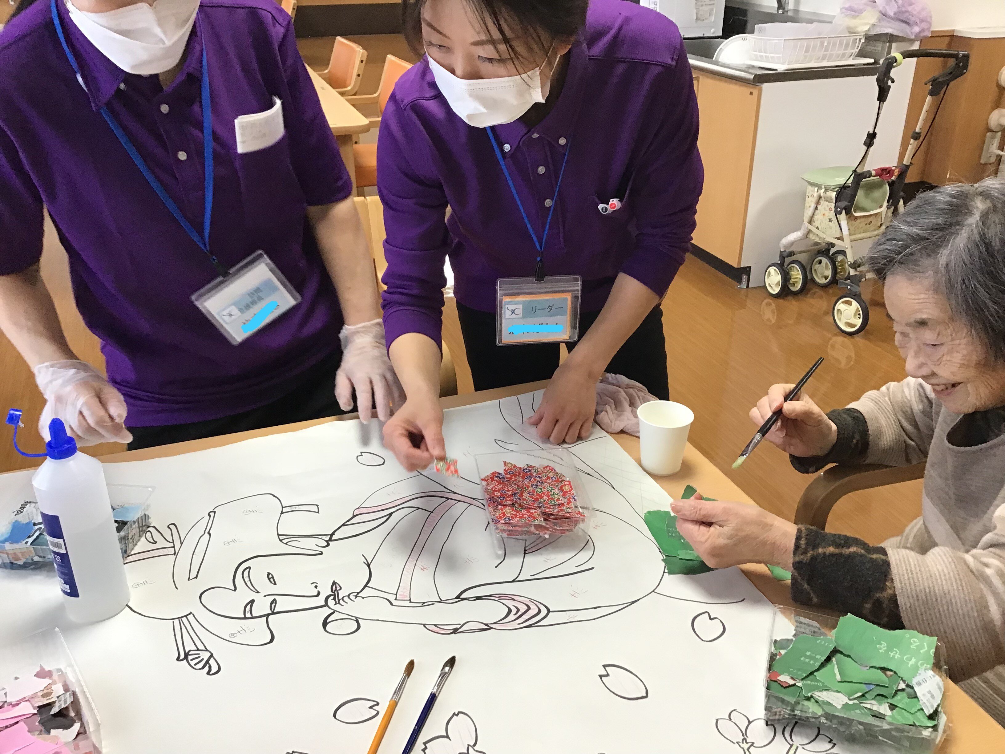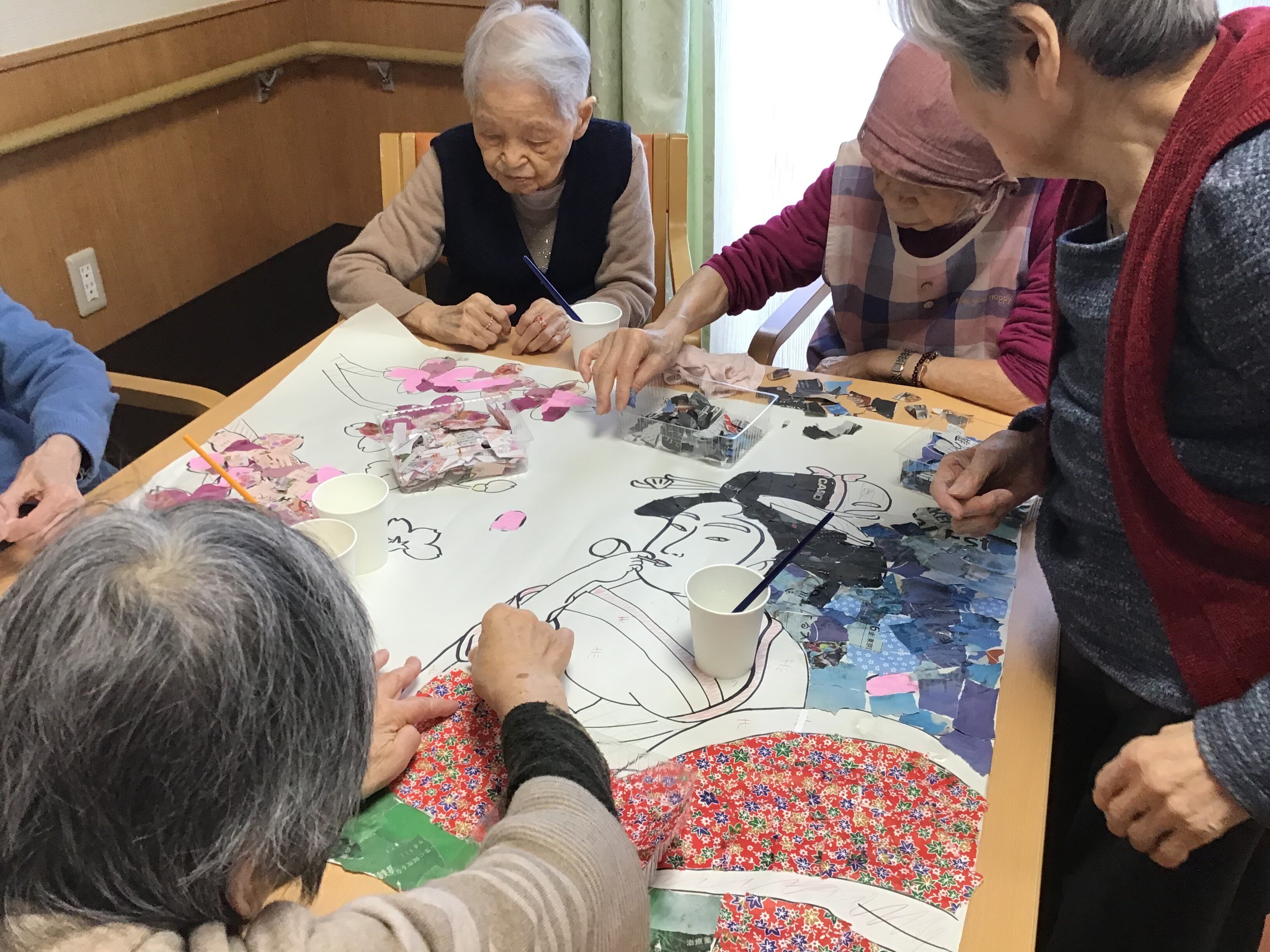 今回は2月27日貼り絵レクリエーション、その様子をお伝えいたします。
