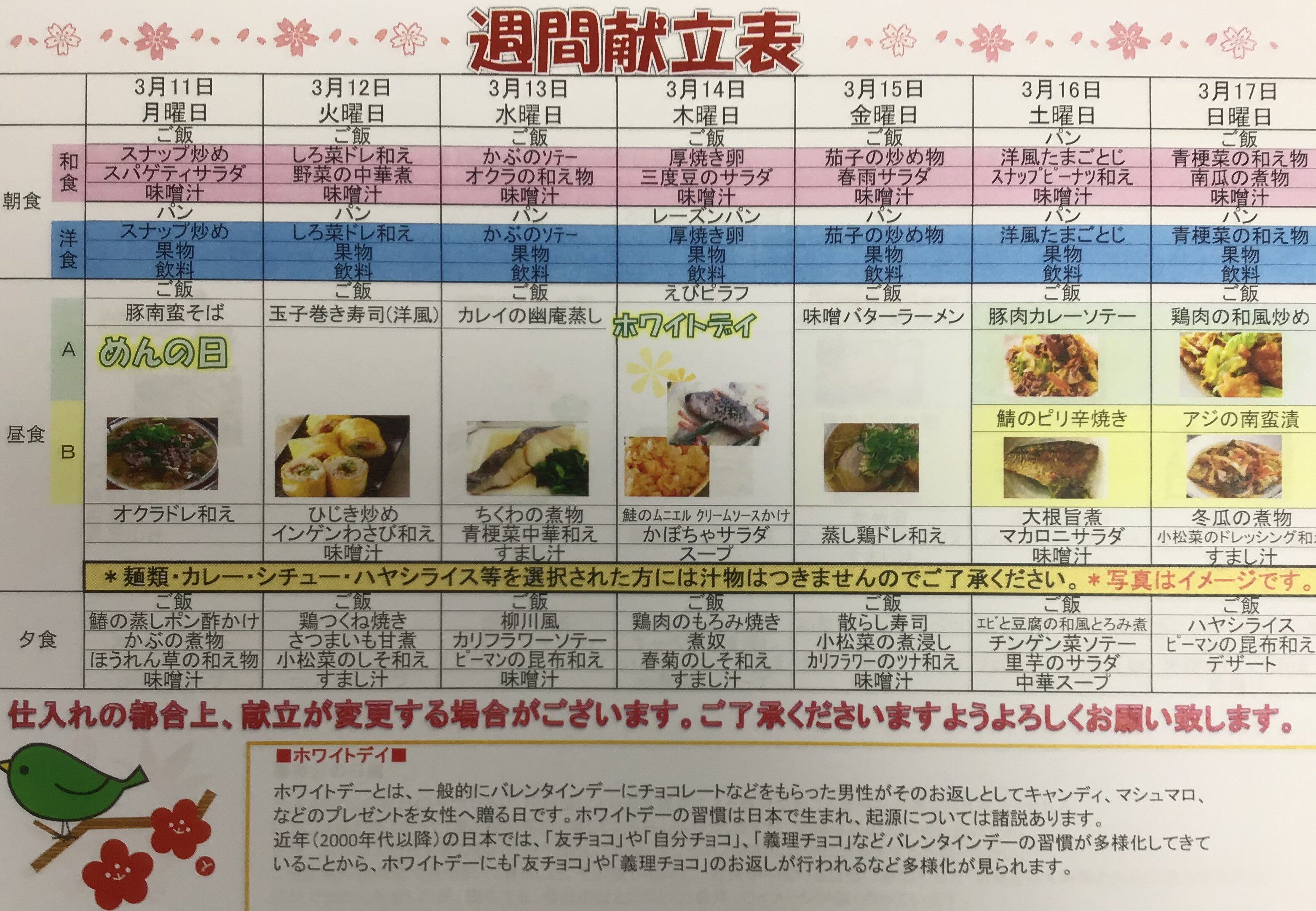 今回は3月11日から3月17日までのメニューを紹介させていただきます♪