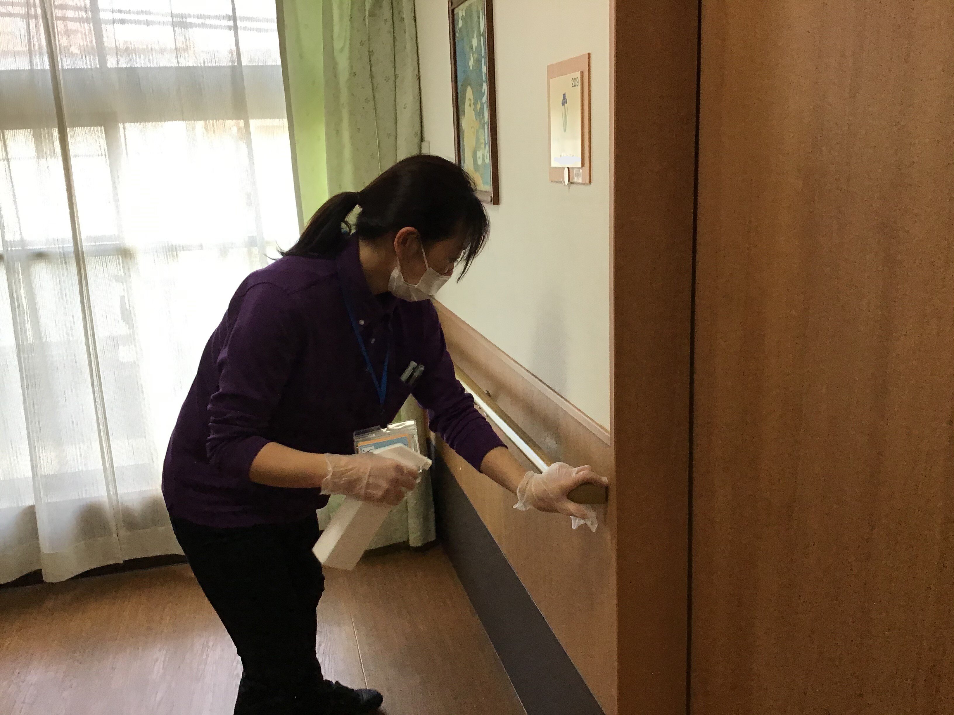 職員が消毒しているところをパシャリ!