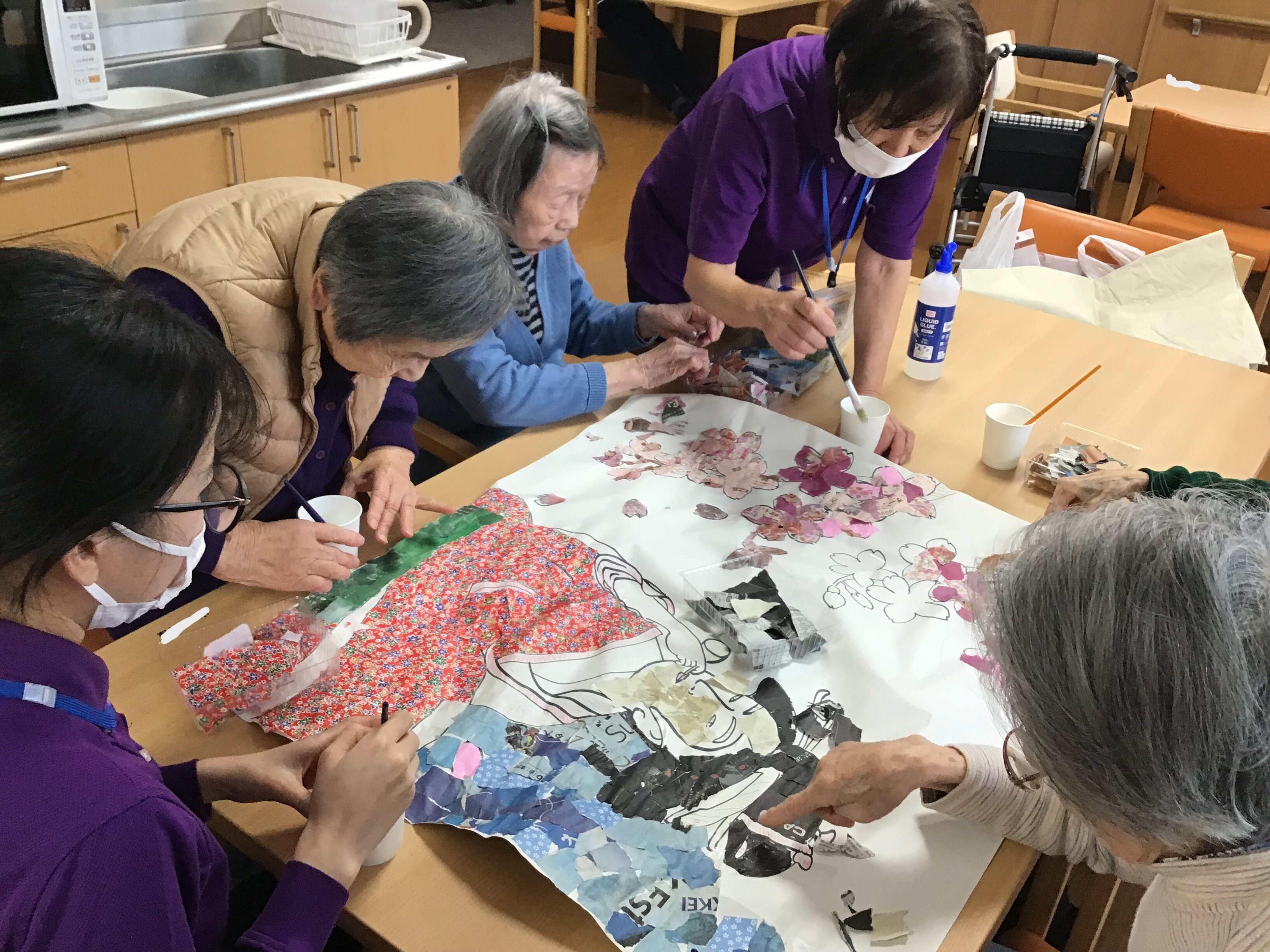 今回は3月12日貼り絵レクリエーション、その様子をお伝えいたします。