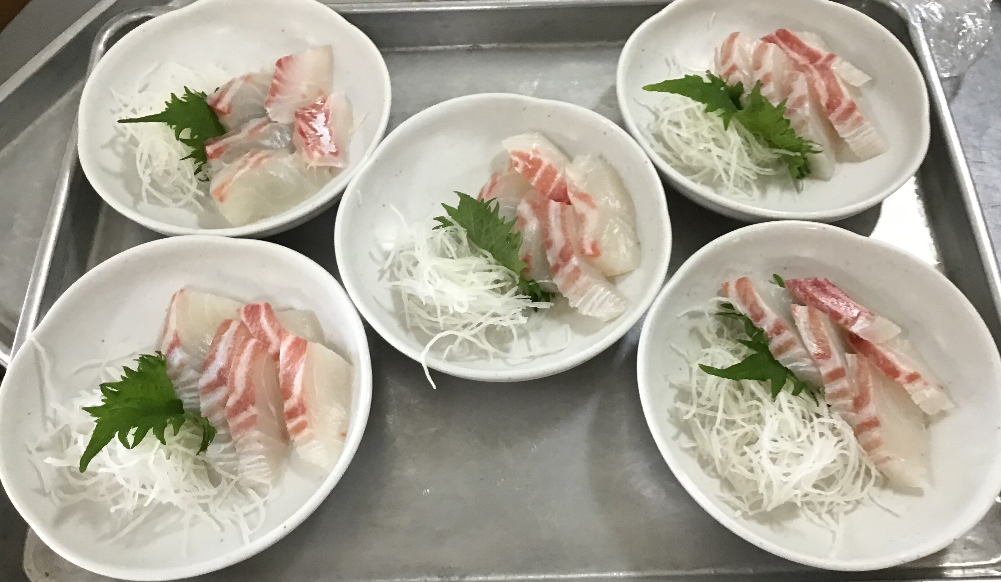 皆様、お刺身と鯛めしを見ると、自然と和みます。