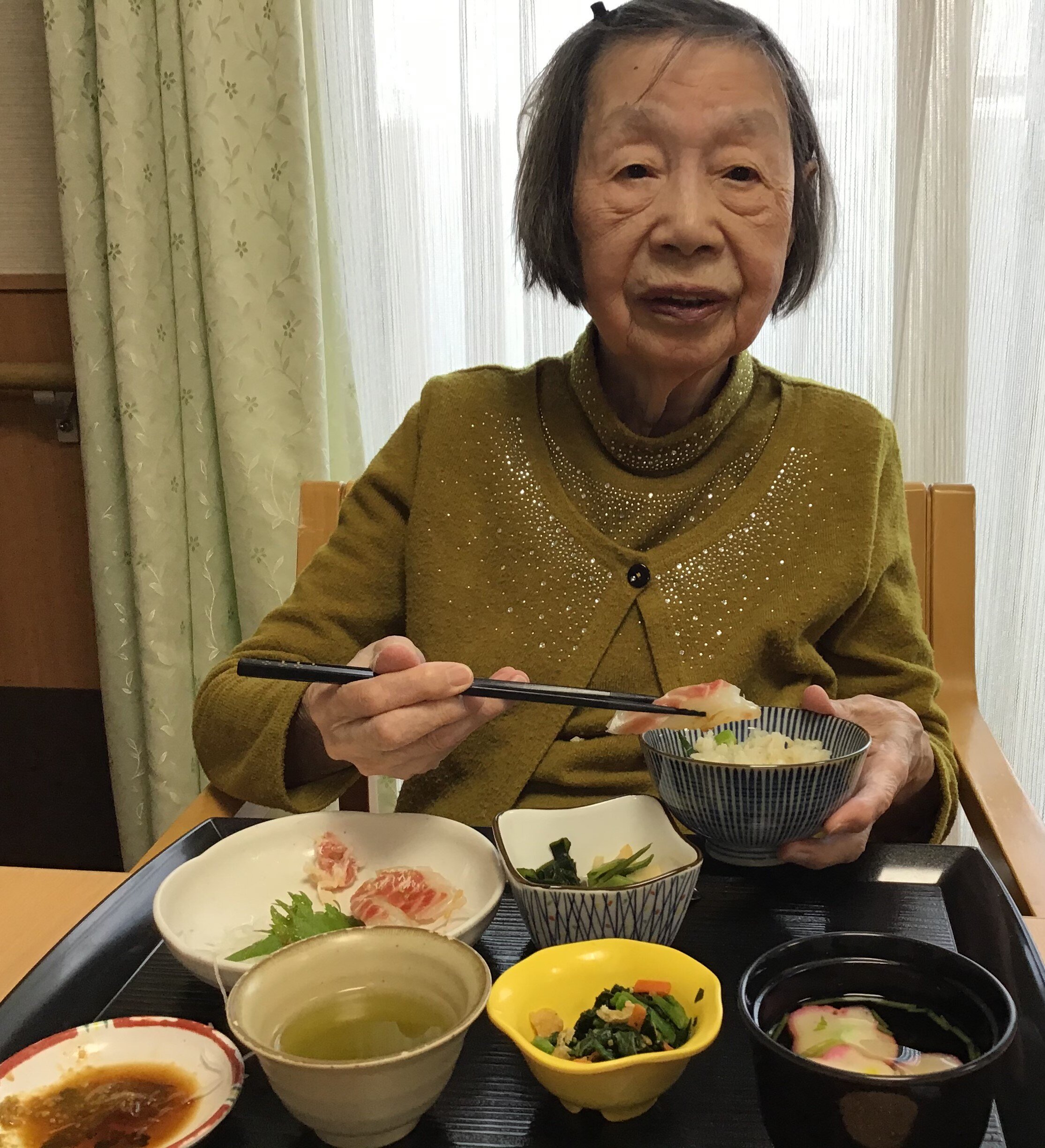 「鯛のお造りが食べられて嬉しいわ。」
