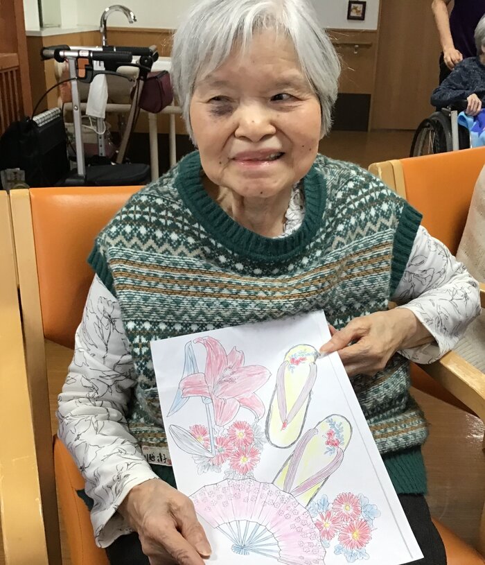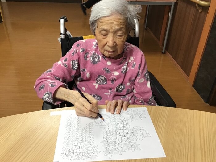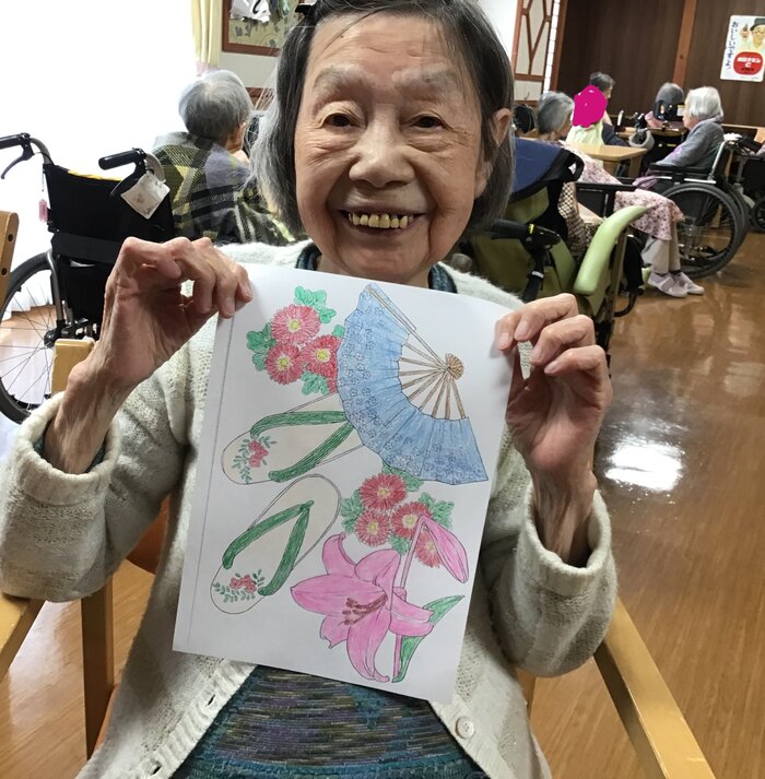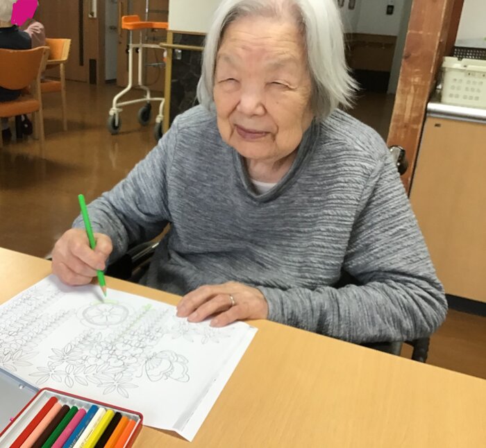 脳科学に基づいたぬり絵を使用しレク開始(^o^)/