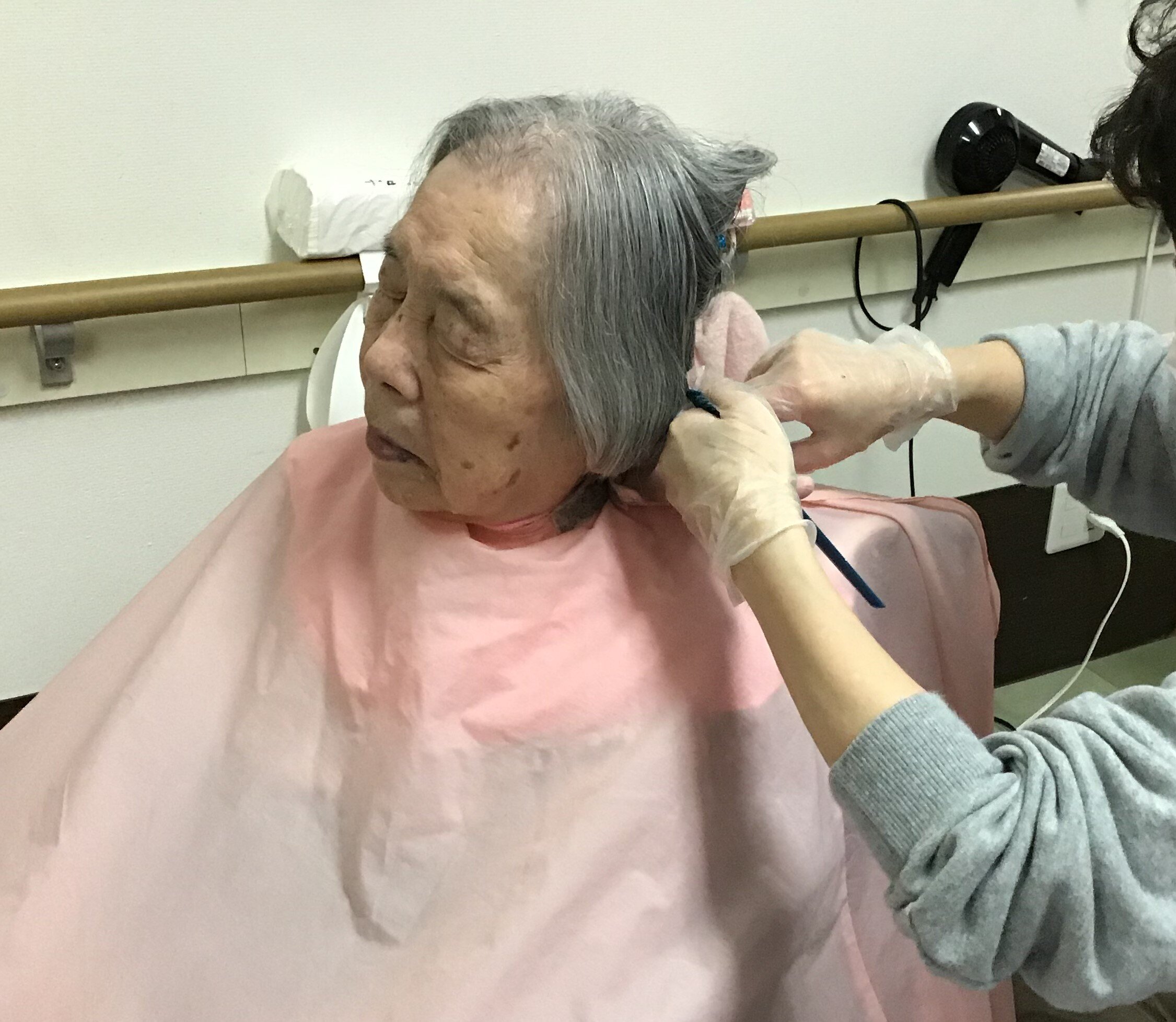 ご入居者の中には、外に出かけて散髪するといった事が難しい方もいらっしゃいます。