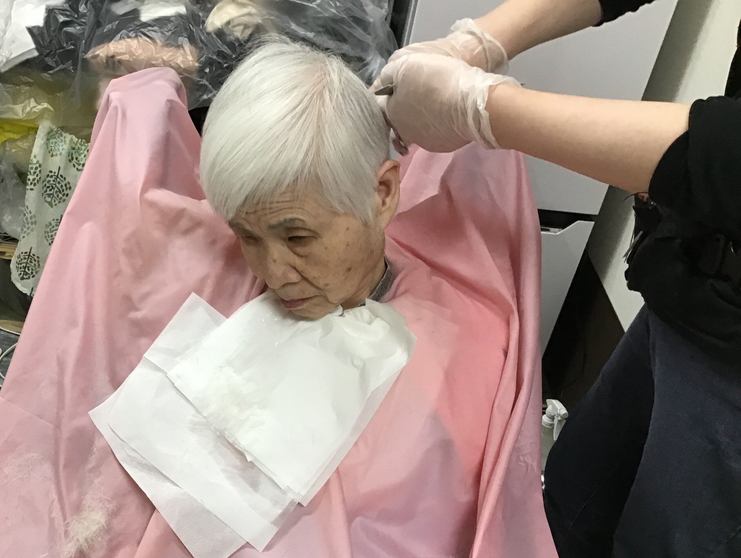 3人の訪問美容師さんが訪れ、手際よく散髪をされていました。