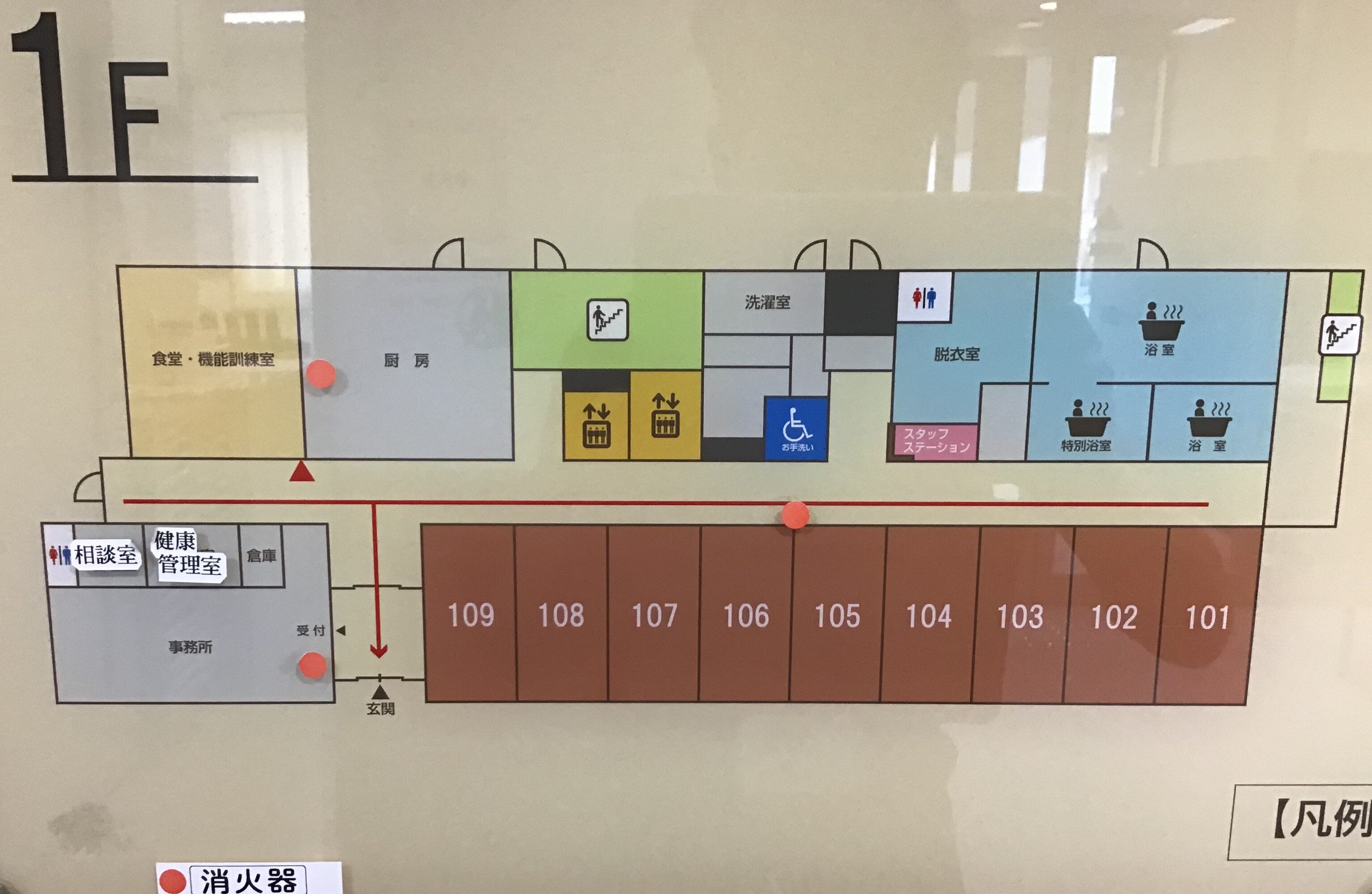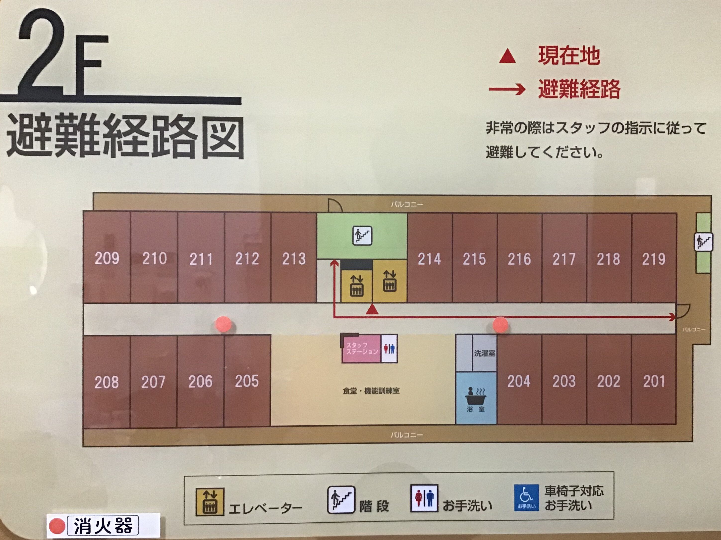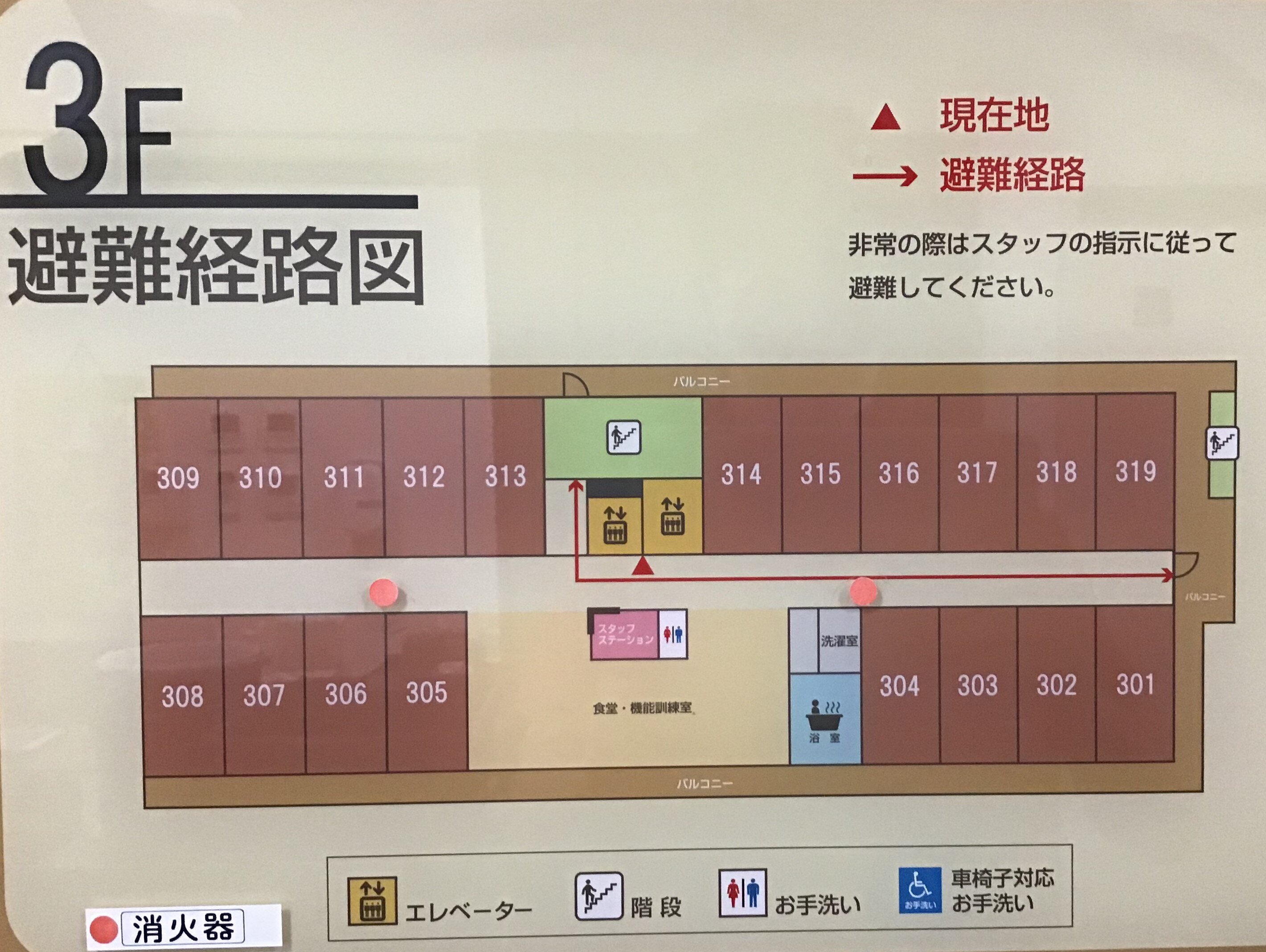 今回はホテルや有料老人ホームには必ずある緊急の際の避難経路図