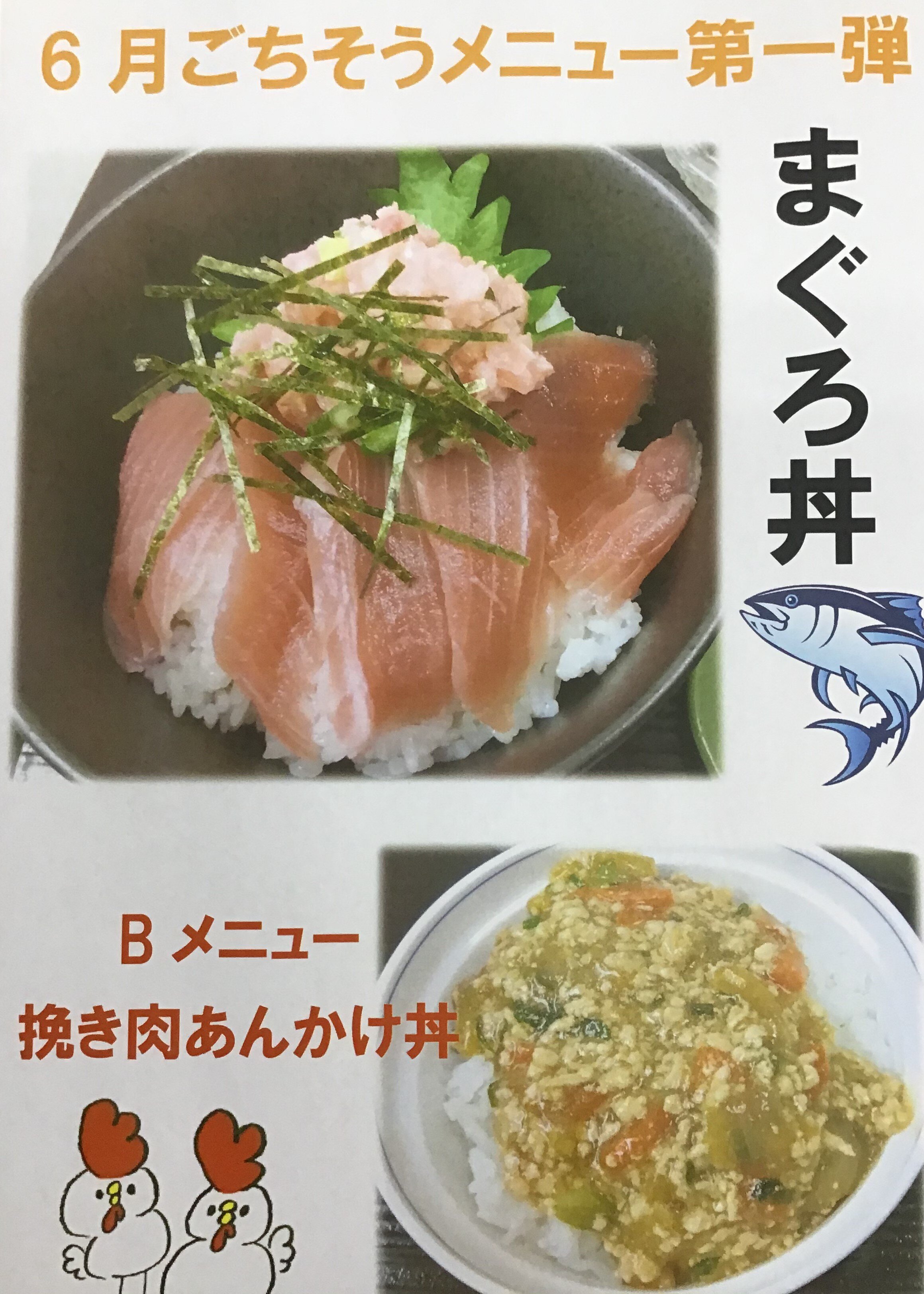 ・マグロ丼(500円UPメニュー)orひき肉あんかけ丼