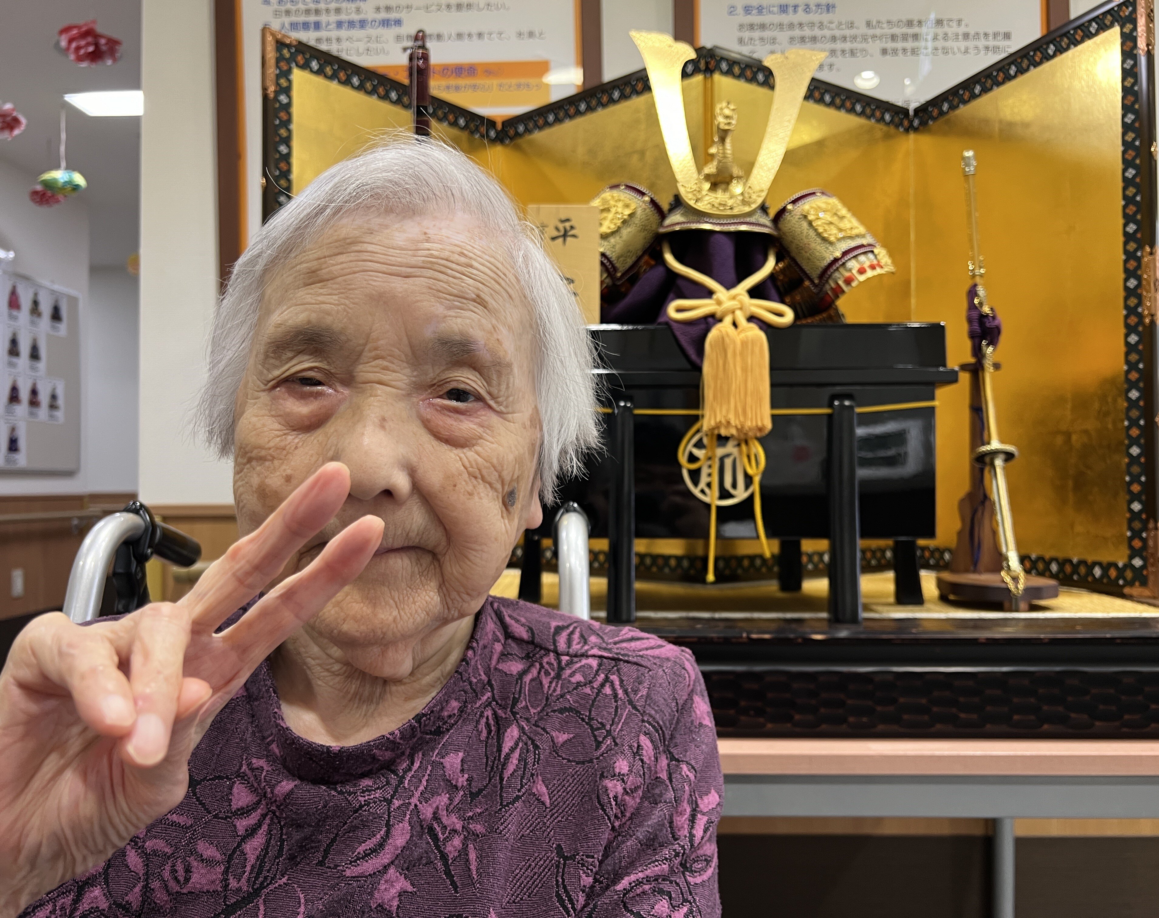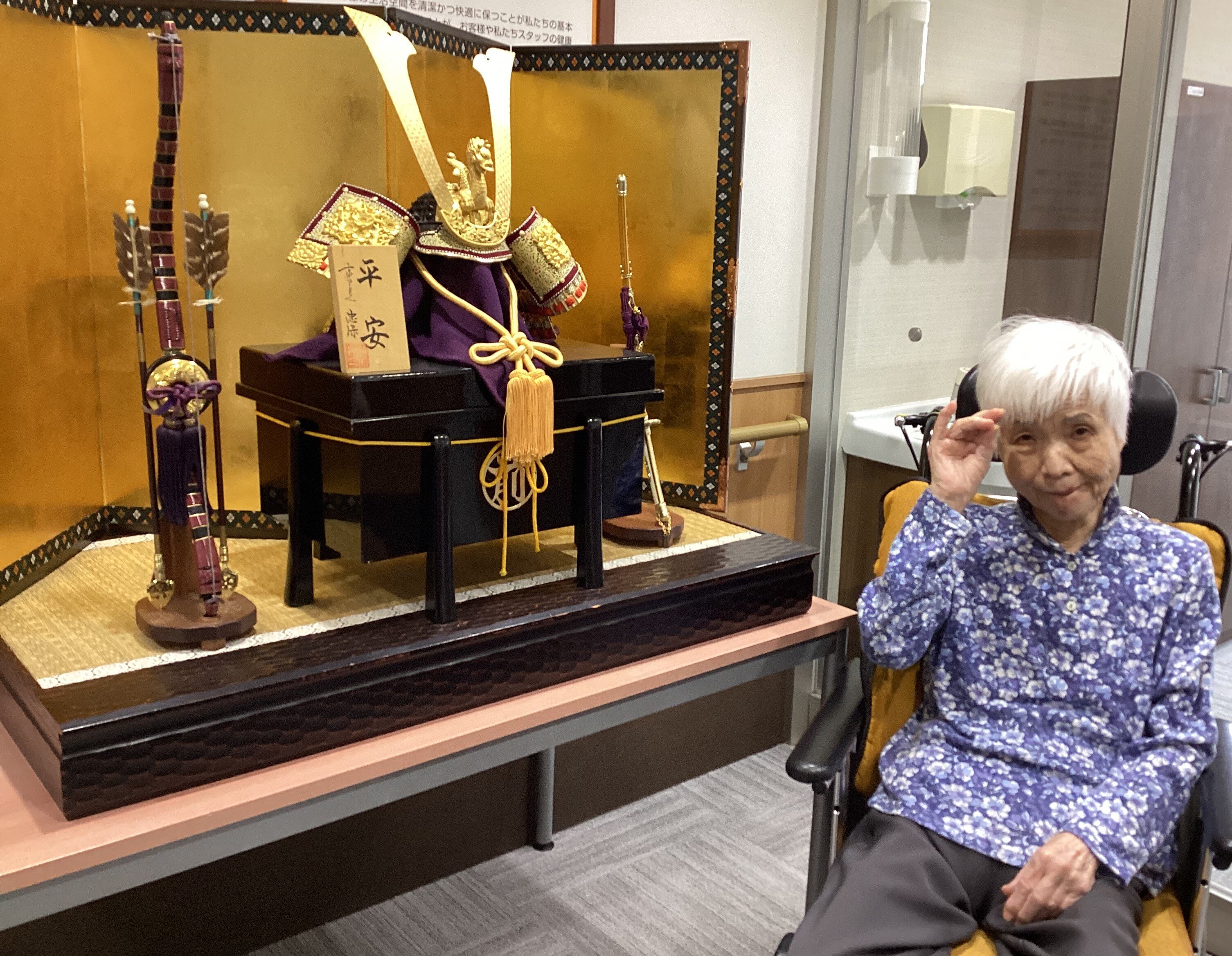 1階の兜を見に来てくださったご入居者の紹介です(^^♪