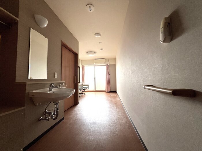 エアコン、カーテン、照明器具、ナースコールにつきましては居室に備え付けております。