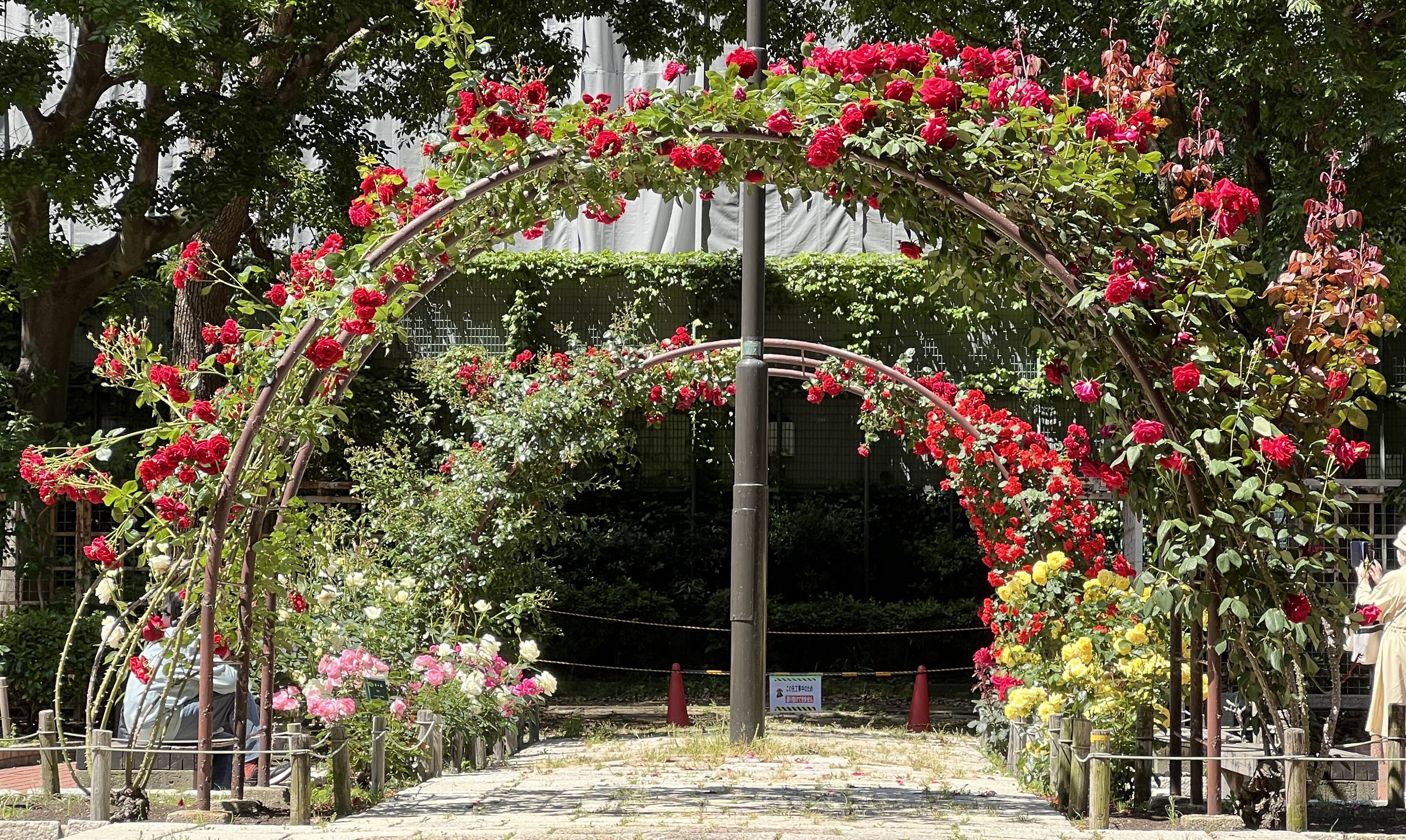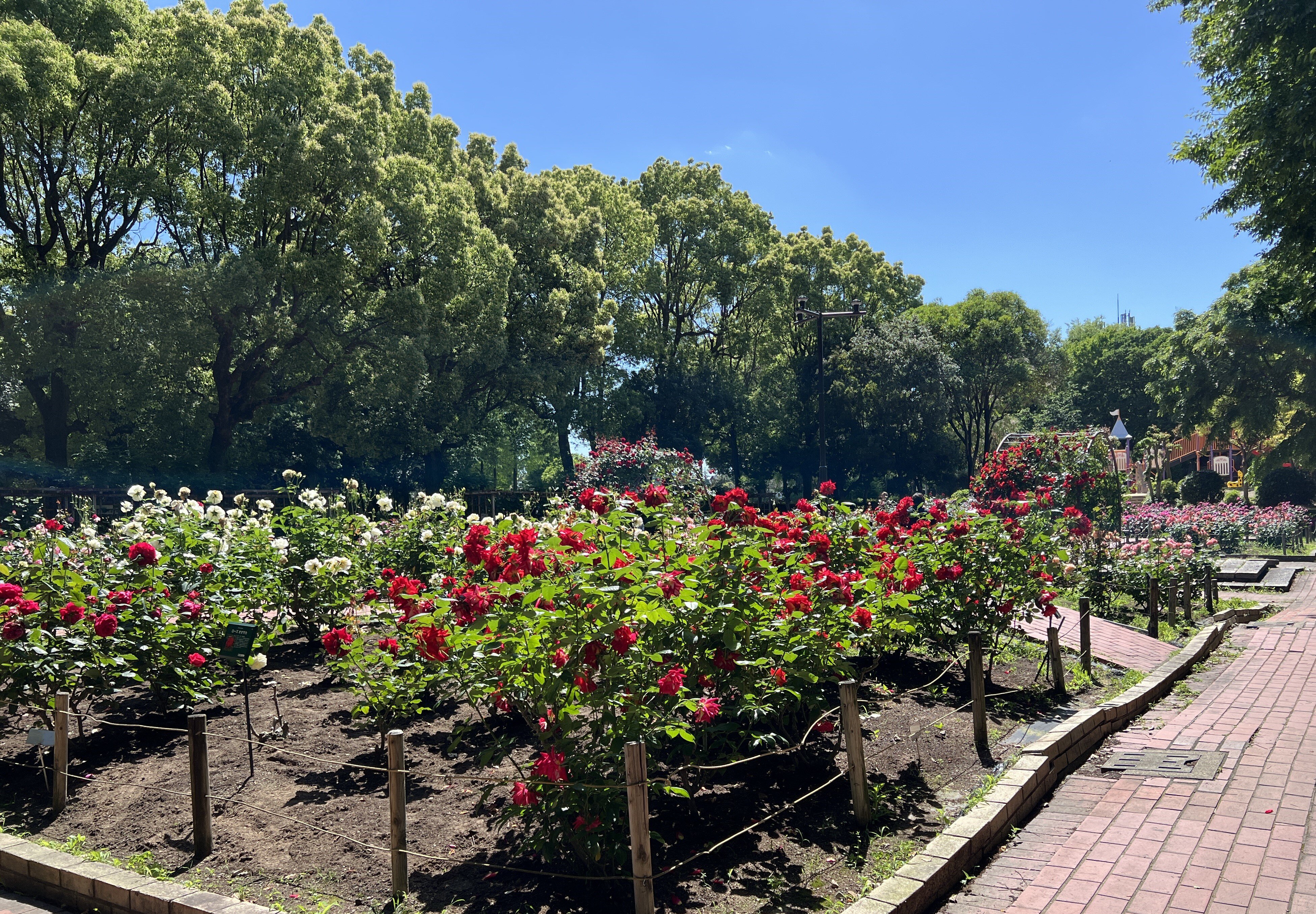 ご入居者と散歩した際の大井戸公園のバラの様子です。