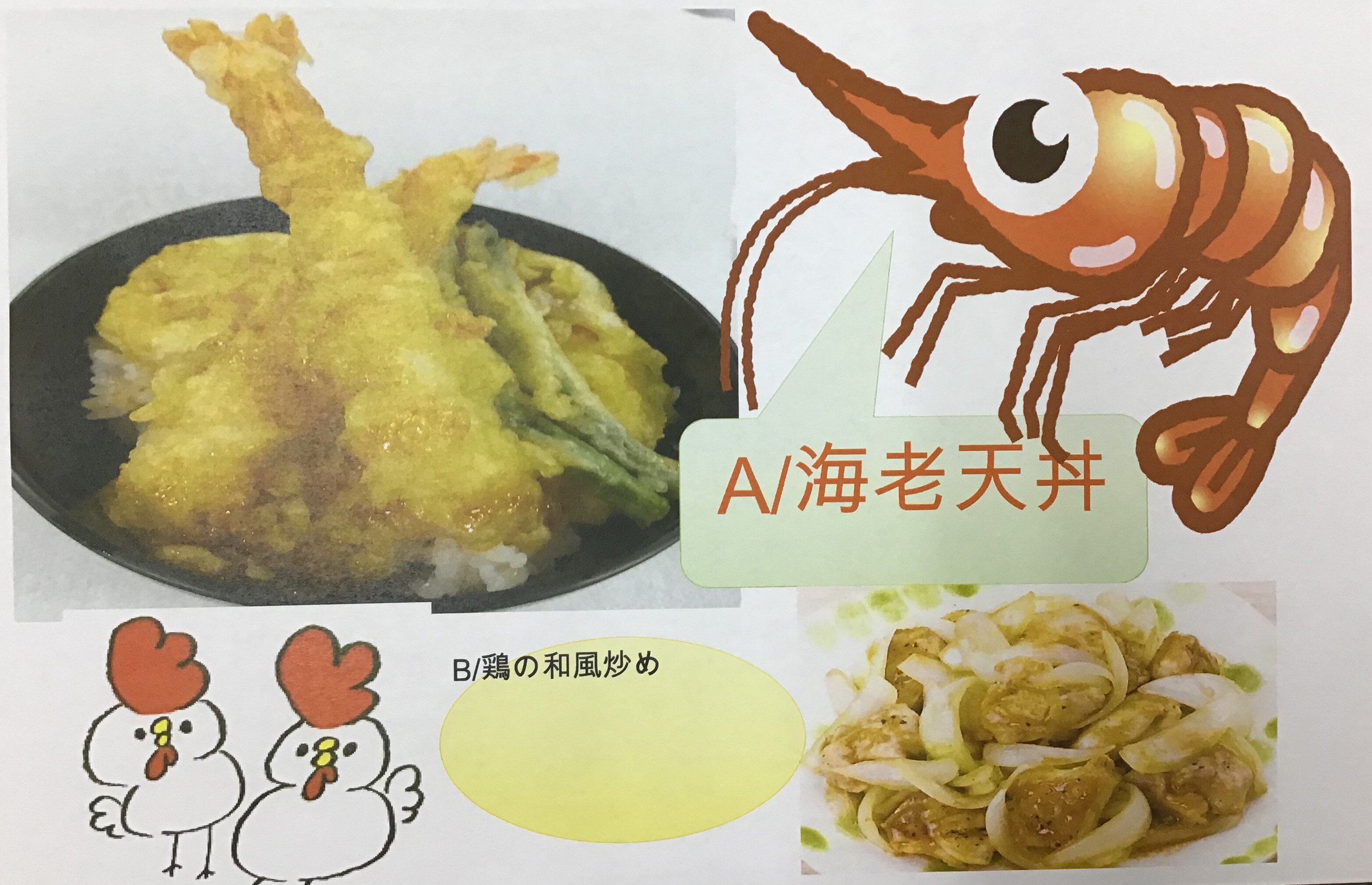 ・海老天丼/デザート(500円UPメニュー)or鶏の和風炒め/ひじき煮