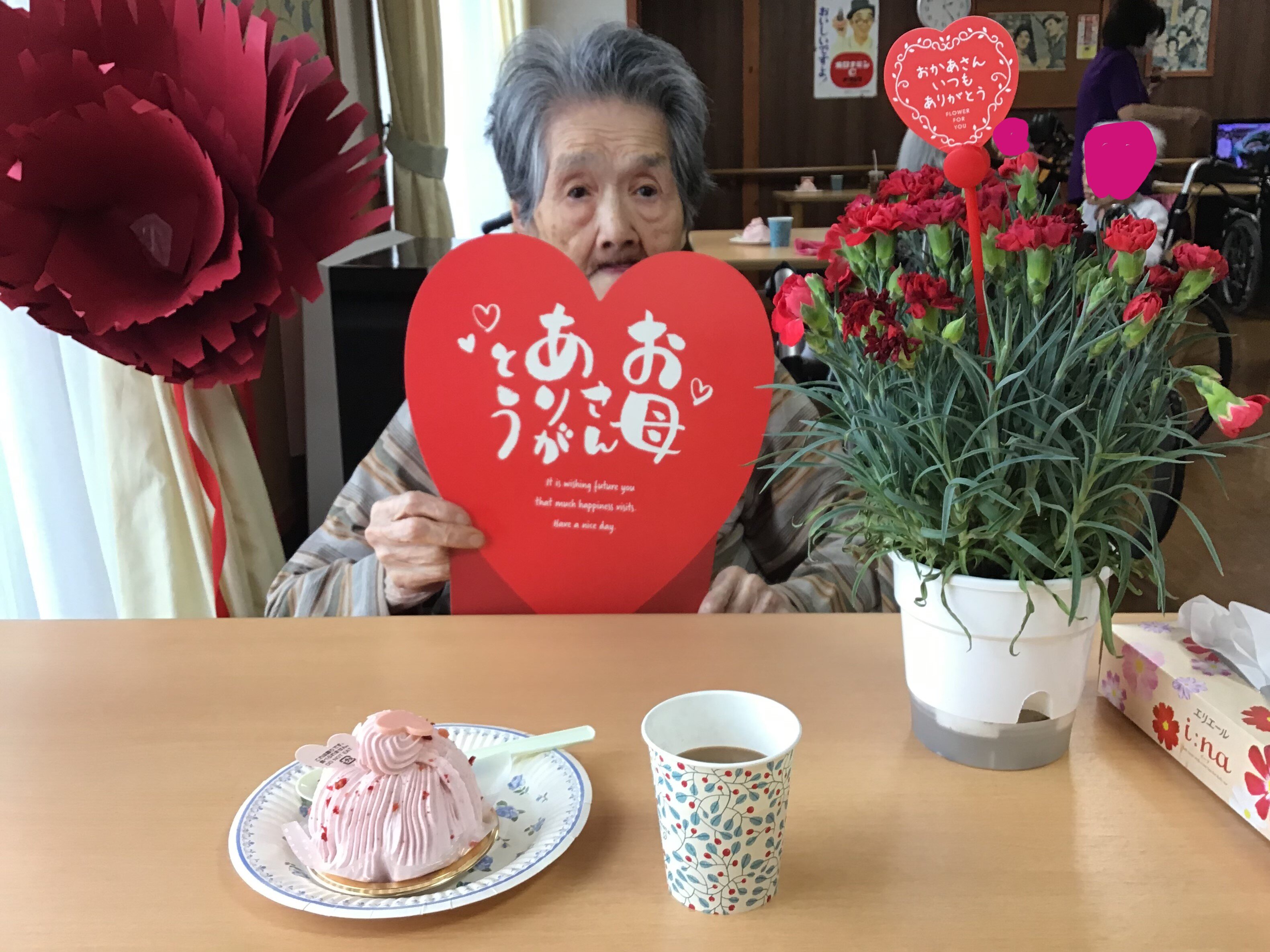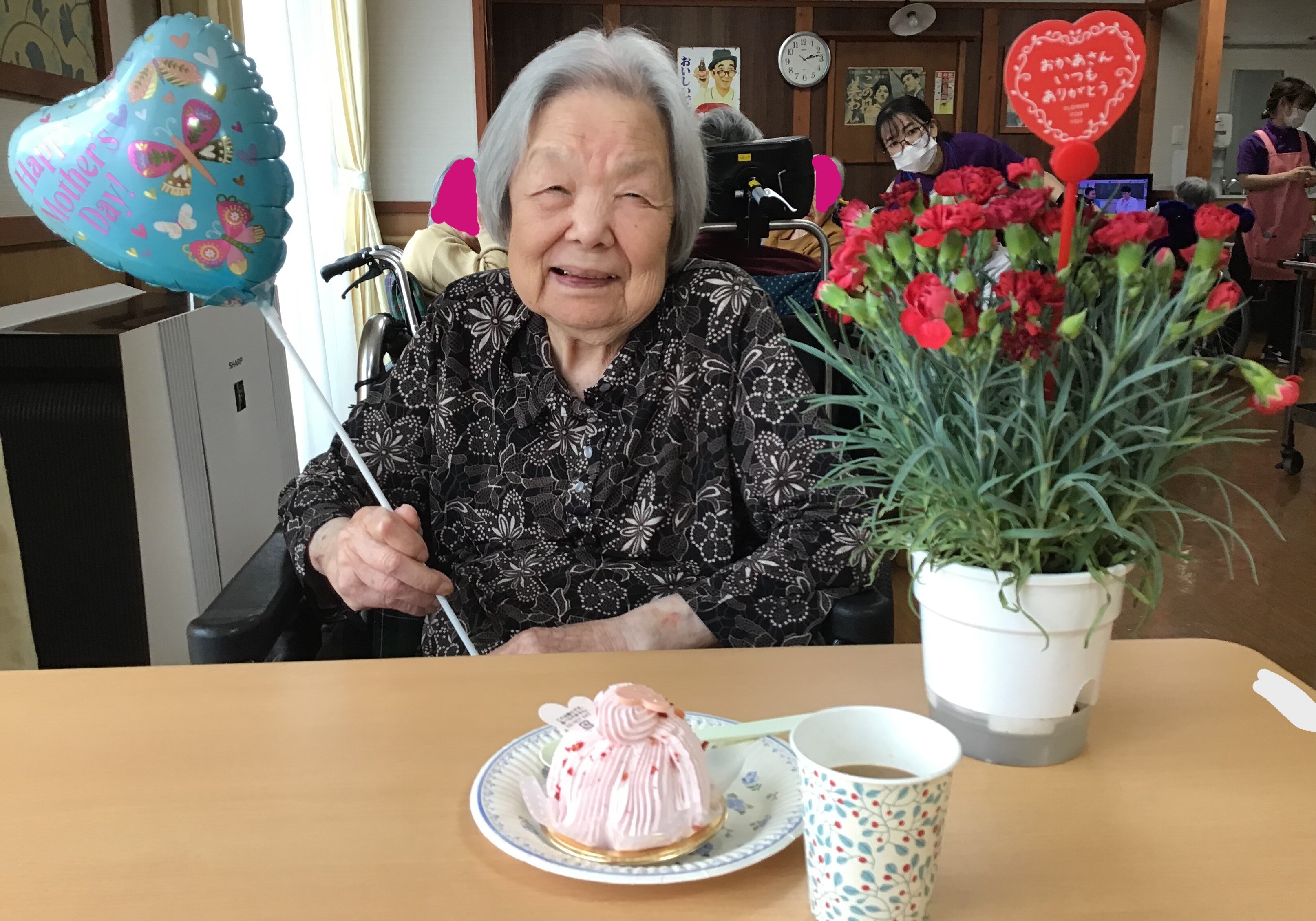 おしゃれな職員が、風船等の母の日グッズを準備してくださりました。