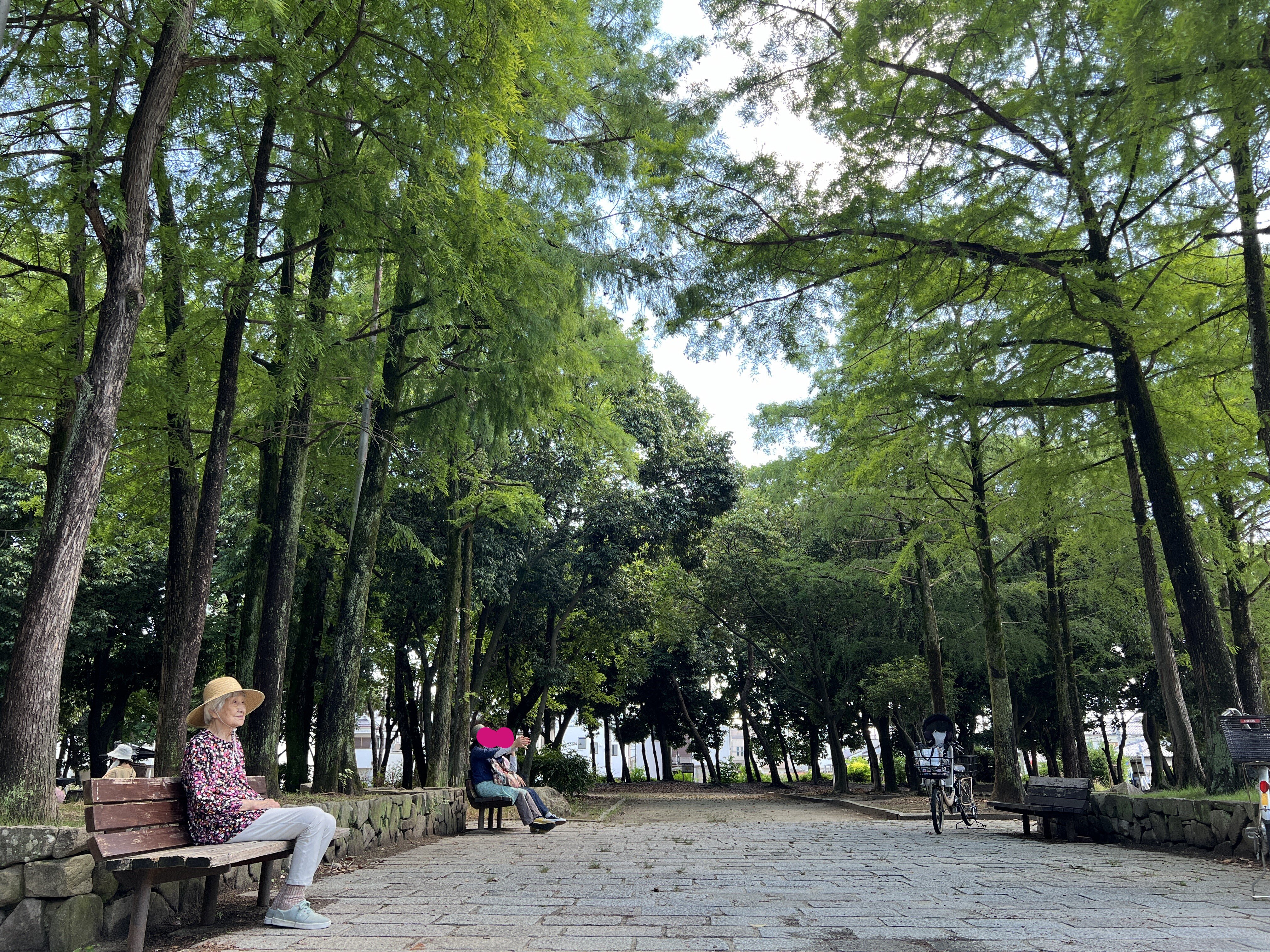 大井戸公園の緑に囲まれた木陰のベンチで休憩したりして