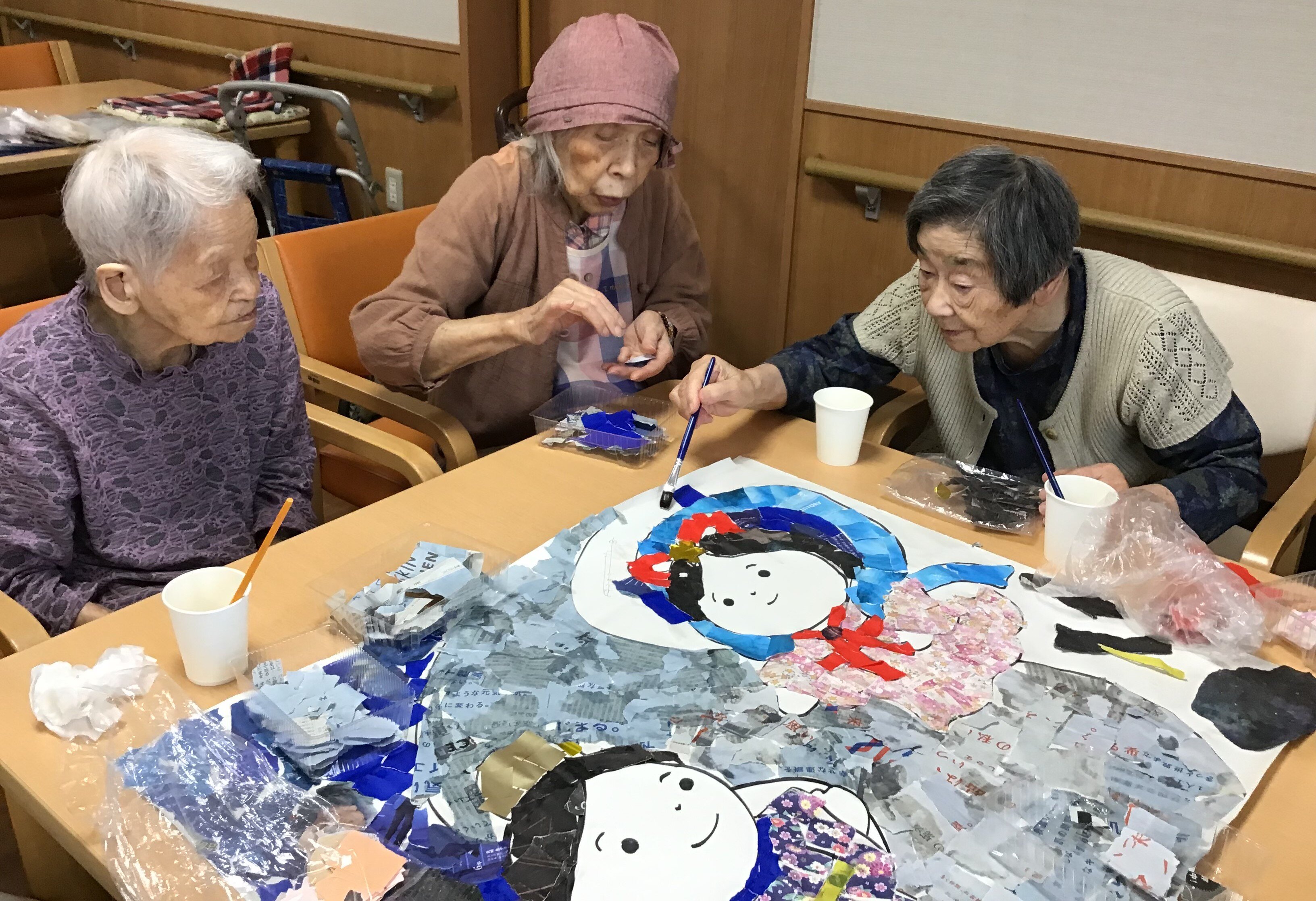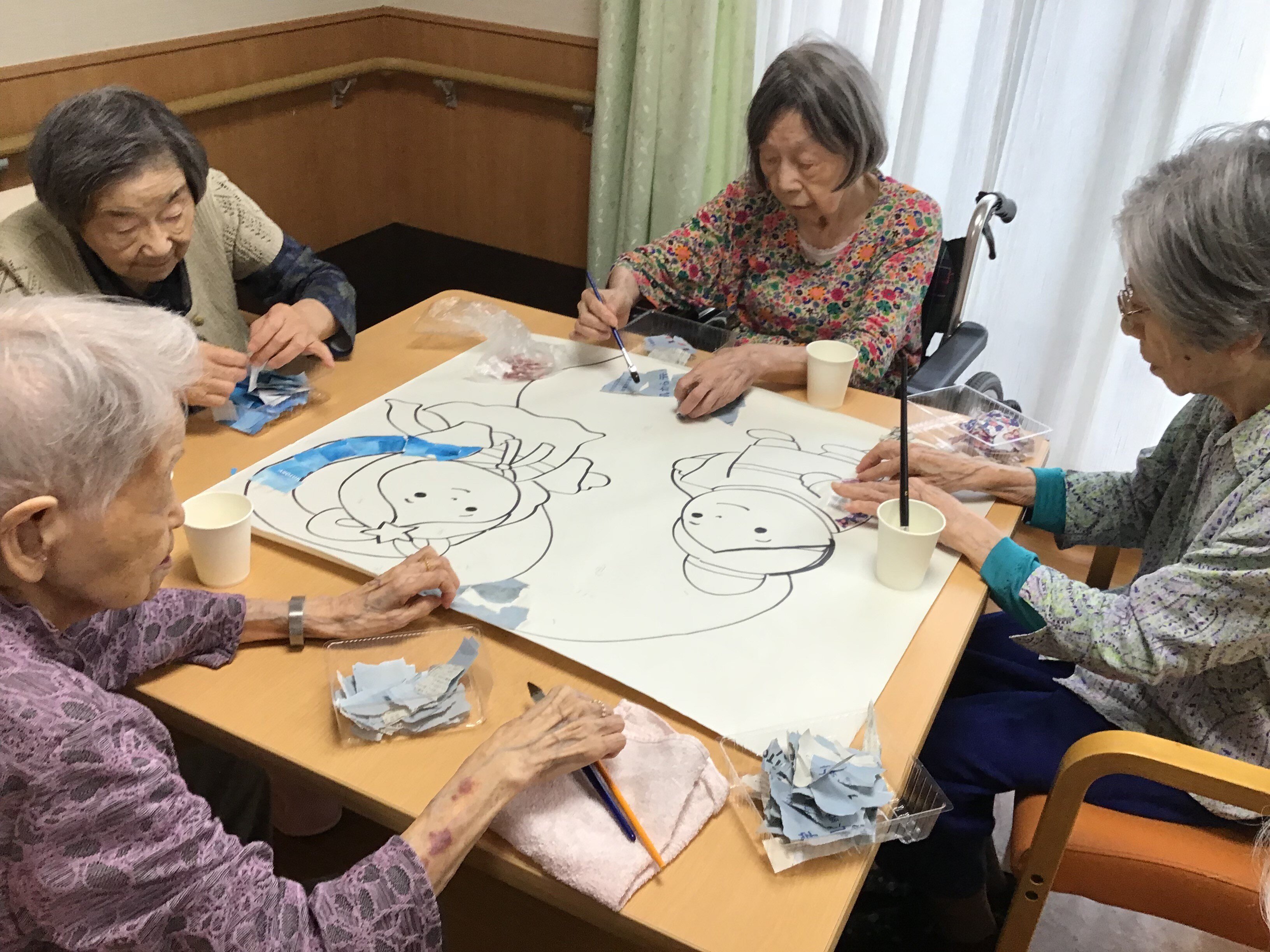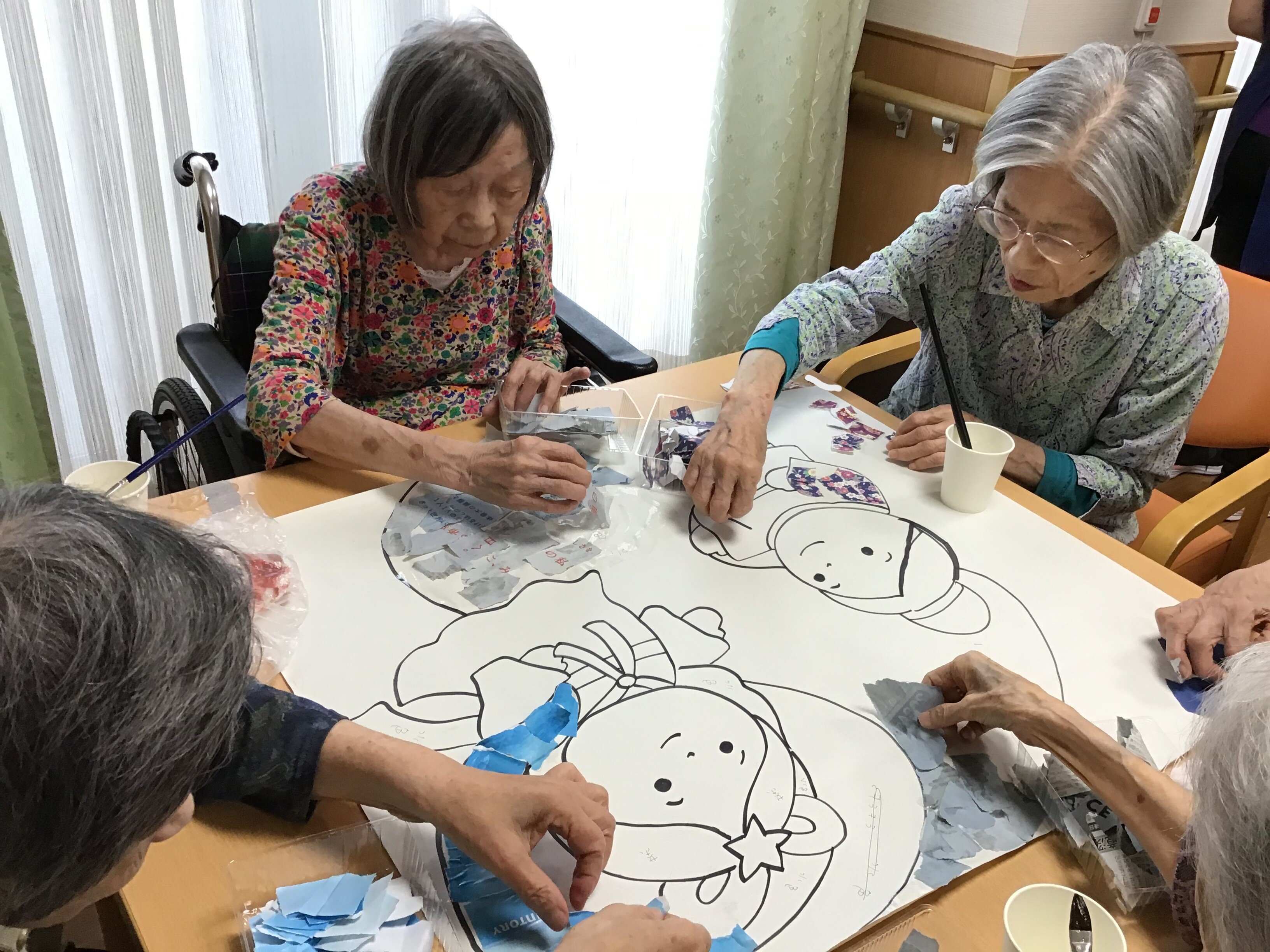 貼り絵は、ご入居者の自由な発想力と手先の器用さの維持・向上