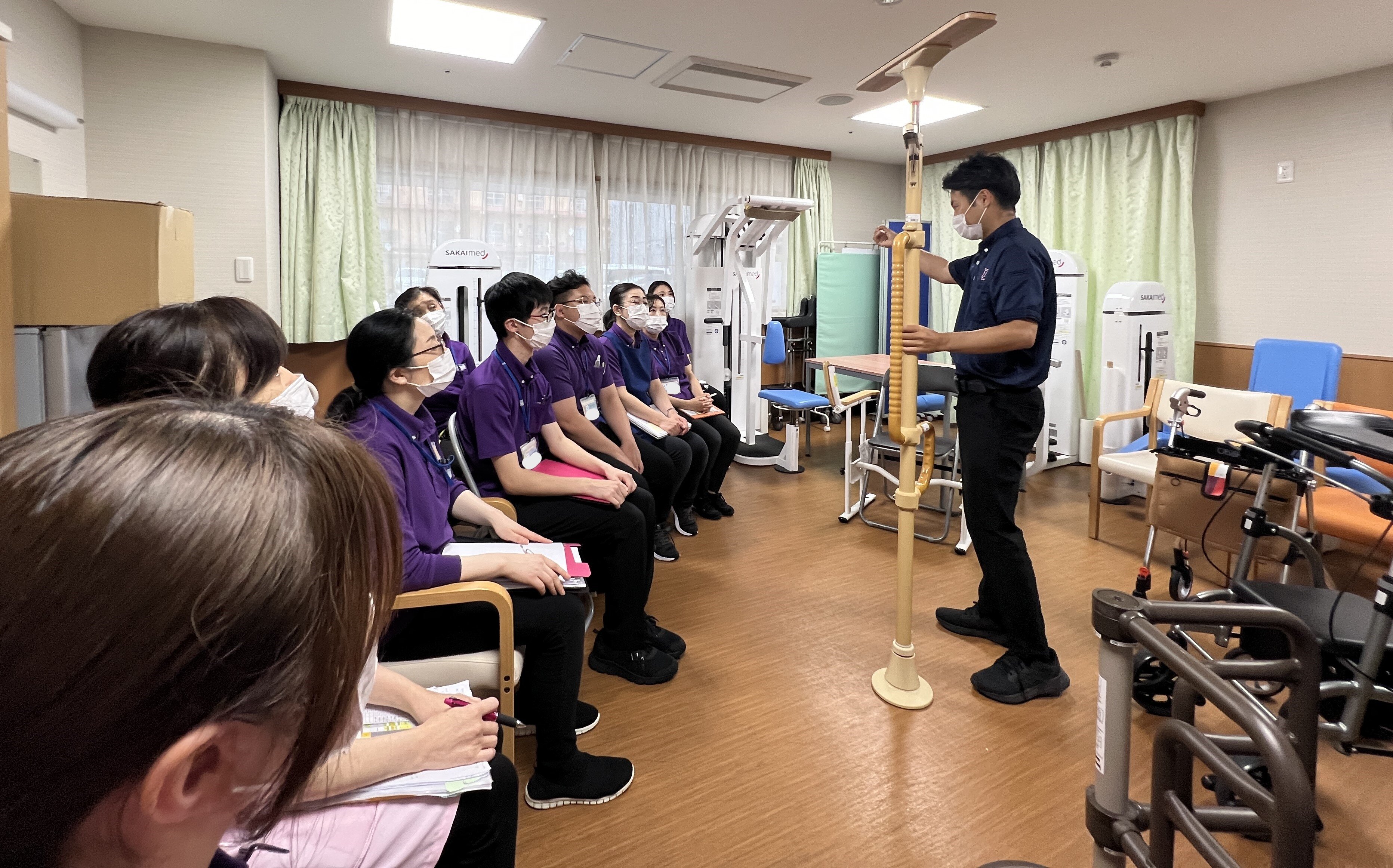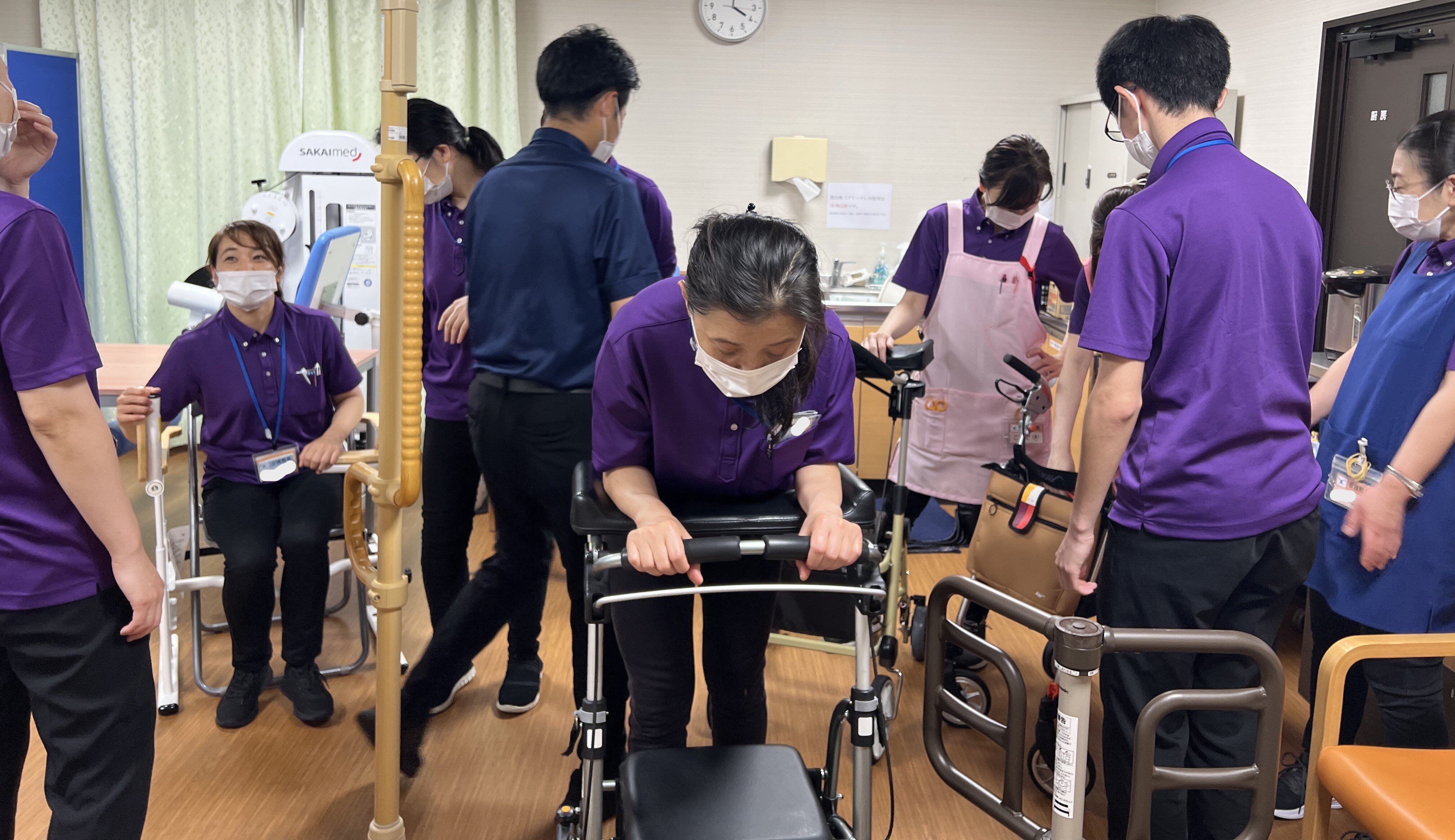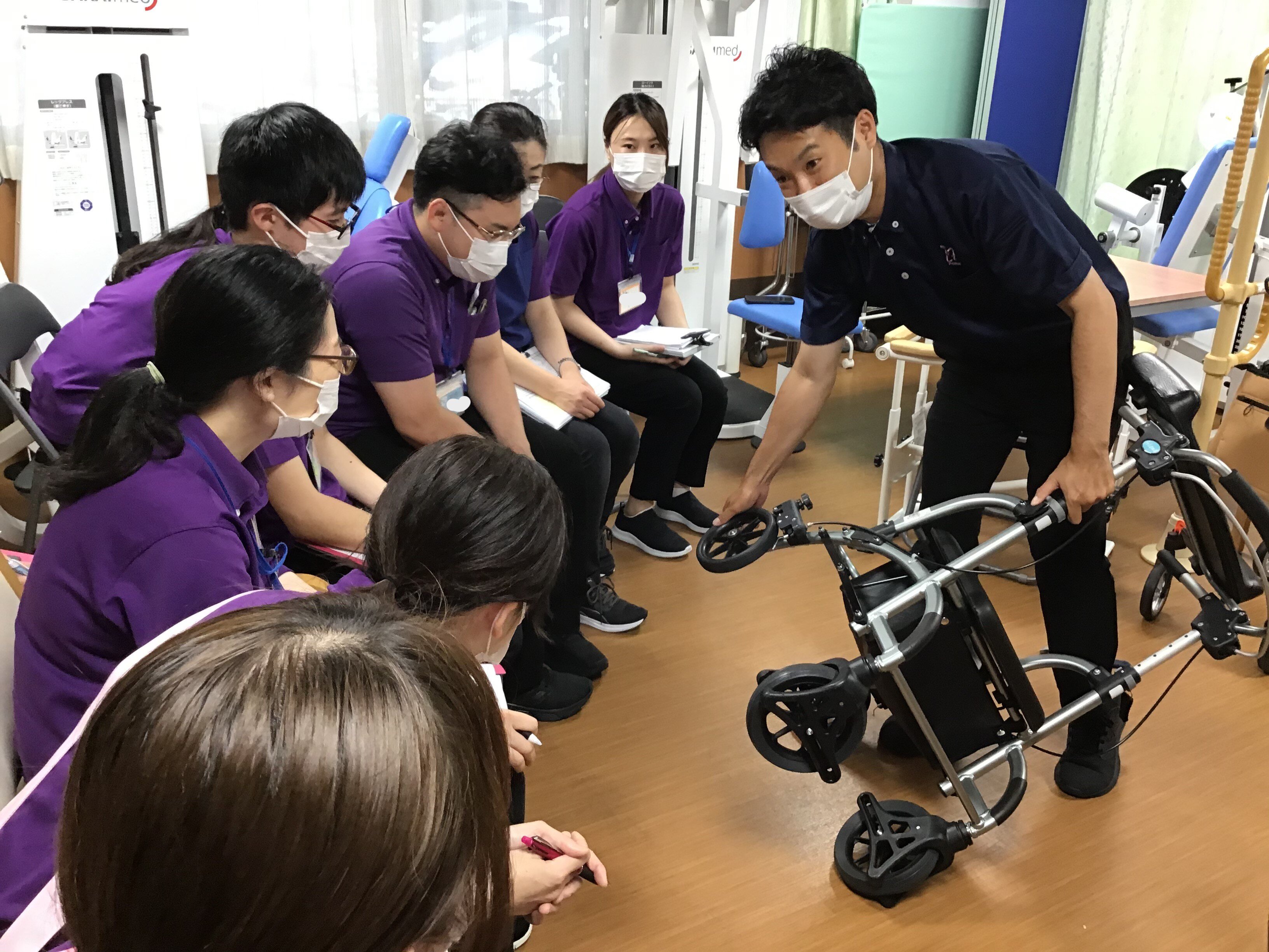 その後、ご入居者の歩行状態によってどの種類の歩行器が適切なのかを教えていただきました。