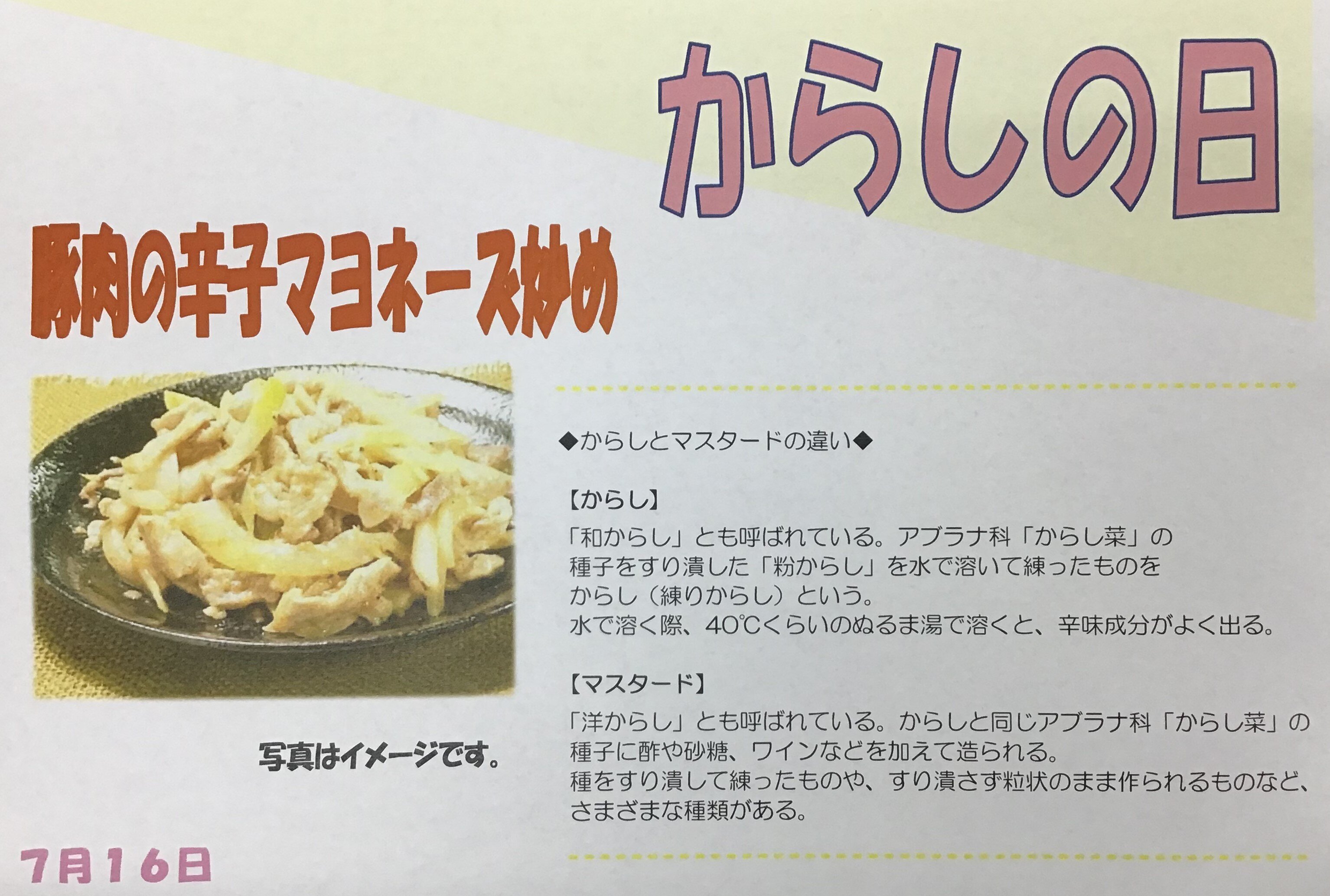 ・16日 昼 豚肉の辛しマヨネーズ炒め