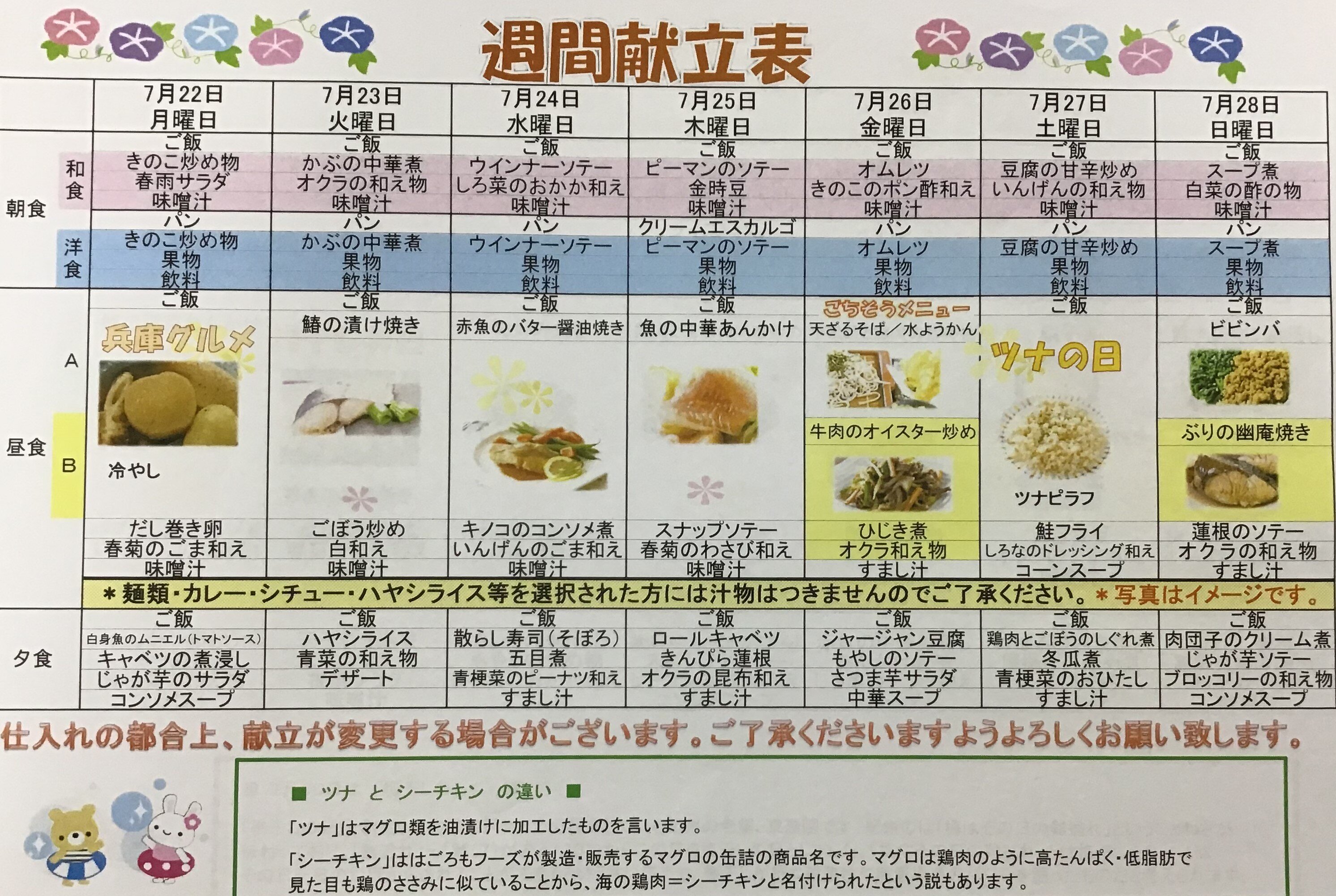 「7月22日から28日までのメニュー表の紹介」です。