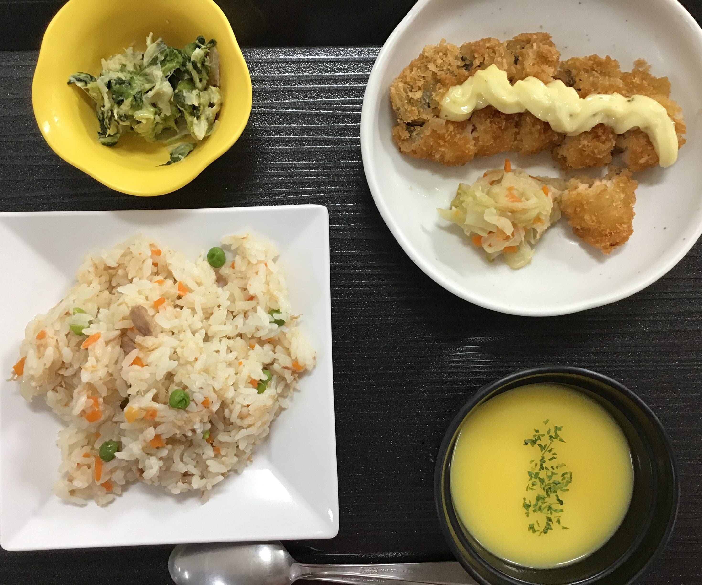 ツナピラフと鮭フライを合わせるとかなりのボリューム。