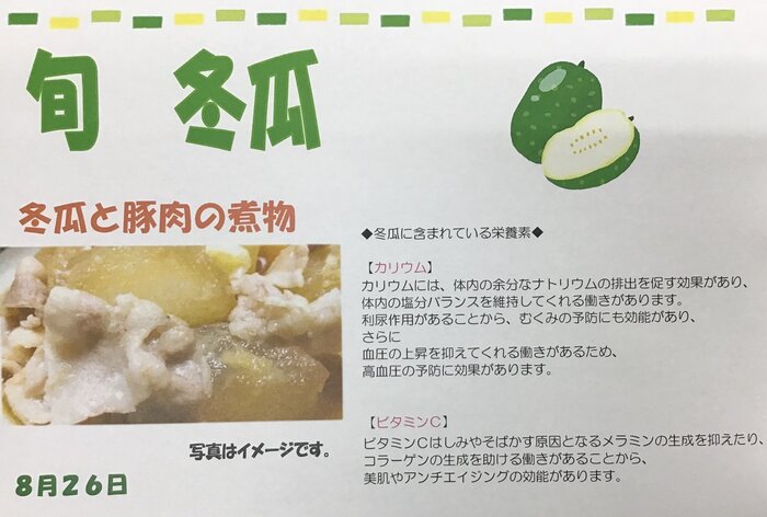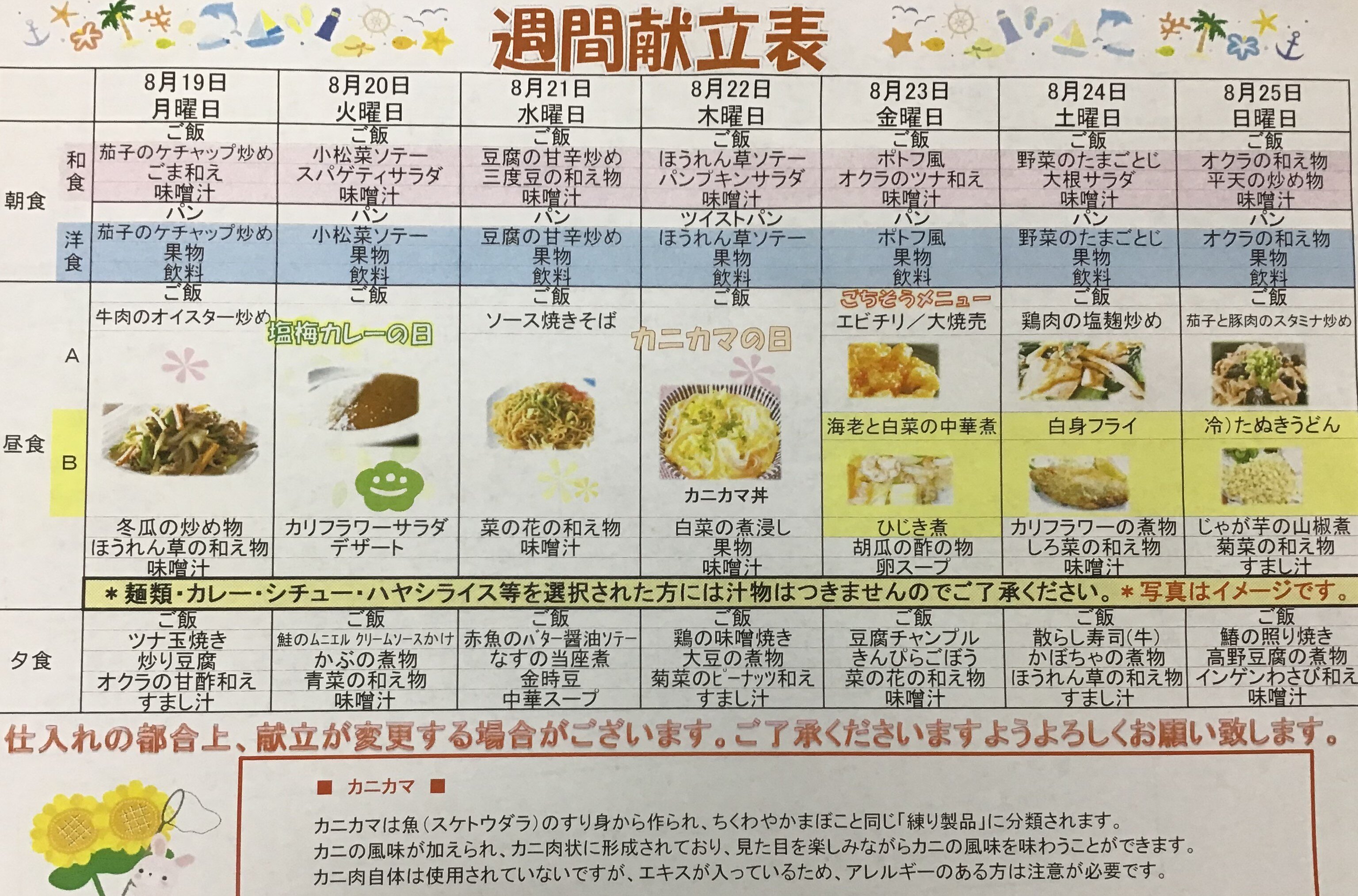 今回は「8月19日から25日までのメニュー表の紹介」です。