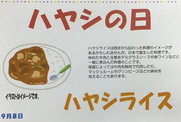 今回は9月13日(金)「ごちそうメニュー」のおしらせです。