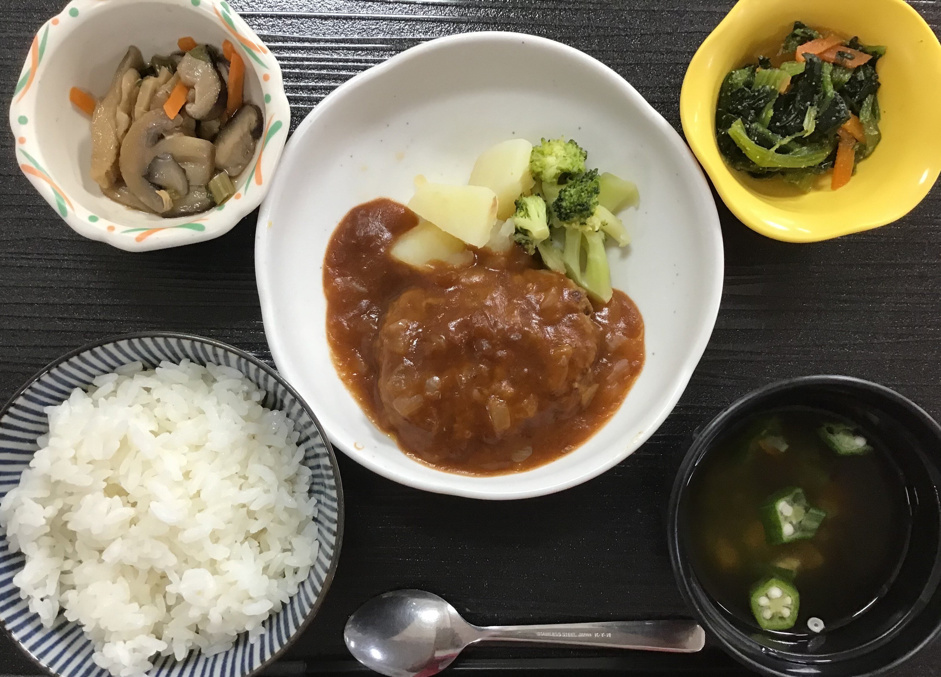 煮込みハンバーグはふっくらジューシーで食べやすく
