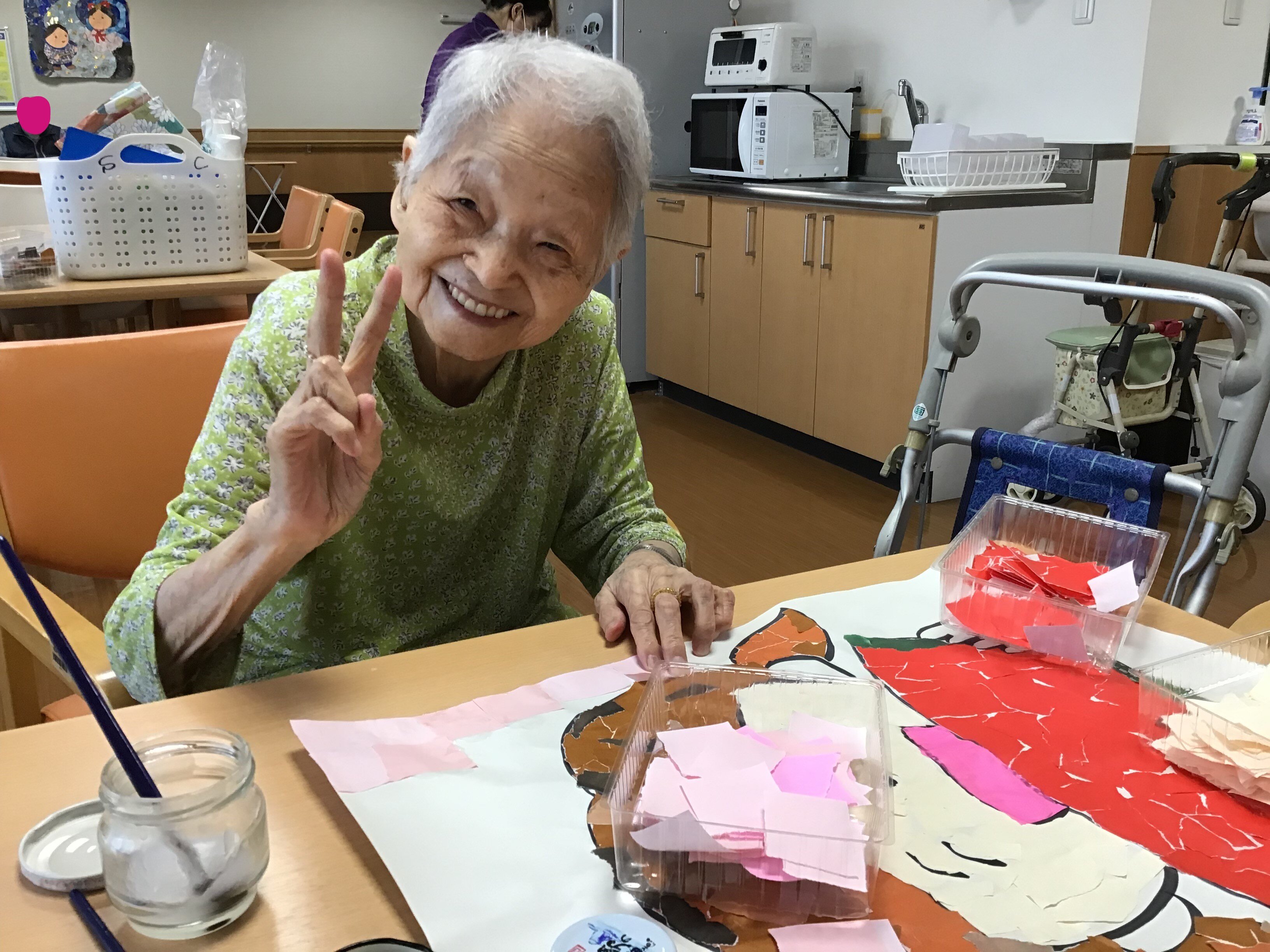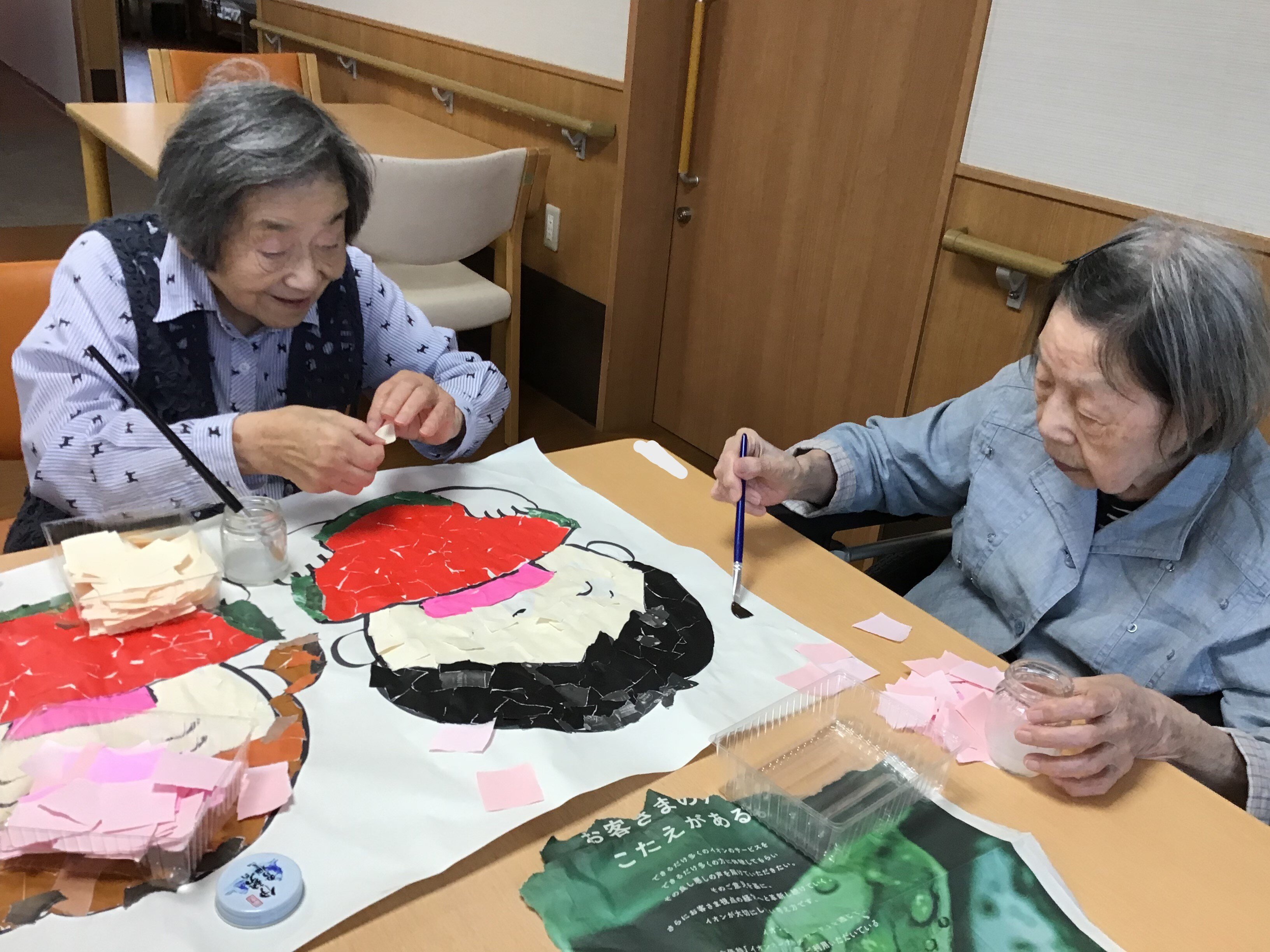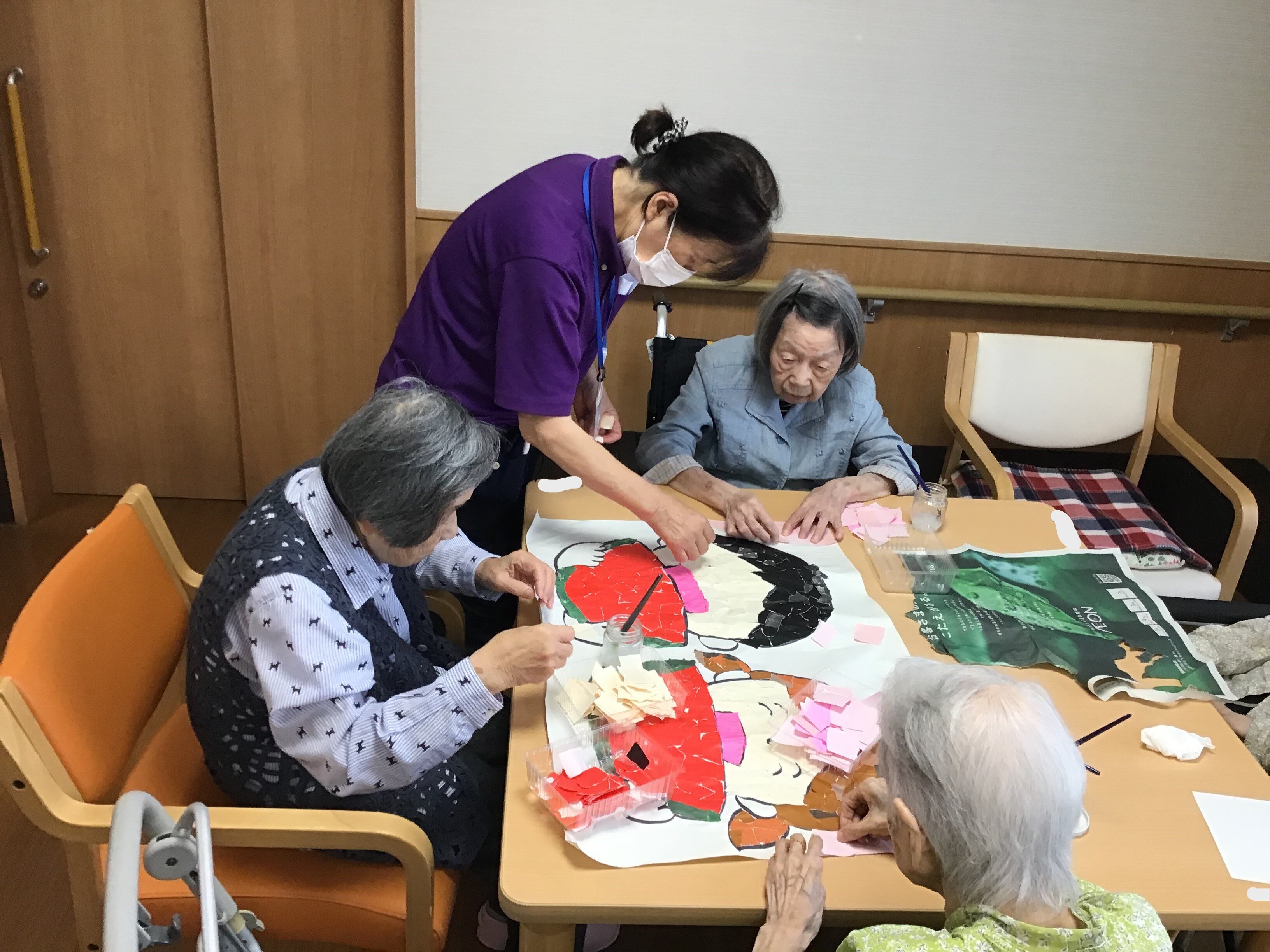 ご入居者と職員ですいかの貼り絵を制作しました。