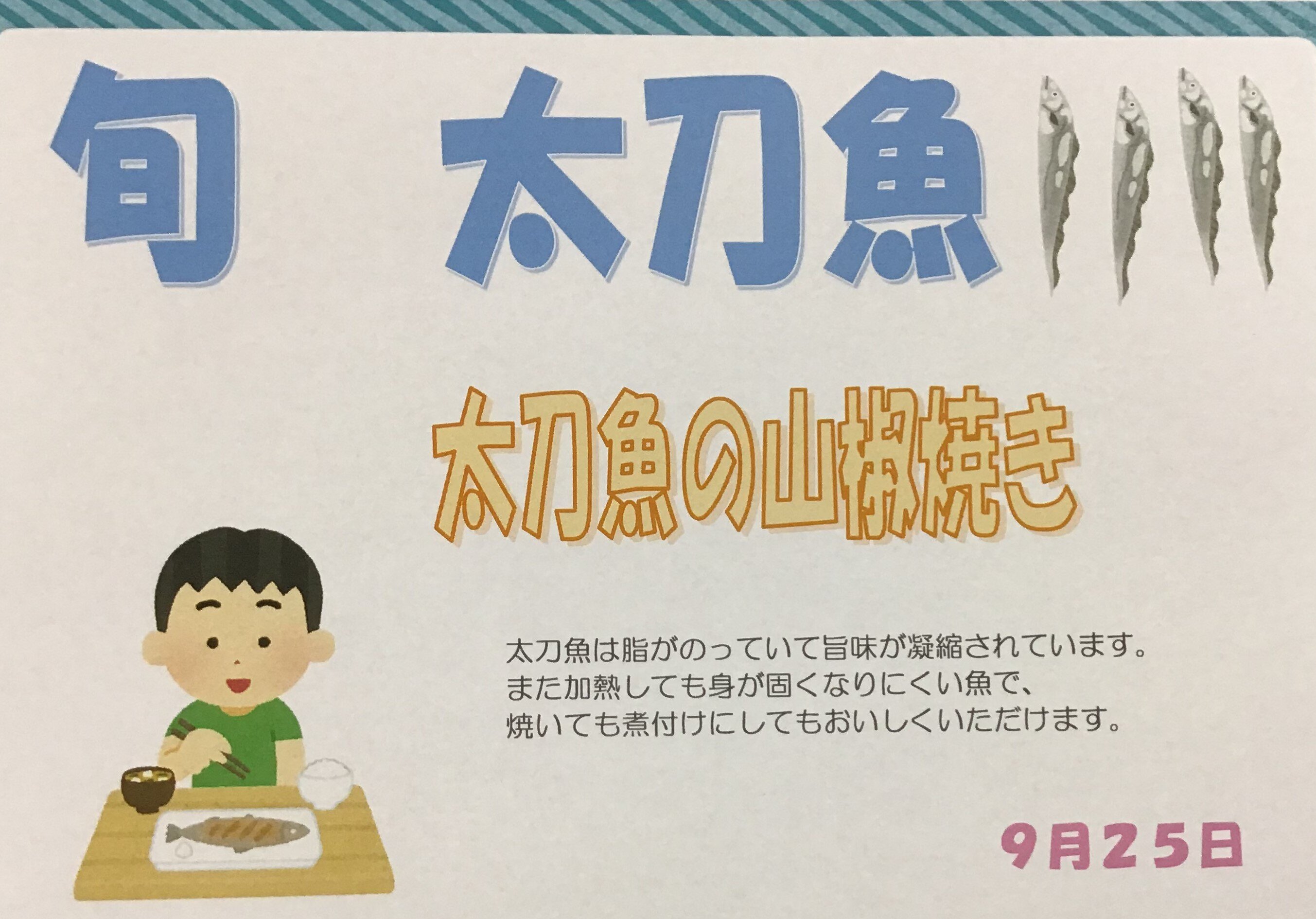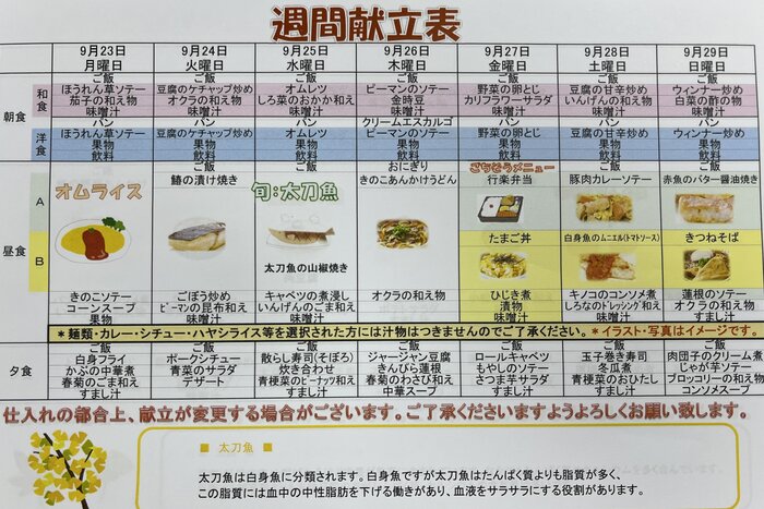 今回は「9月23日から9月29日までのメニュー表の紹介」です。