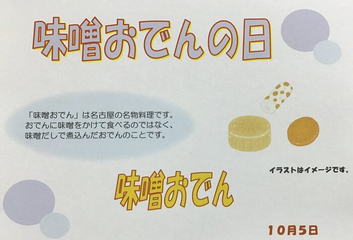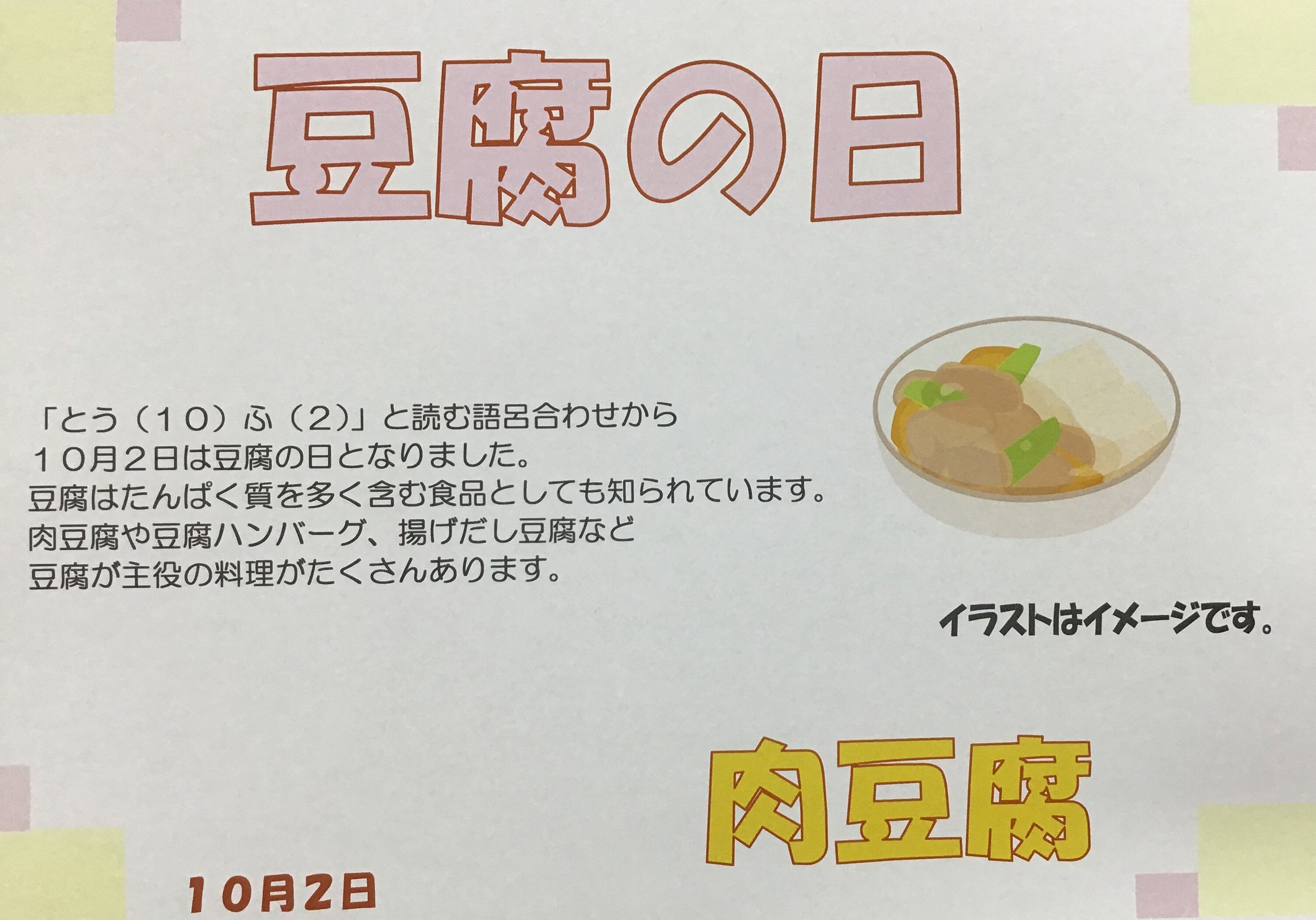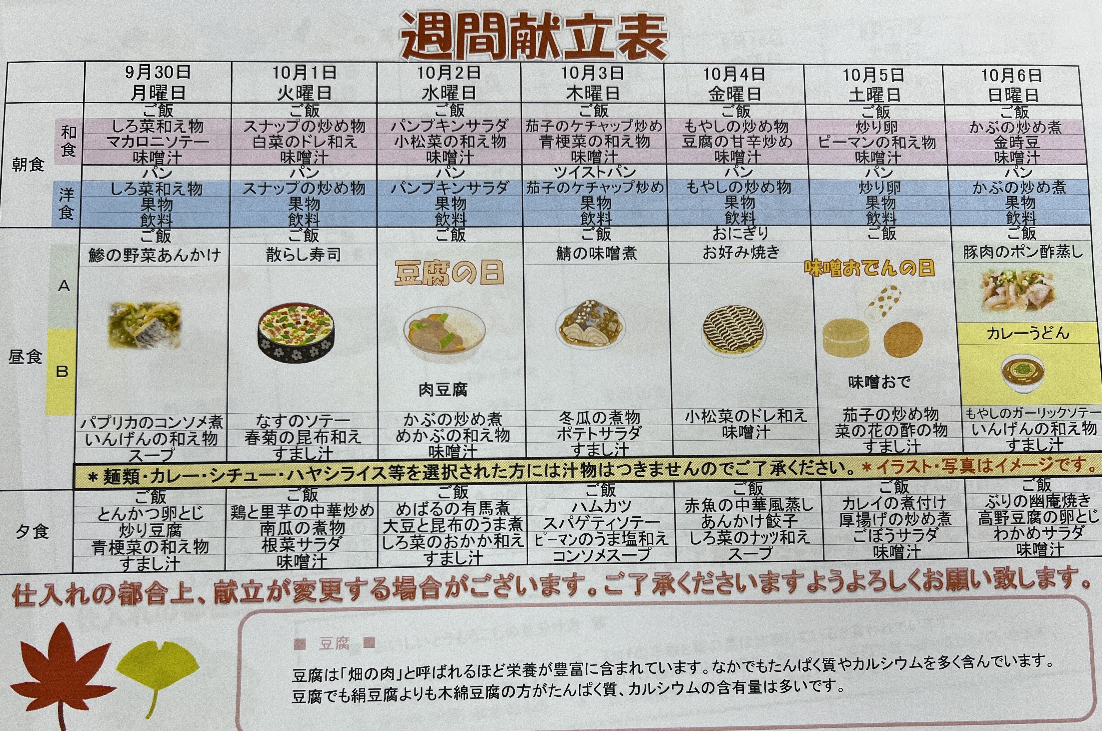 今回は「9月30日から10月6日までのメニュー表の紹介」です。