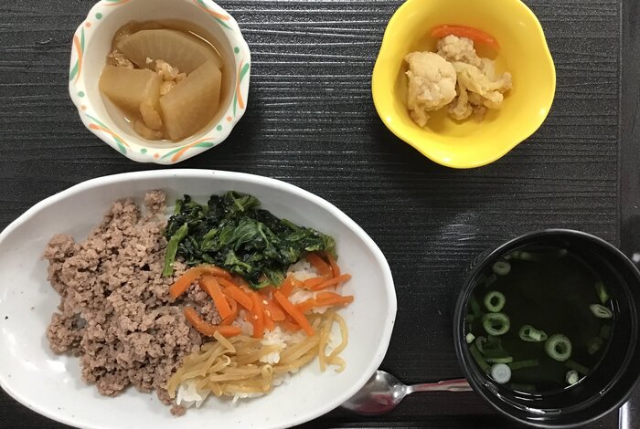 ビビンバは様々な野菜とひき肉が印象的で見た目も楽しく好評で