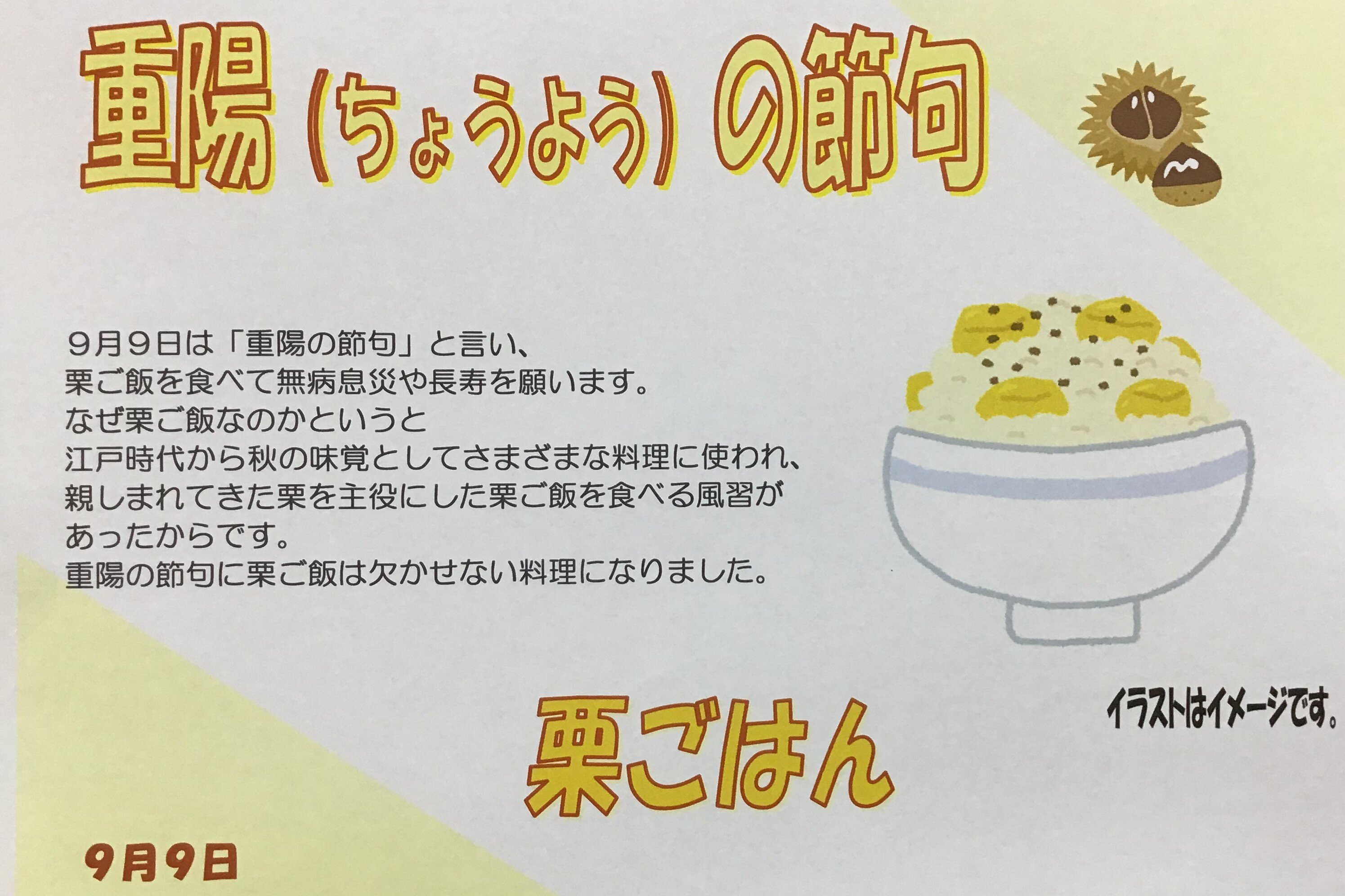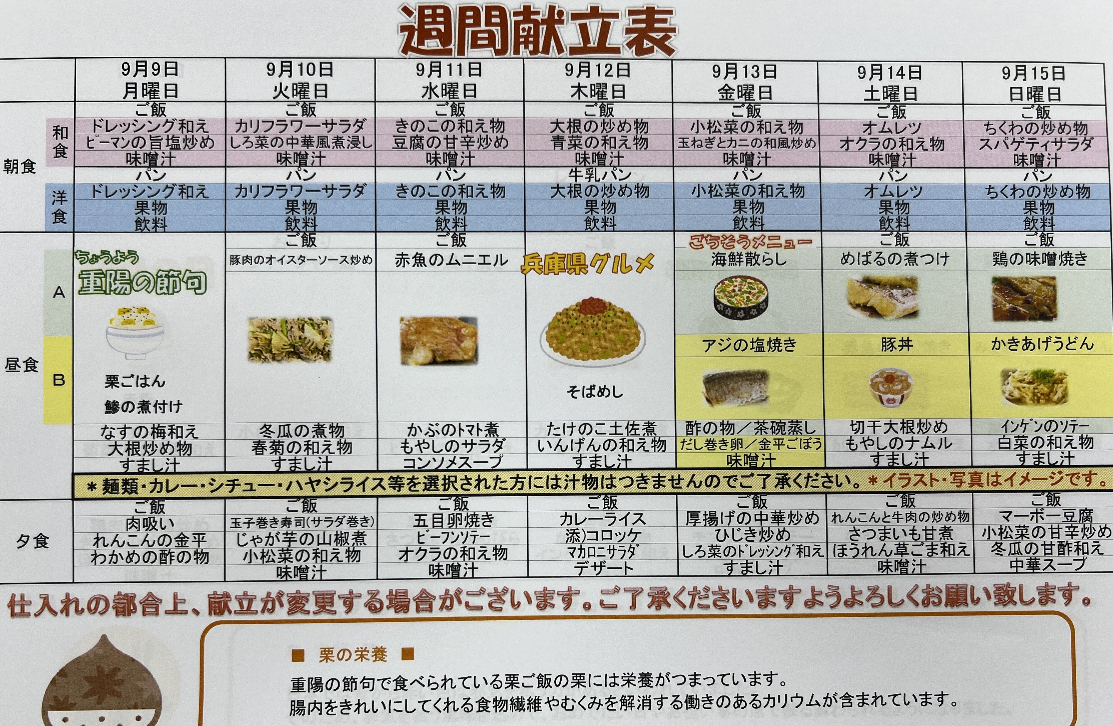 今回は「9月9日から9月15日までのメニュー表の紹介」です。