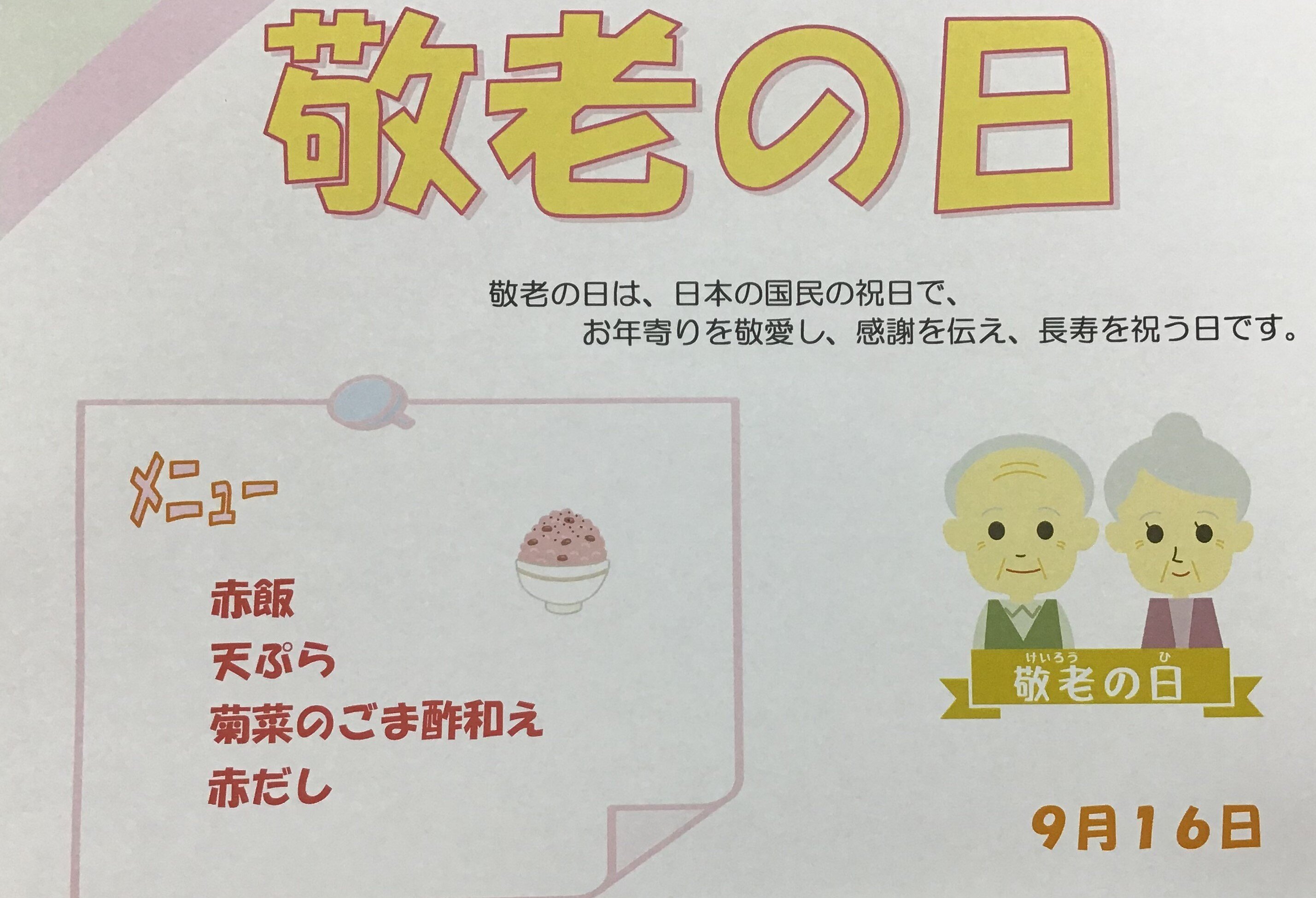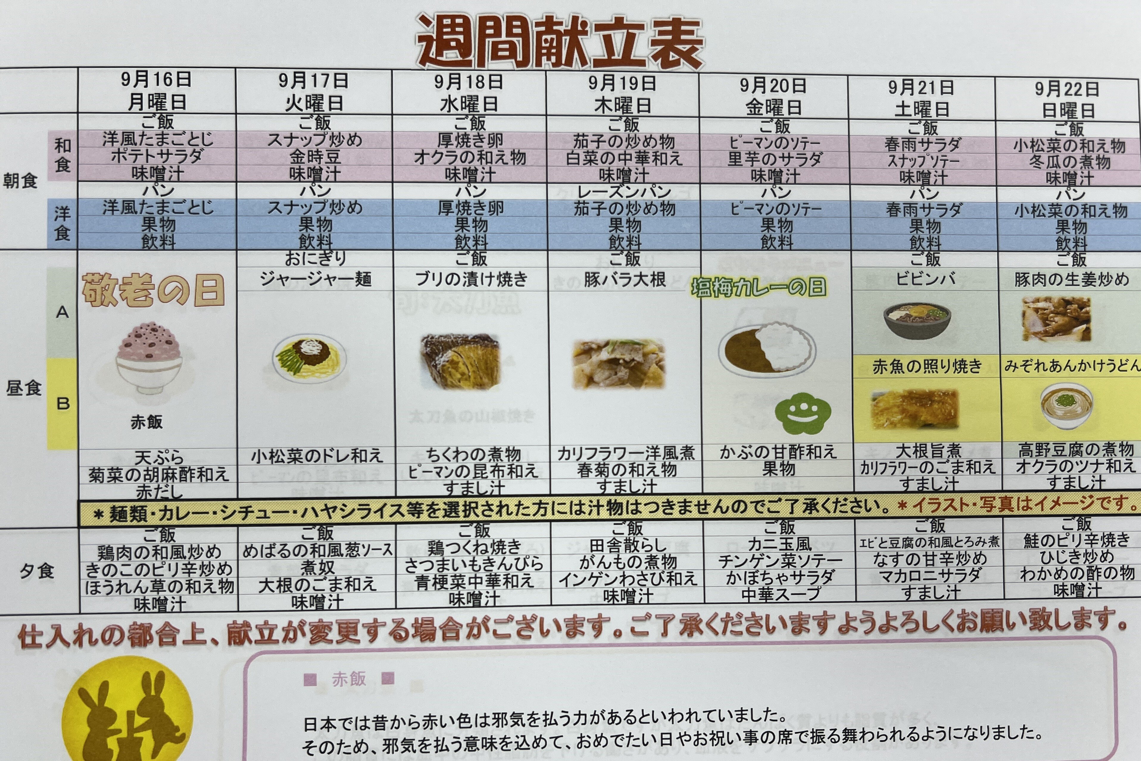 今回は「9月16日から9月22日までのメニュー表の紹介」です。