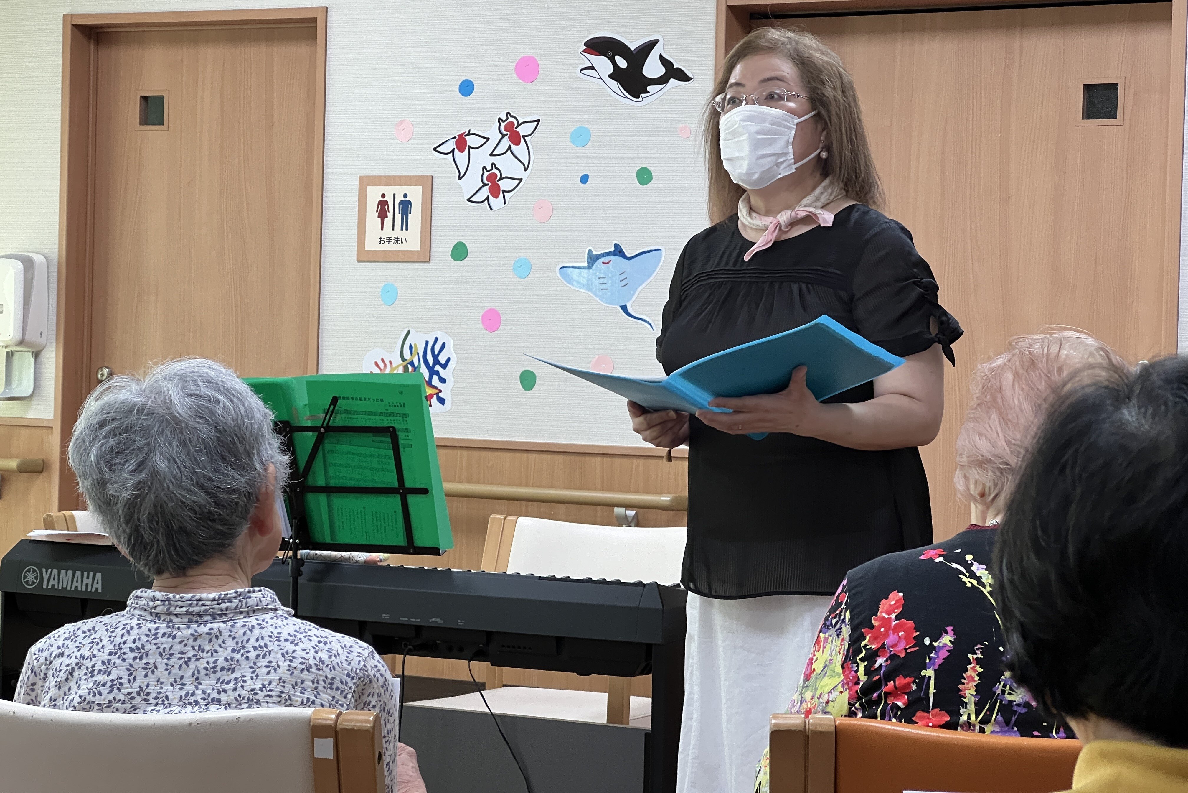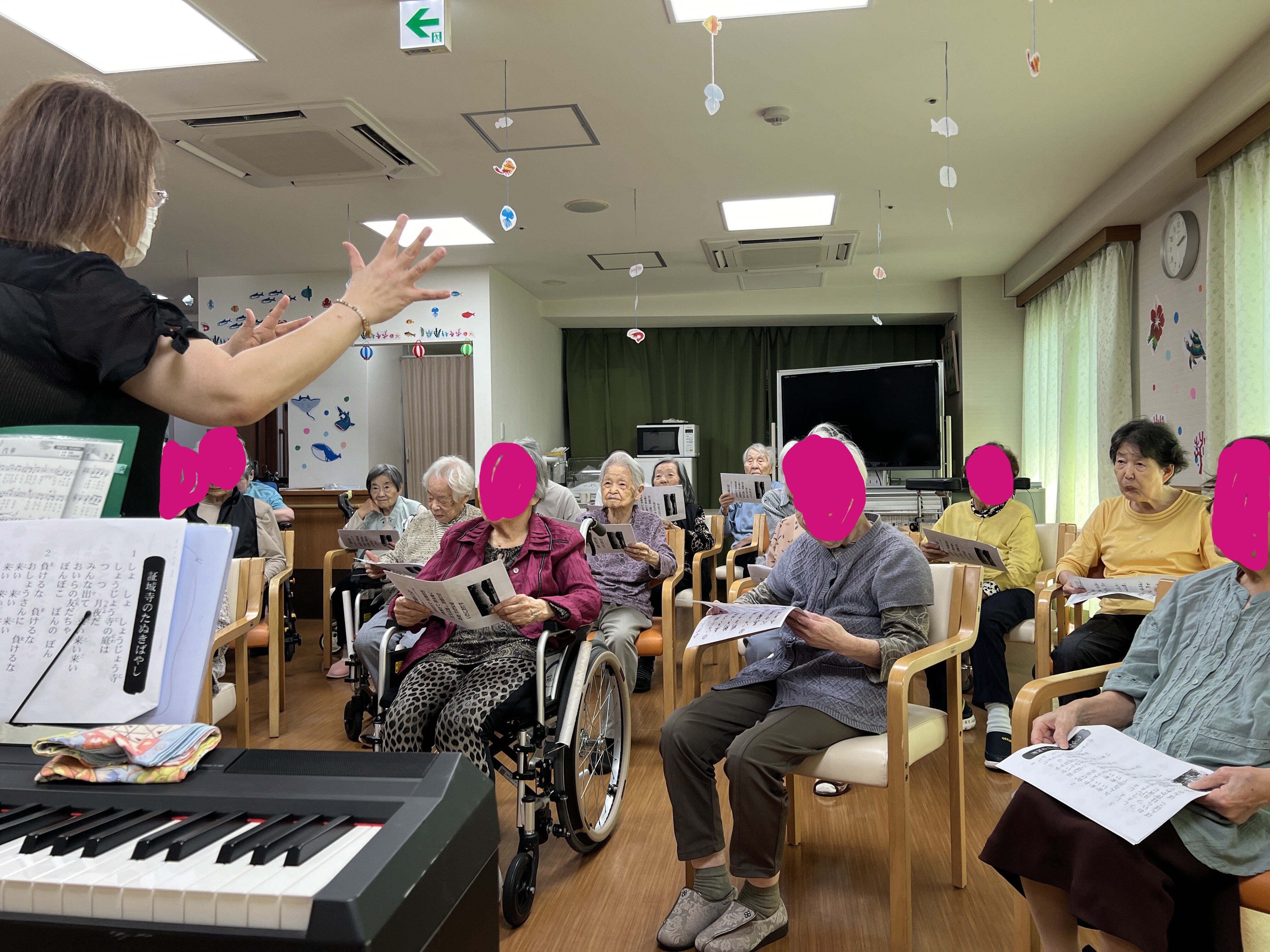 をご入居者と先生で元気に合唱の後