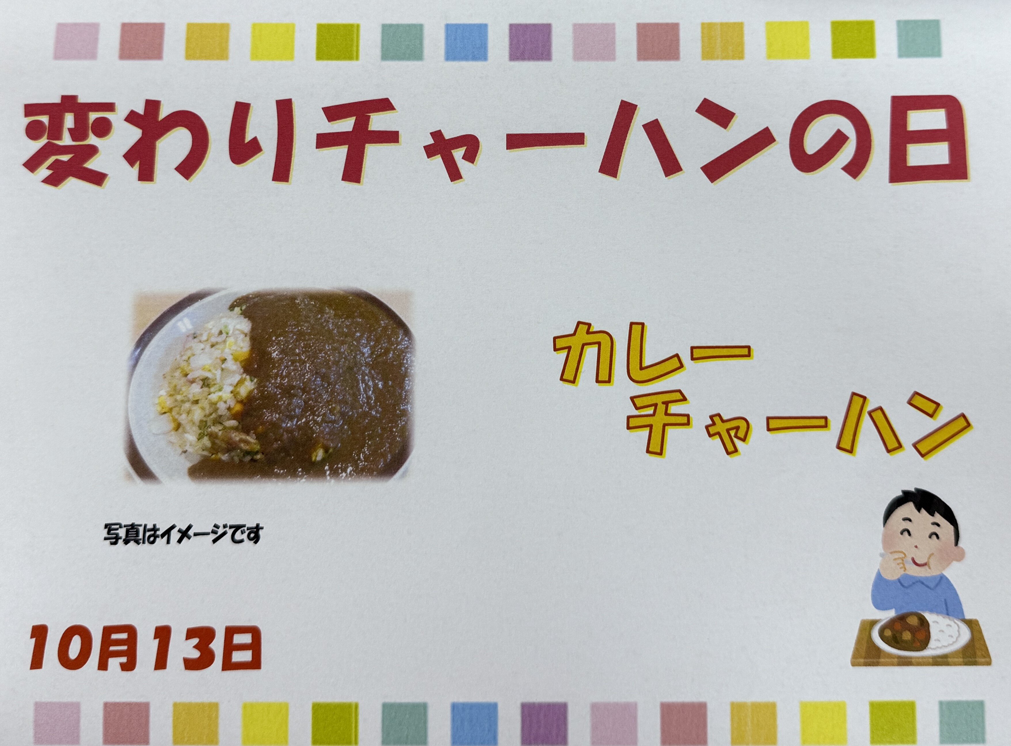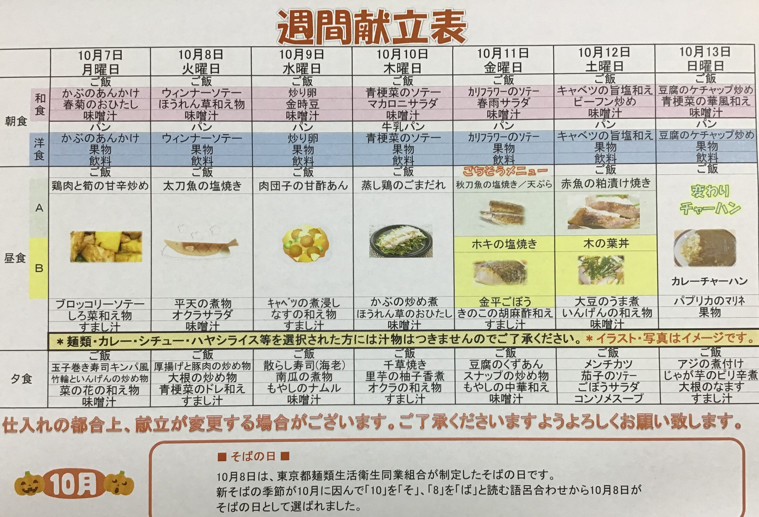 今回は「10月7日から10月13日までのメニュー表の紹介」です。