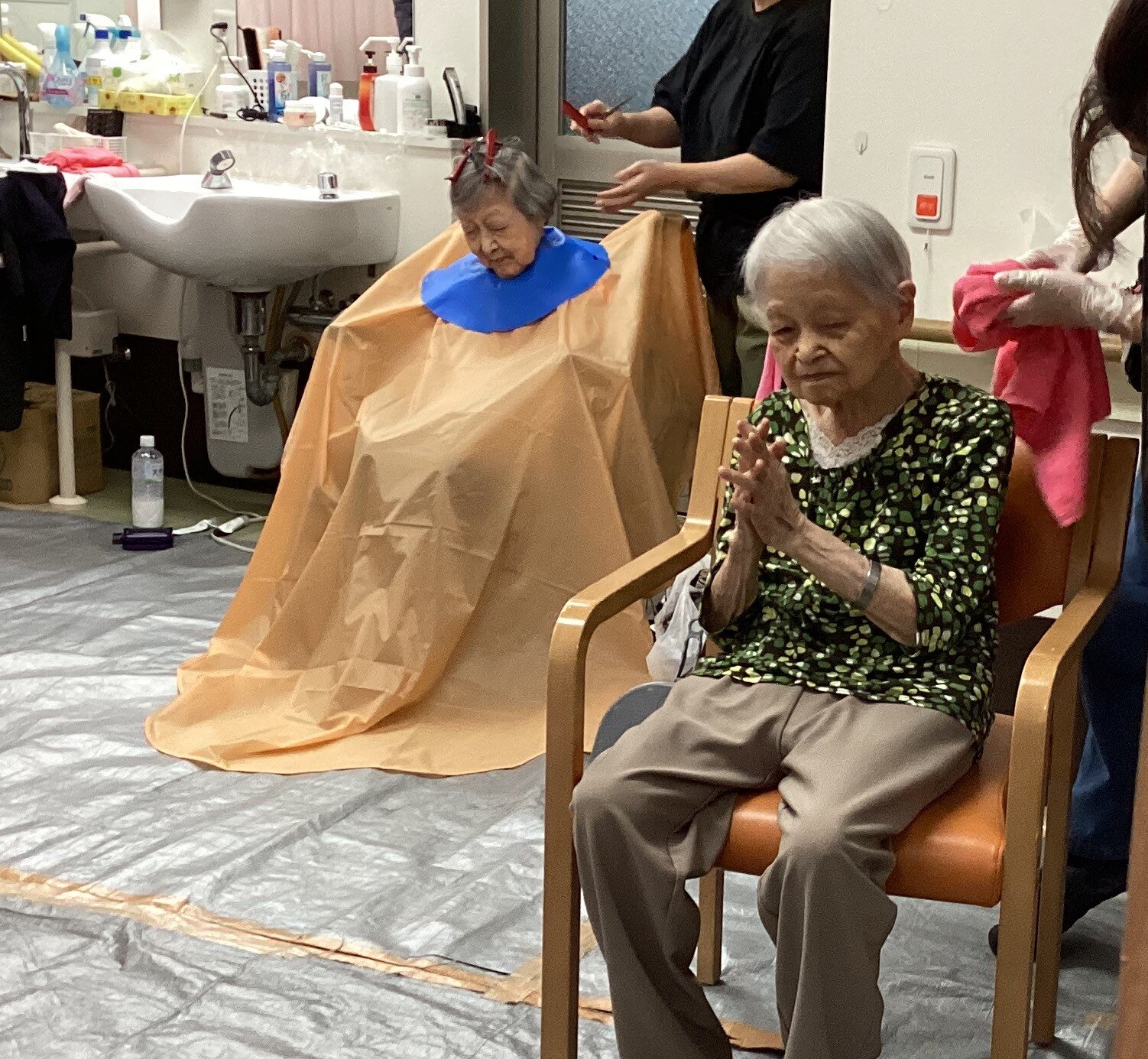 この日は3人の訪問美容師さんが訪れ