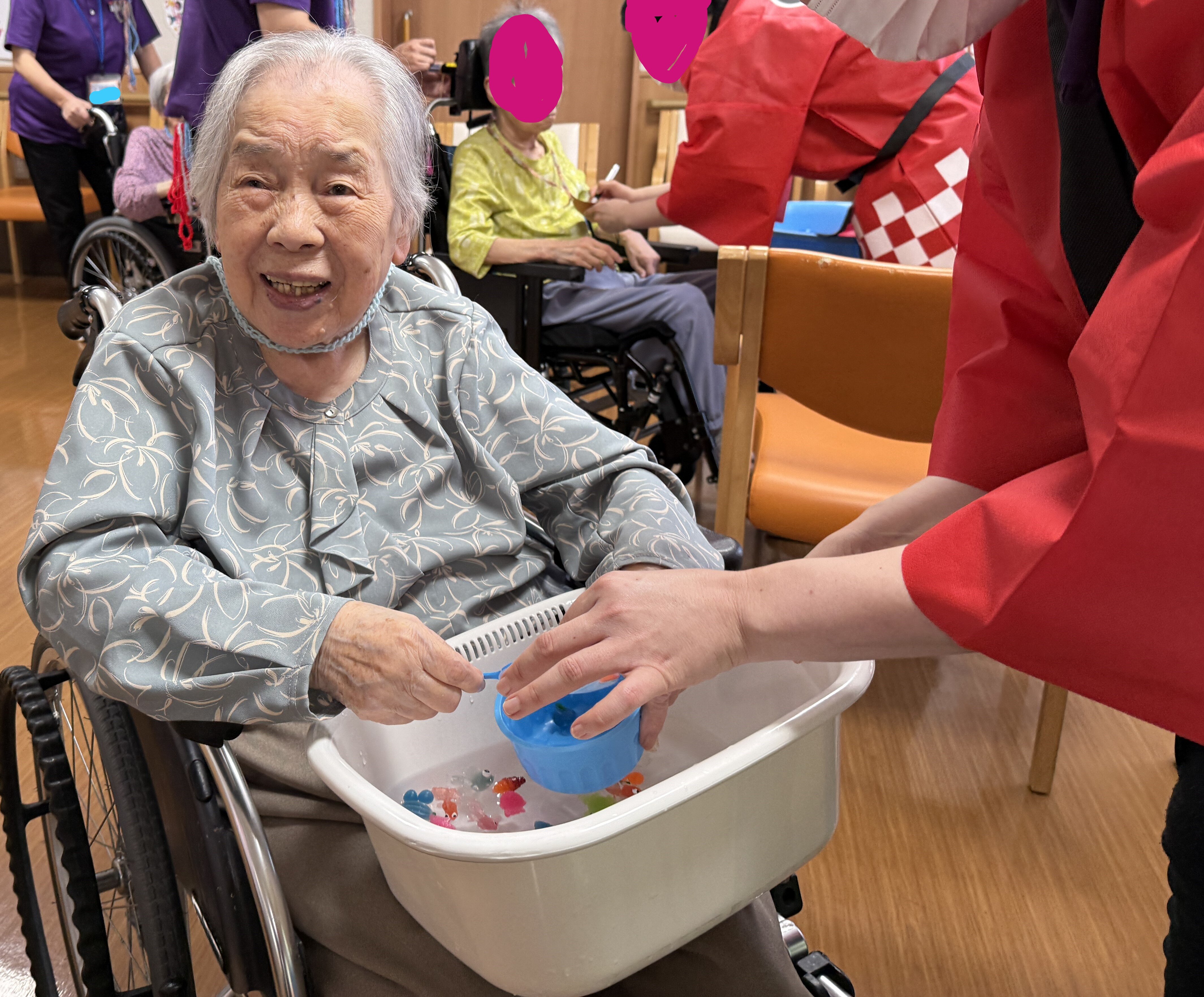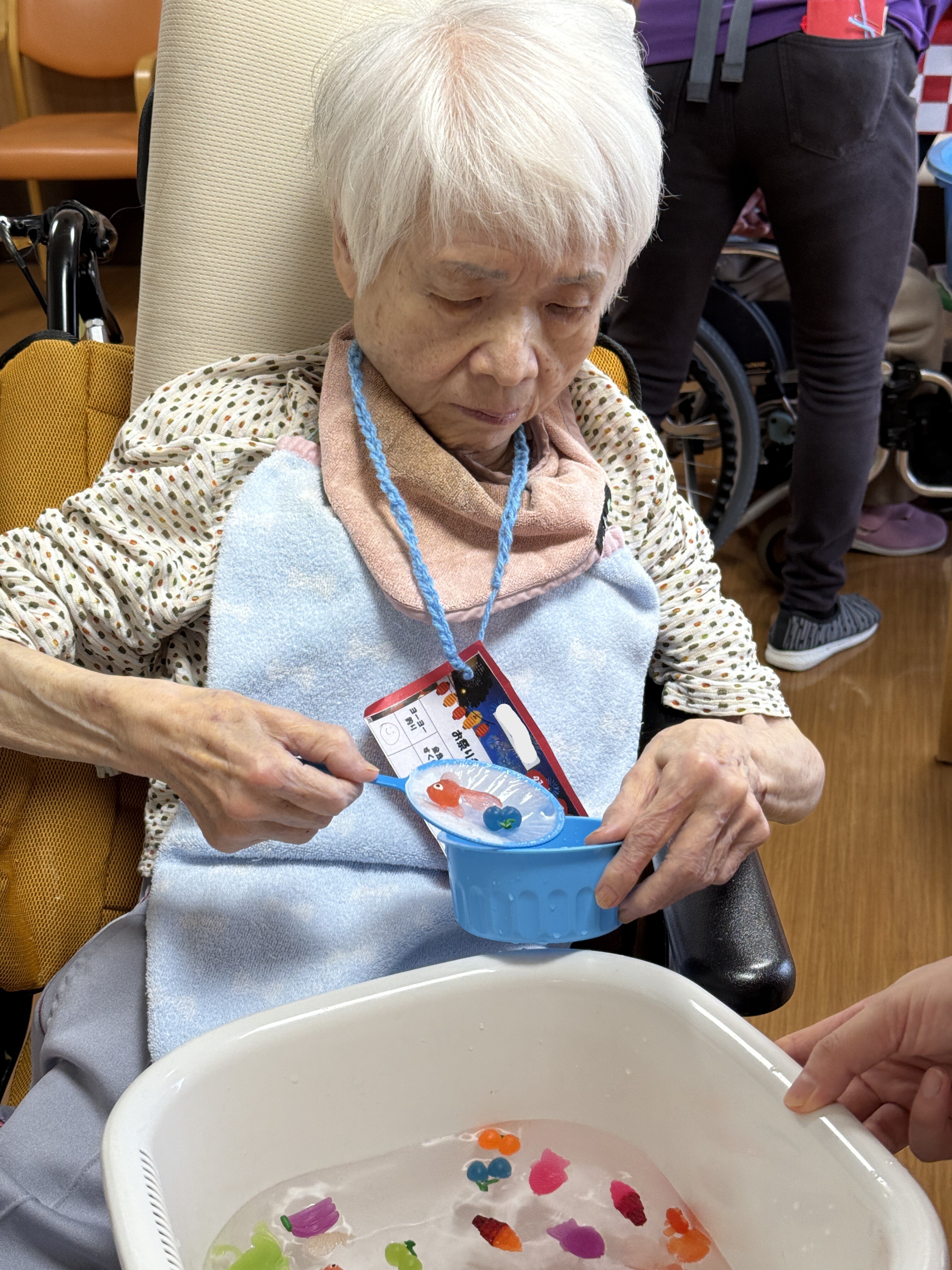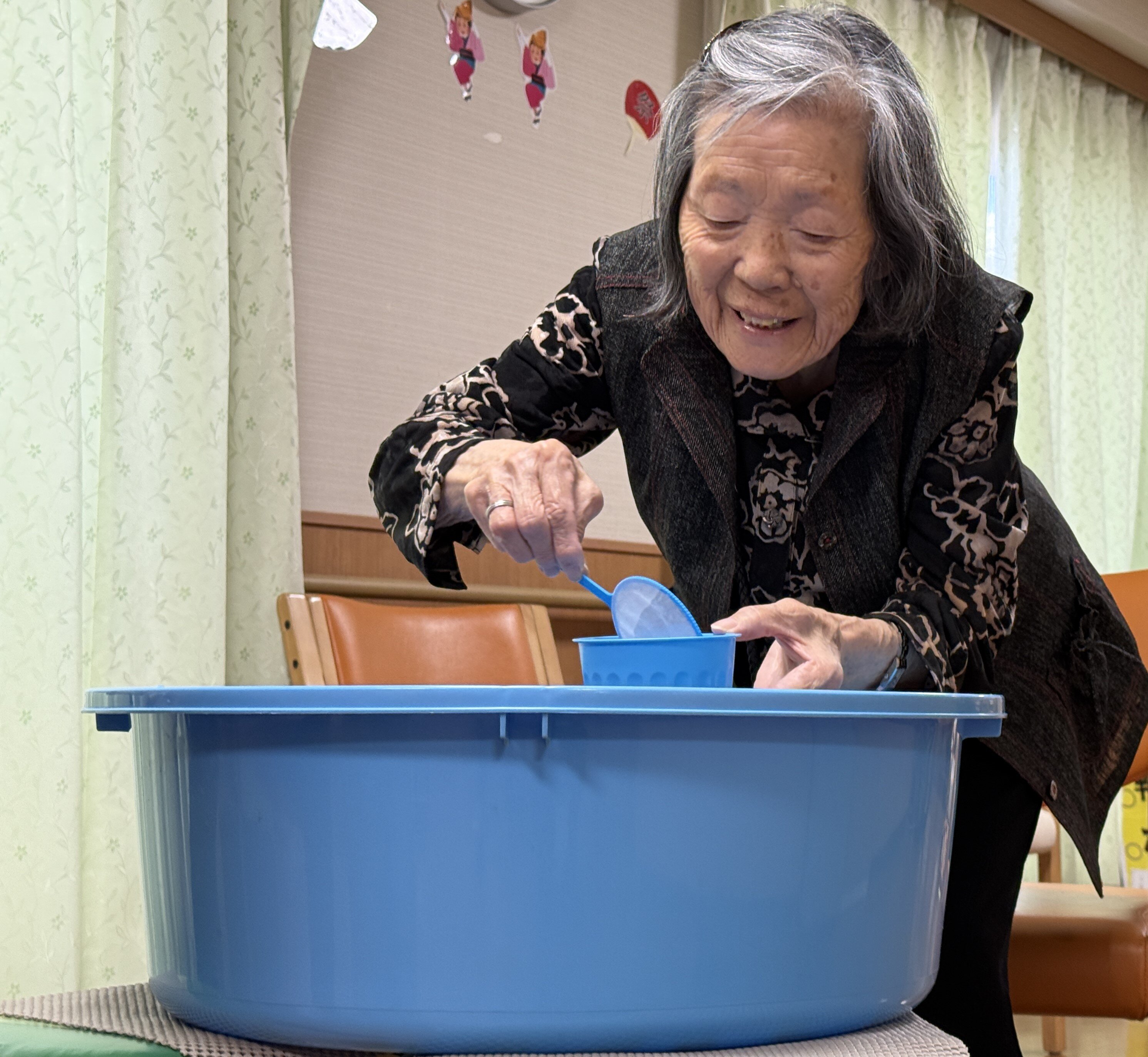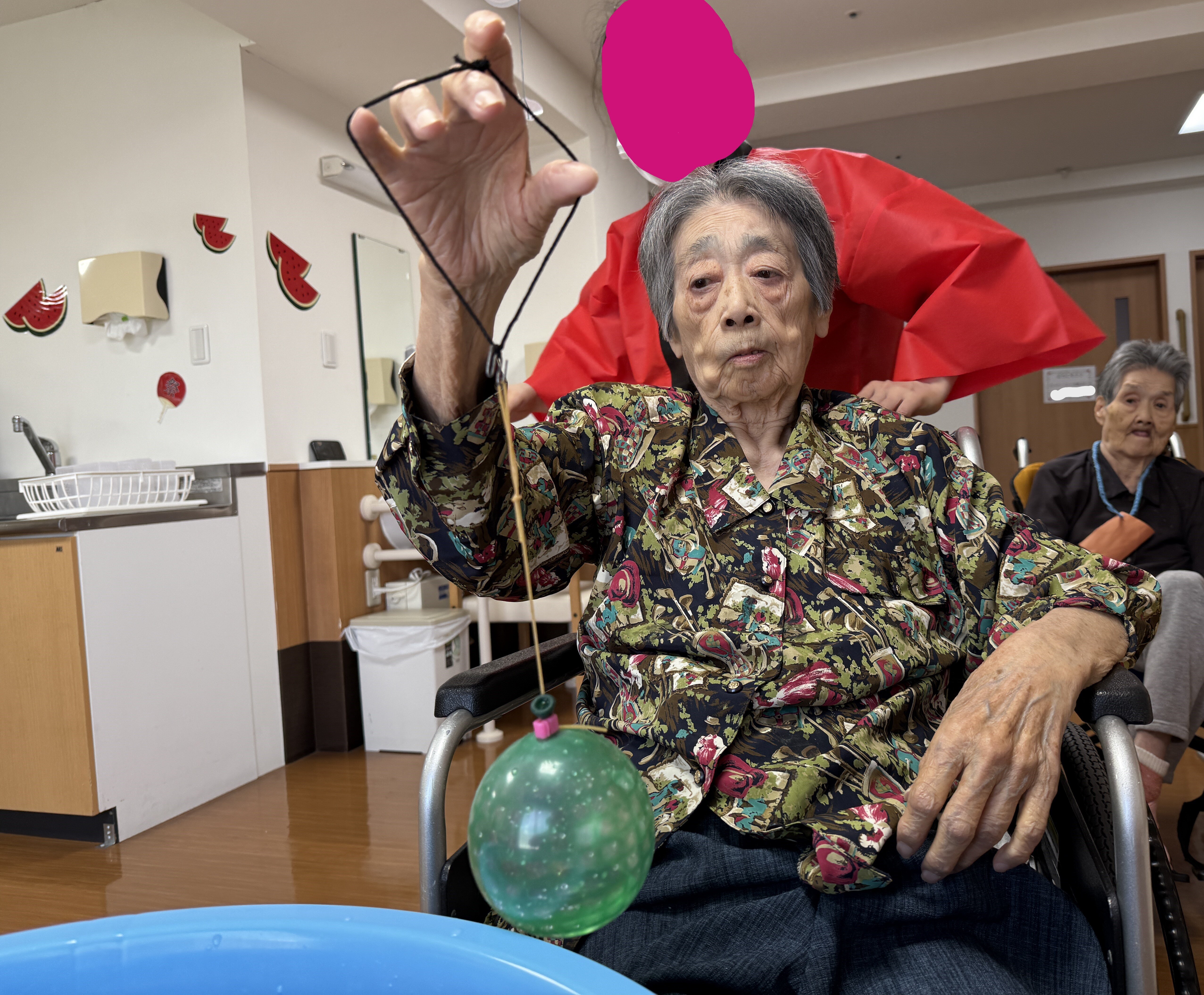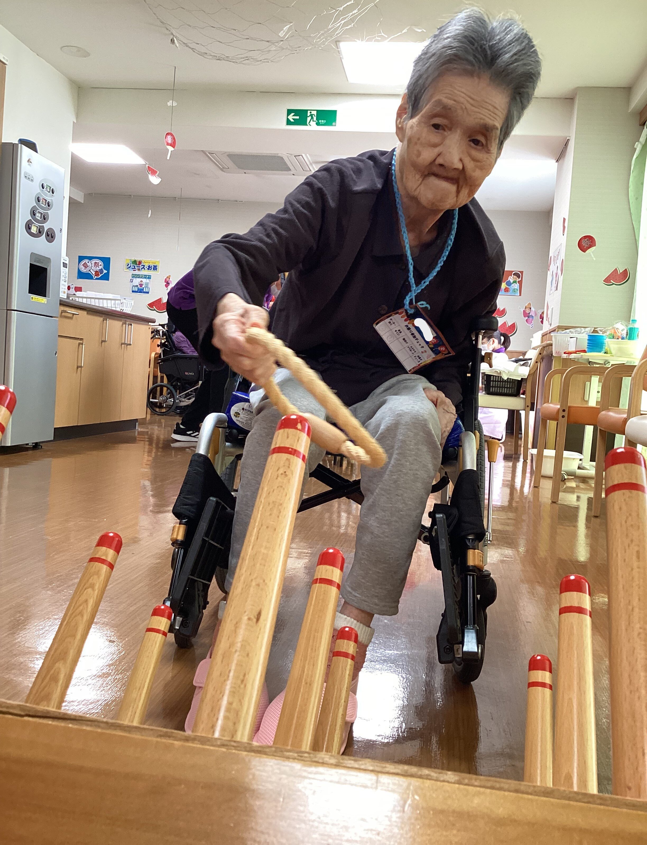 ご入居者の真剣に狙いを定める目は素晴らしいです。