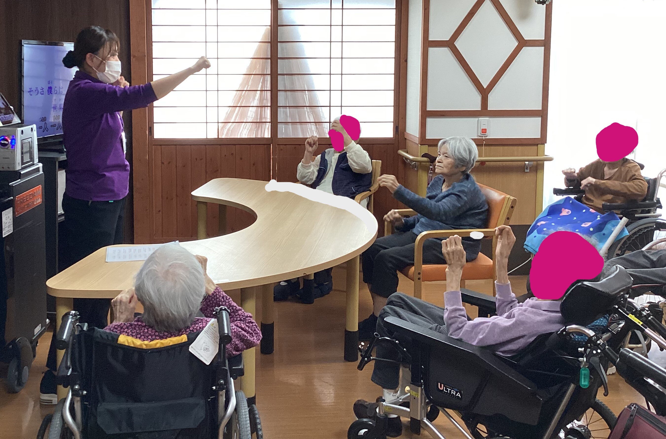 介護職員による体操の様子をお伝えしますね(^_-)-☆