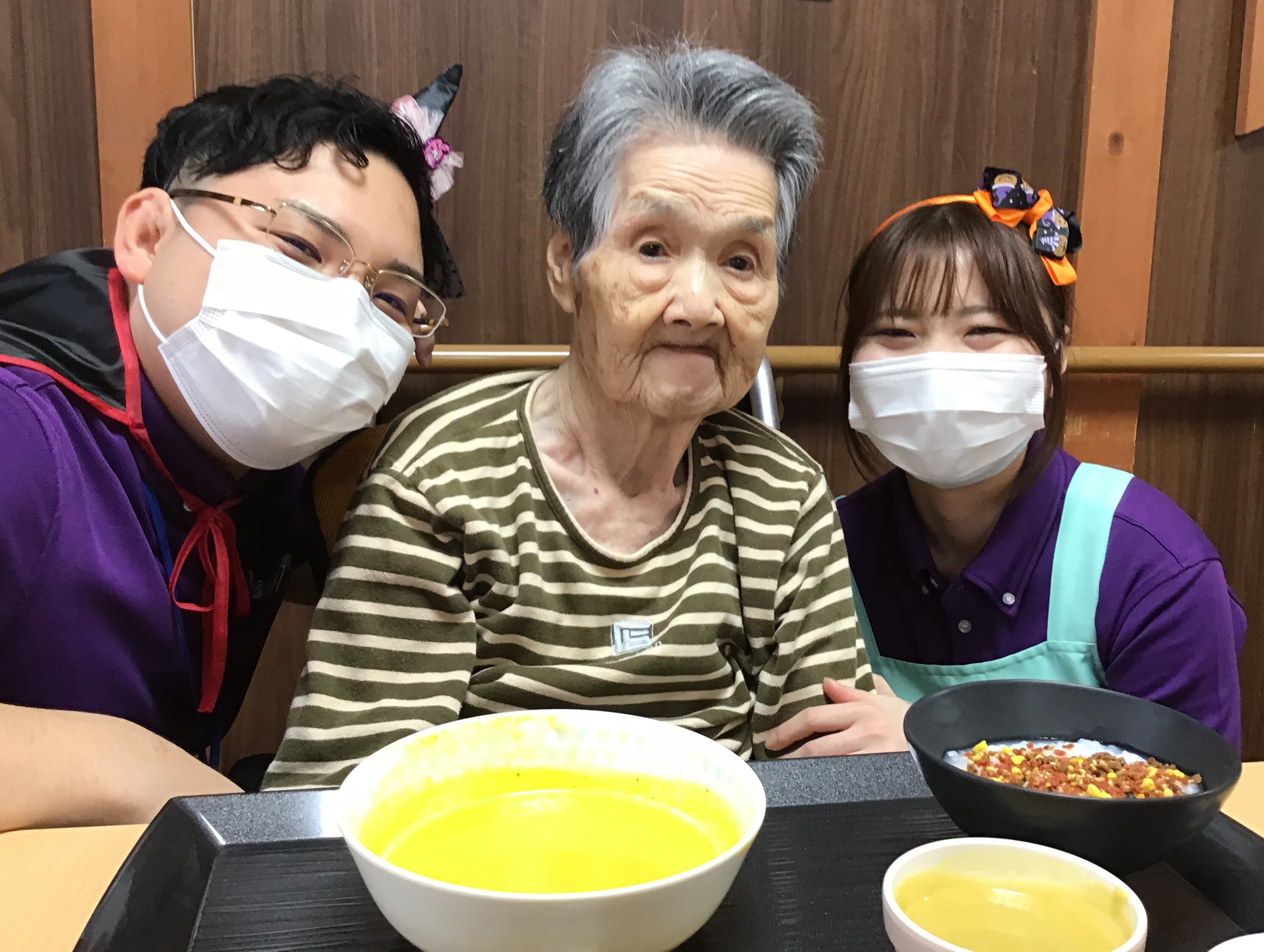 職員が仮装する事によって笑い声が漏れ明るい食堂となりました(≧▽≦)