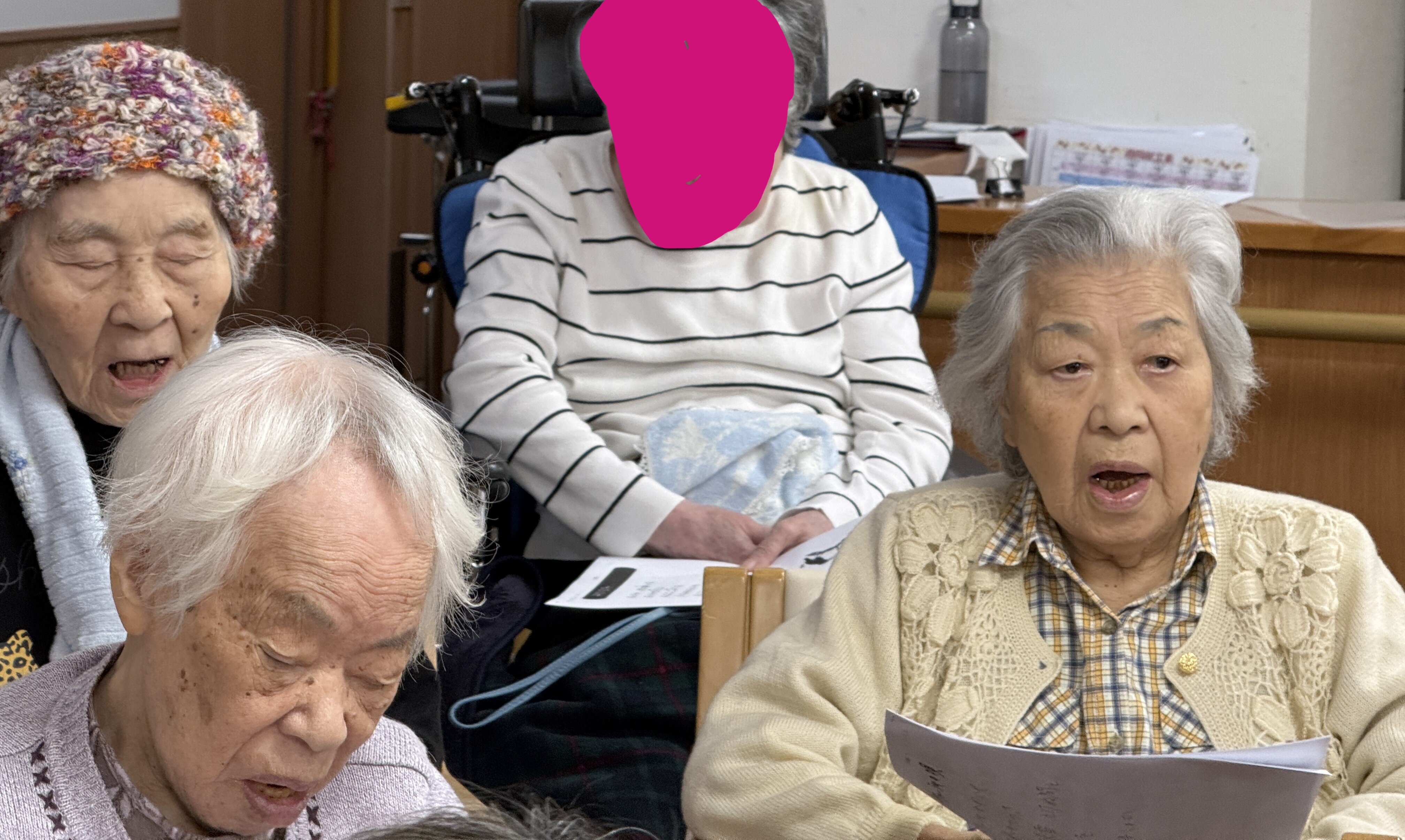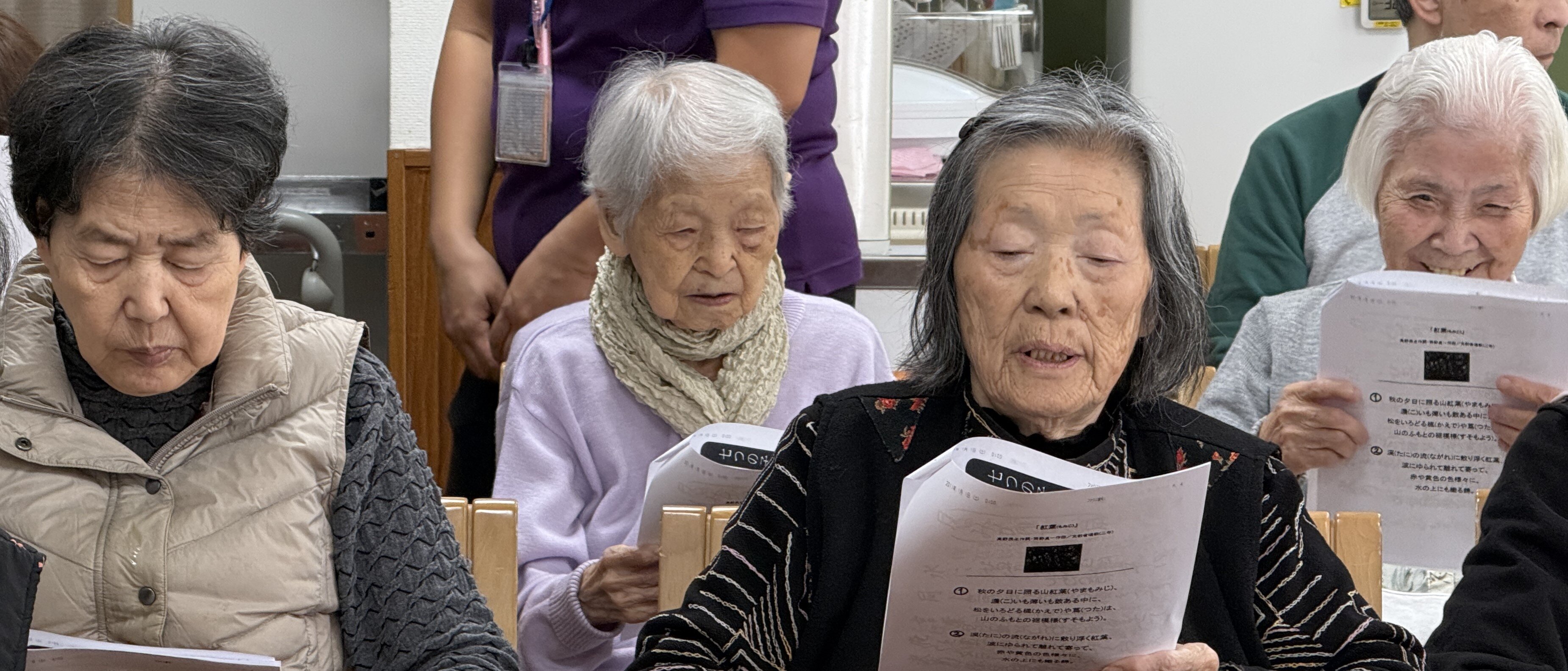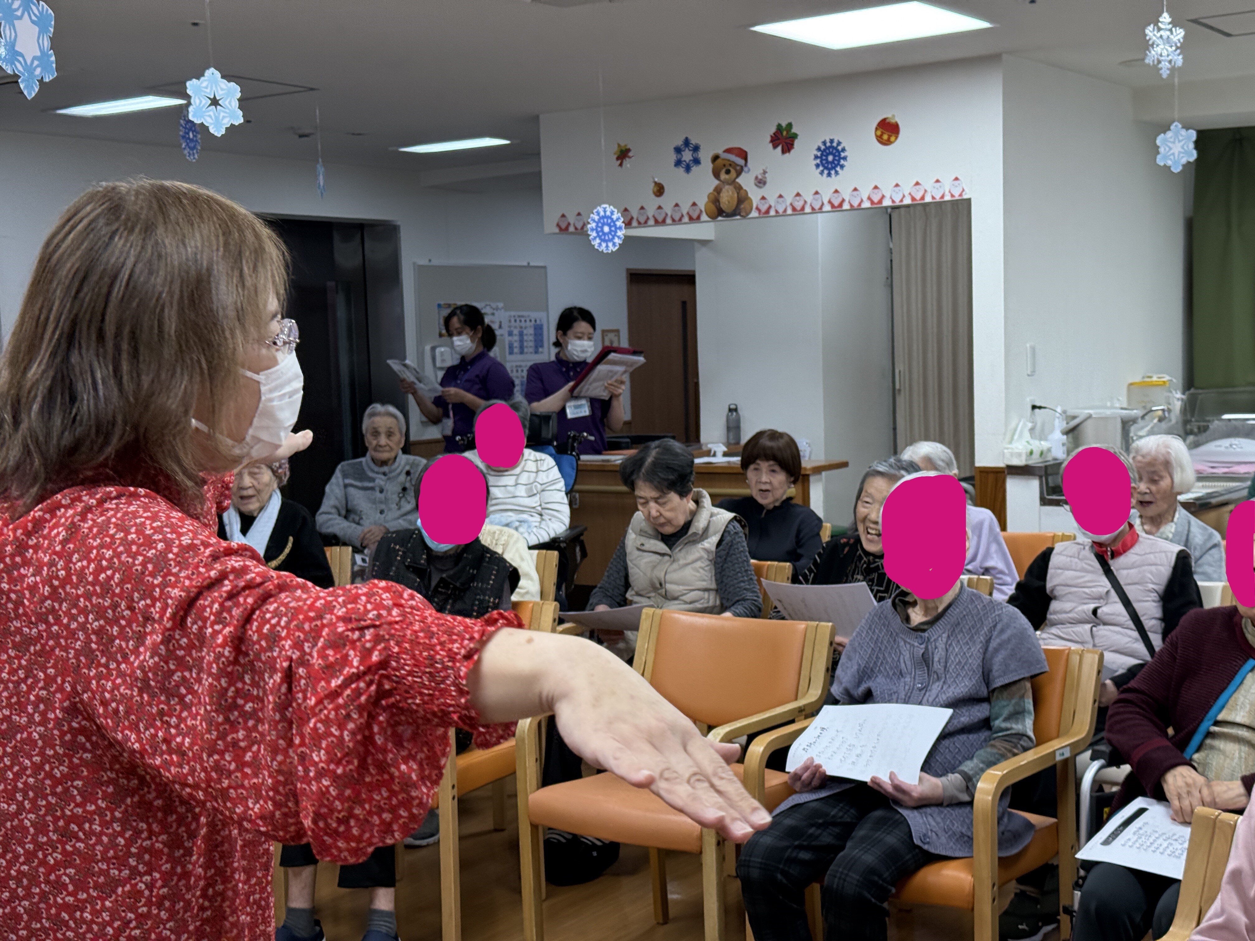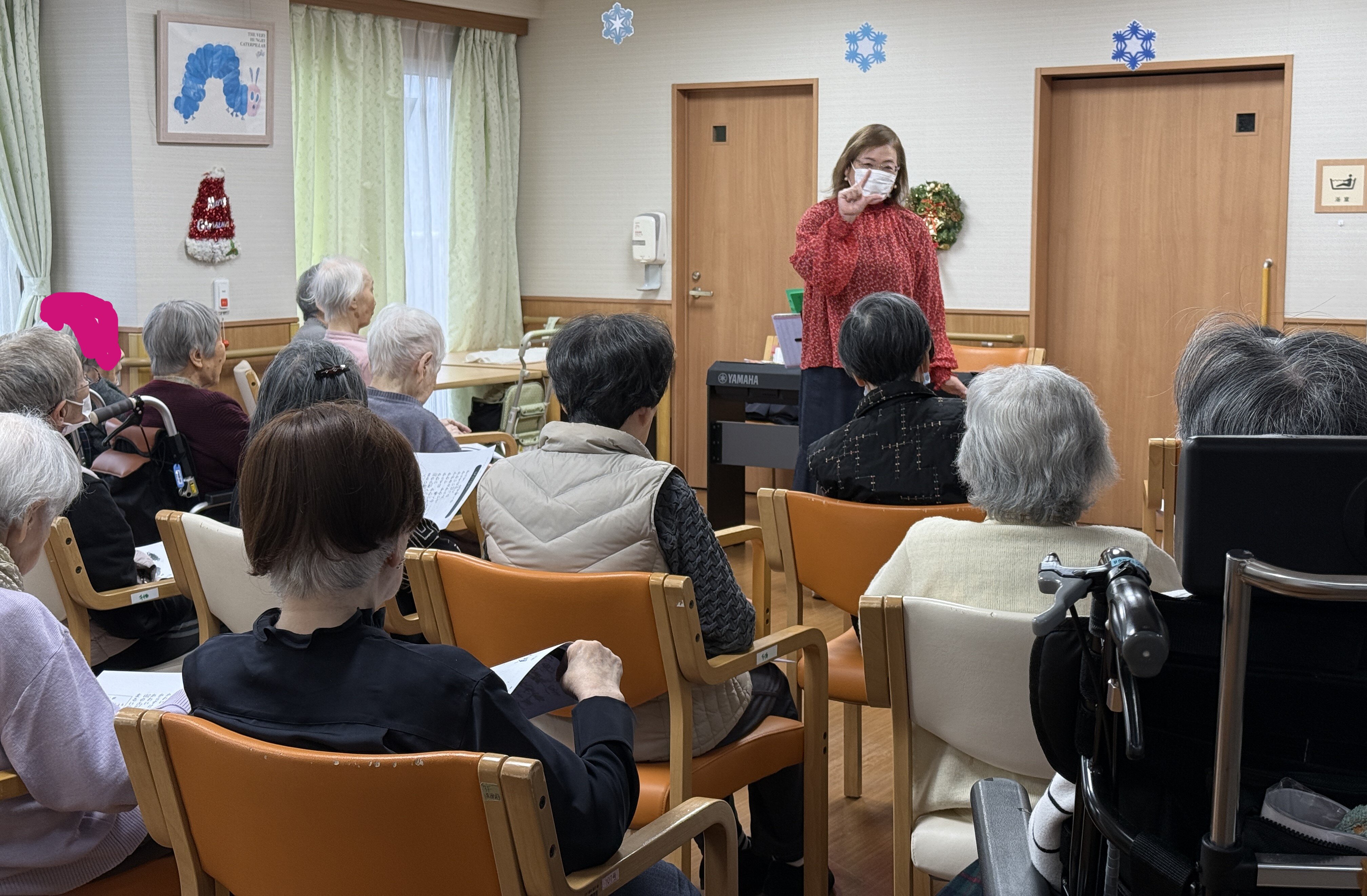歌を聴いた際のご入居者のたくさんの笑顔がとても印象的でした。