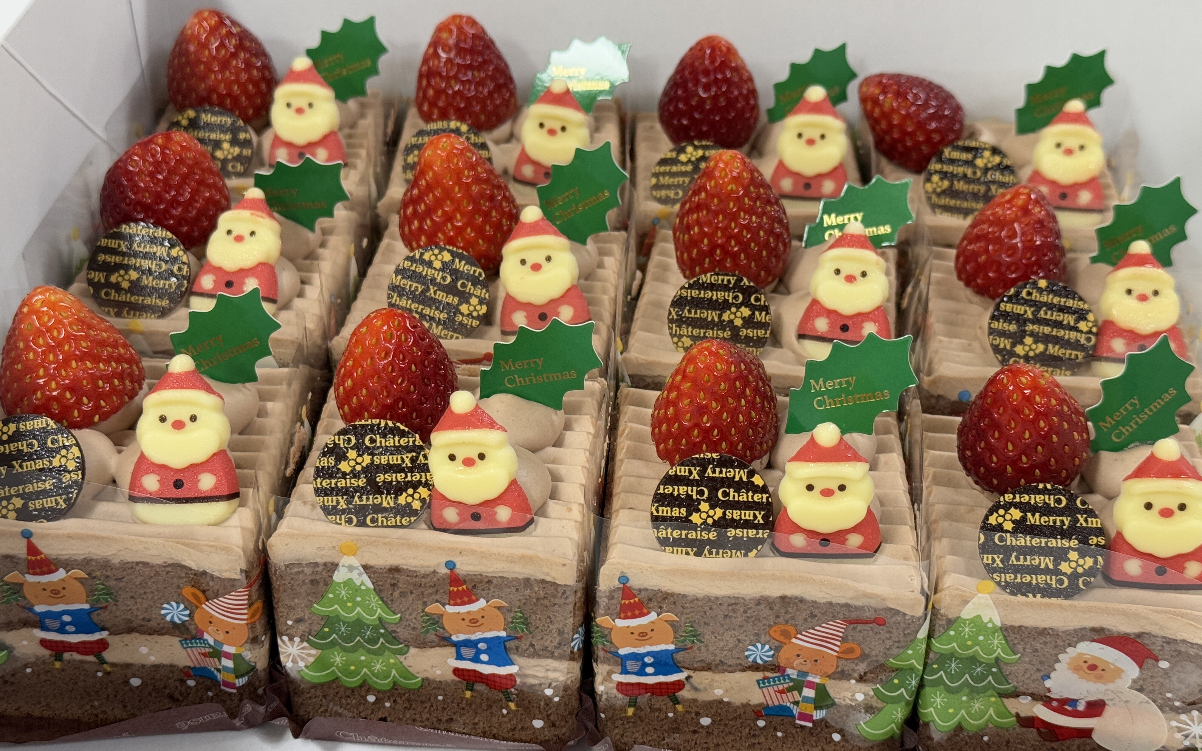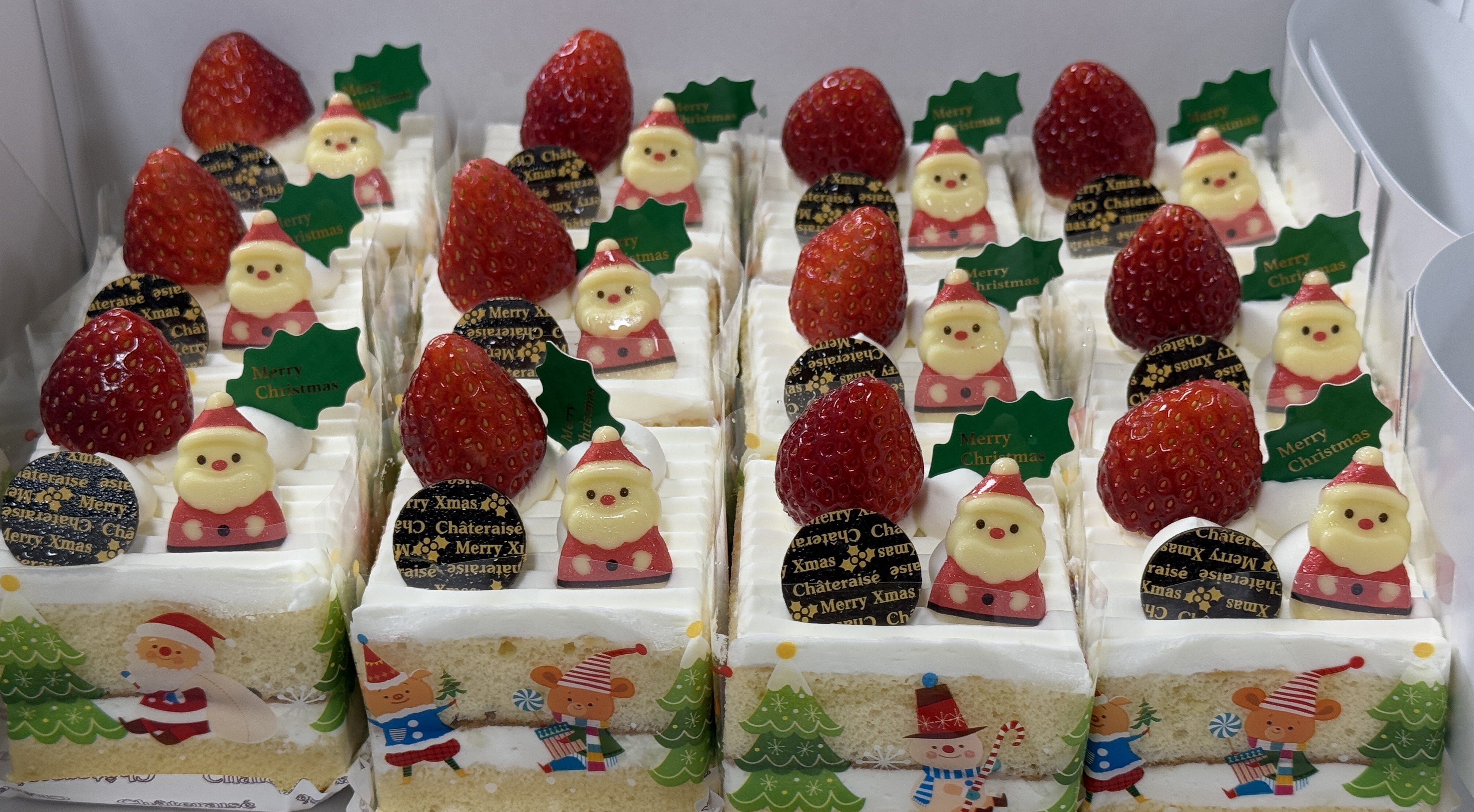 いちごがのった2種類のクリスマスケーキをご用意させていただきました。