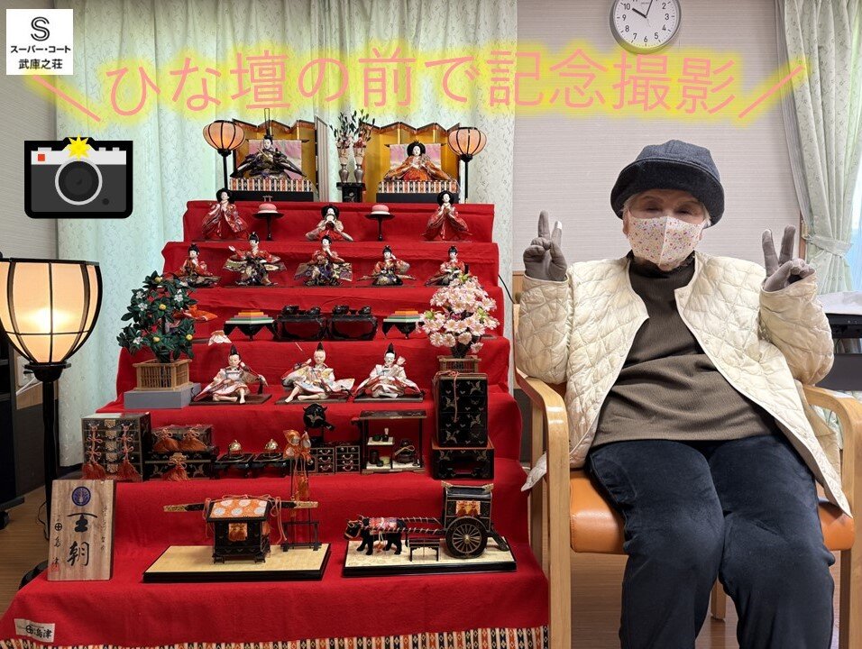今月最後のブログは「ご入居者と立派なひな壇の写真」の紹介です♬