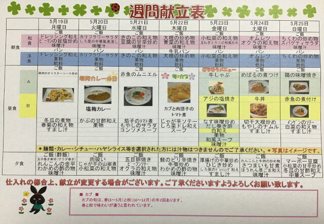 今回は「5/19~5/25までのメニュー紹介」です。