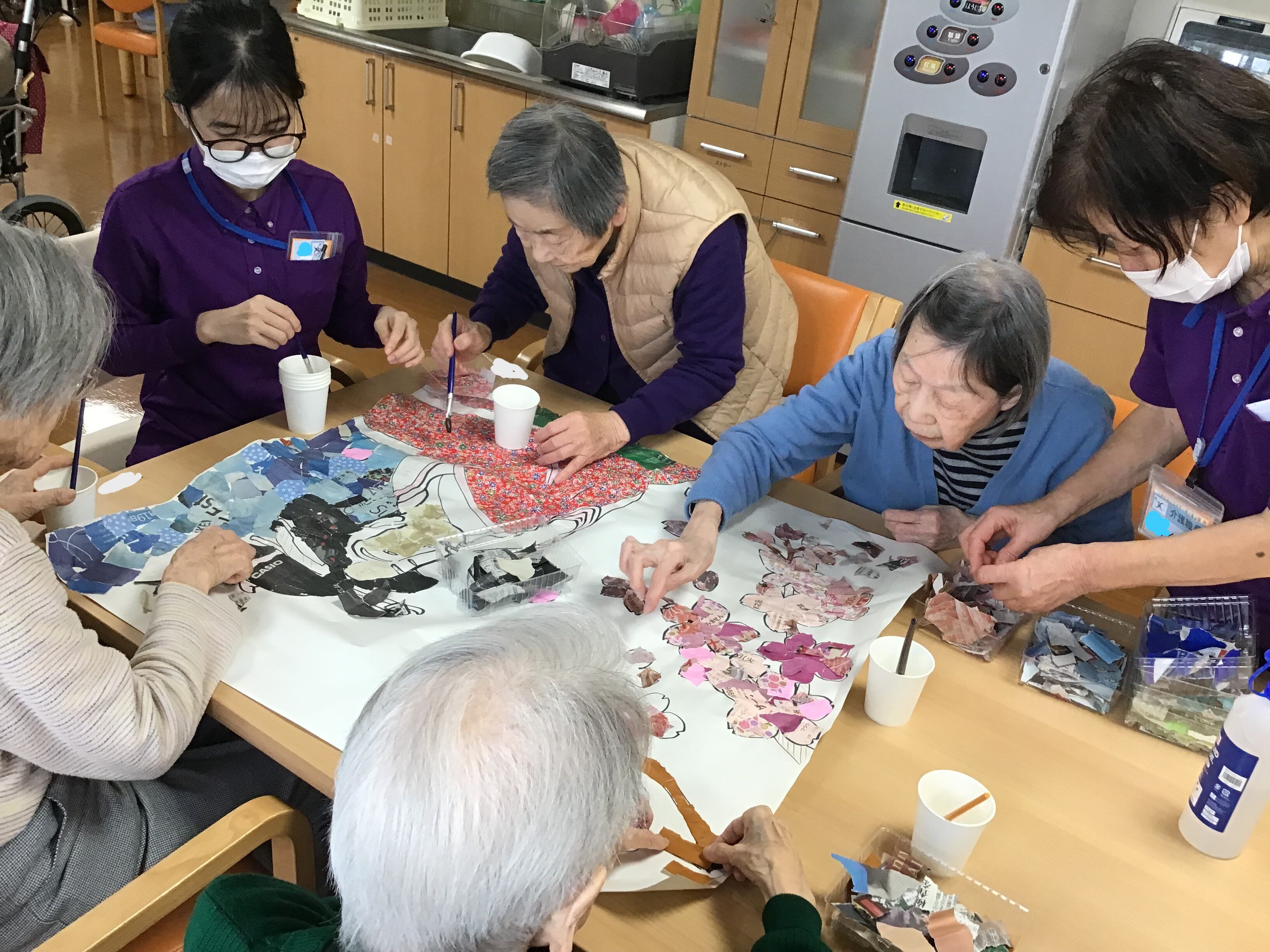 今回は3月12日貼り絵レクリエーション、その様子をお伝えいたします。