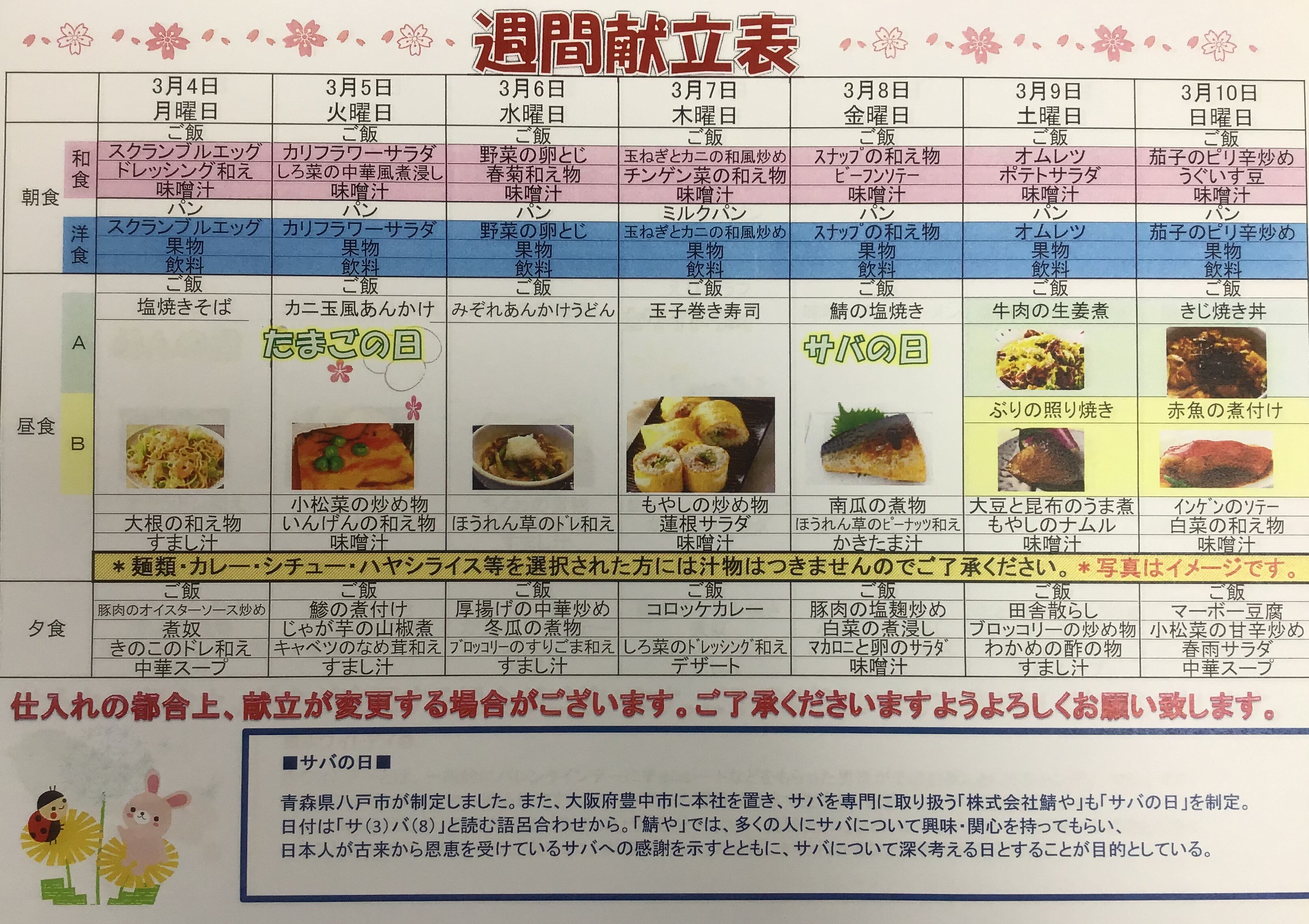 そして、次は3月4日から3月10日までのメニューを紹介させていただきますね♬