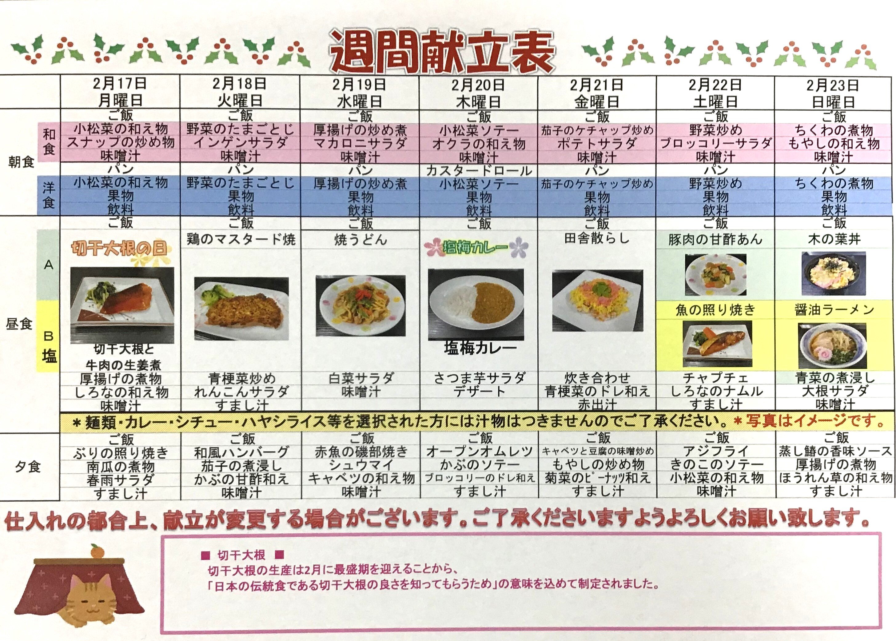 今回は「2月24日から3月2日までのメニュー表の紹介」です。