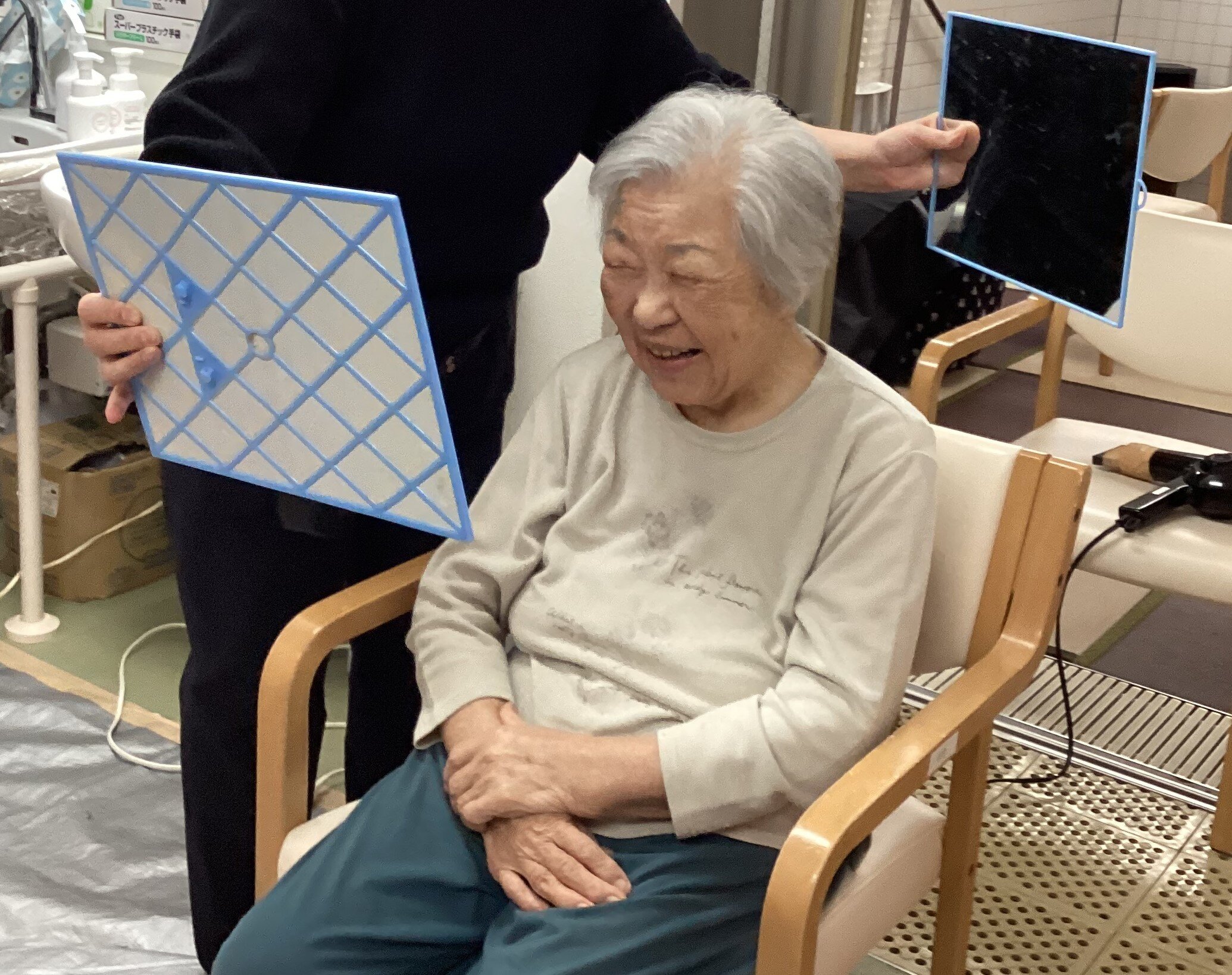 ご入居者の中には、外に出かけて散髪するといった事が難しい方もいらっしゃいます。