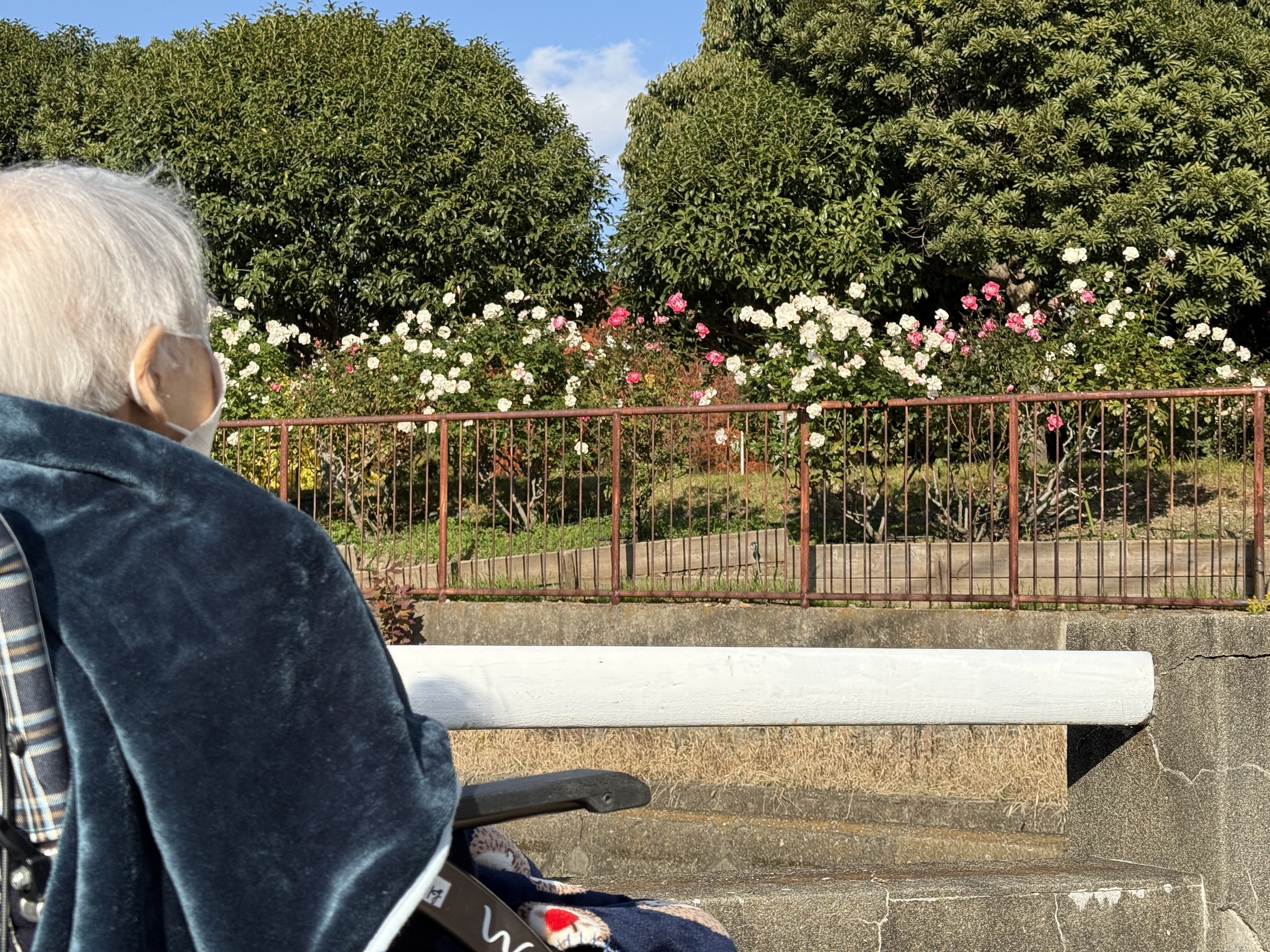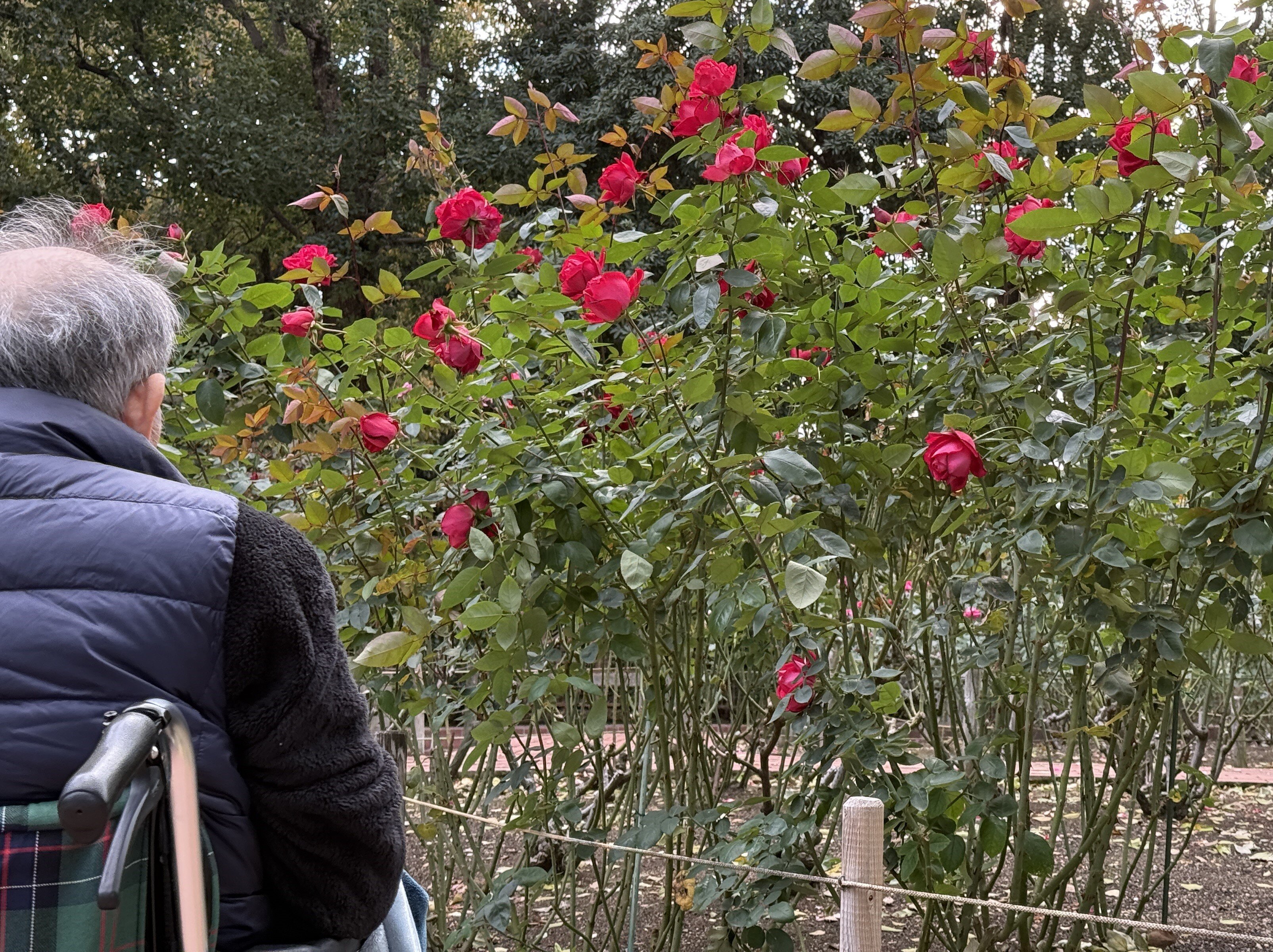 12月中旬に入り木々が色づき落葉の時期ですが、綺麗にバラが咲いています。