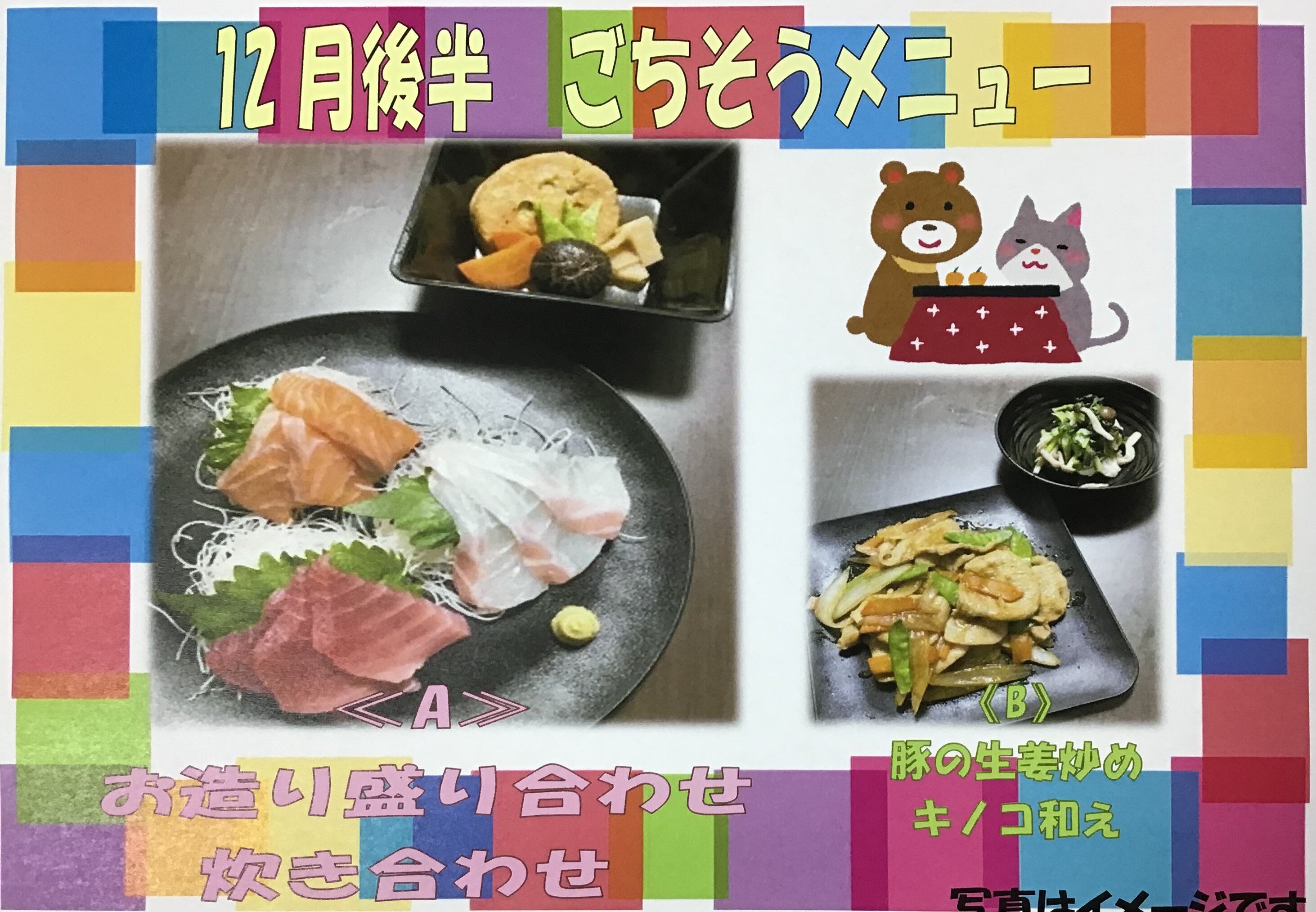 今回は12月27日(金)提供予定の「ごちそうメニュー」のお知らせです。