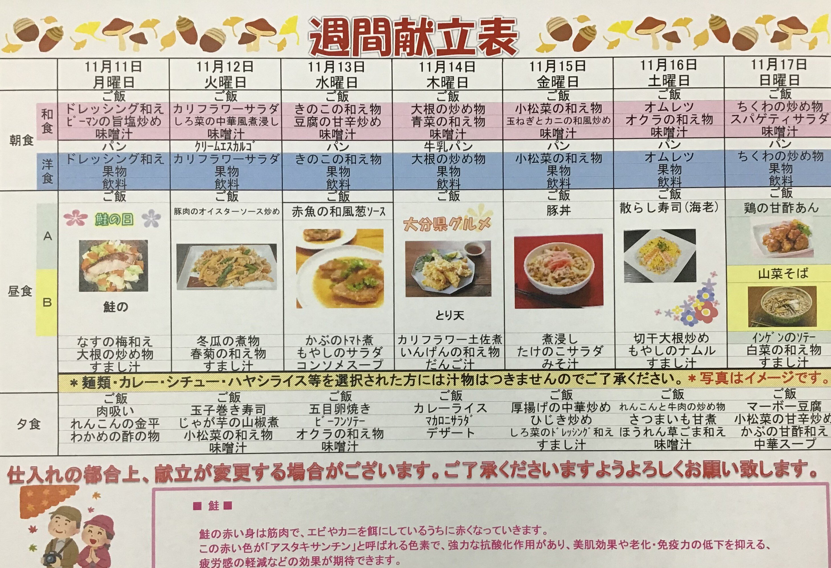 今回は「11月11日から11月17日までのメニュー表の紹介」です。